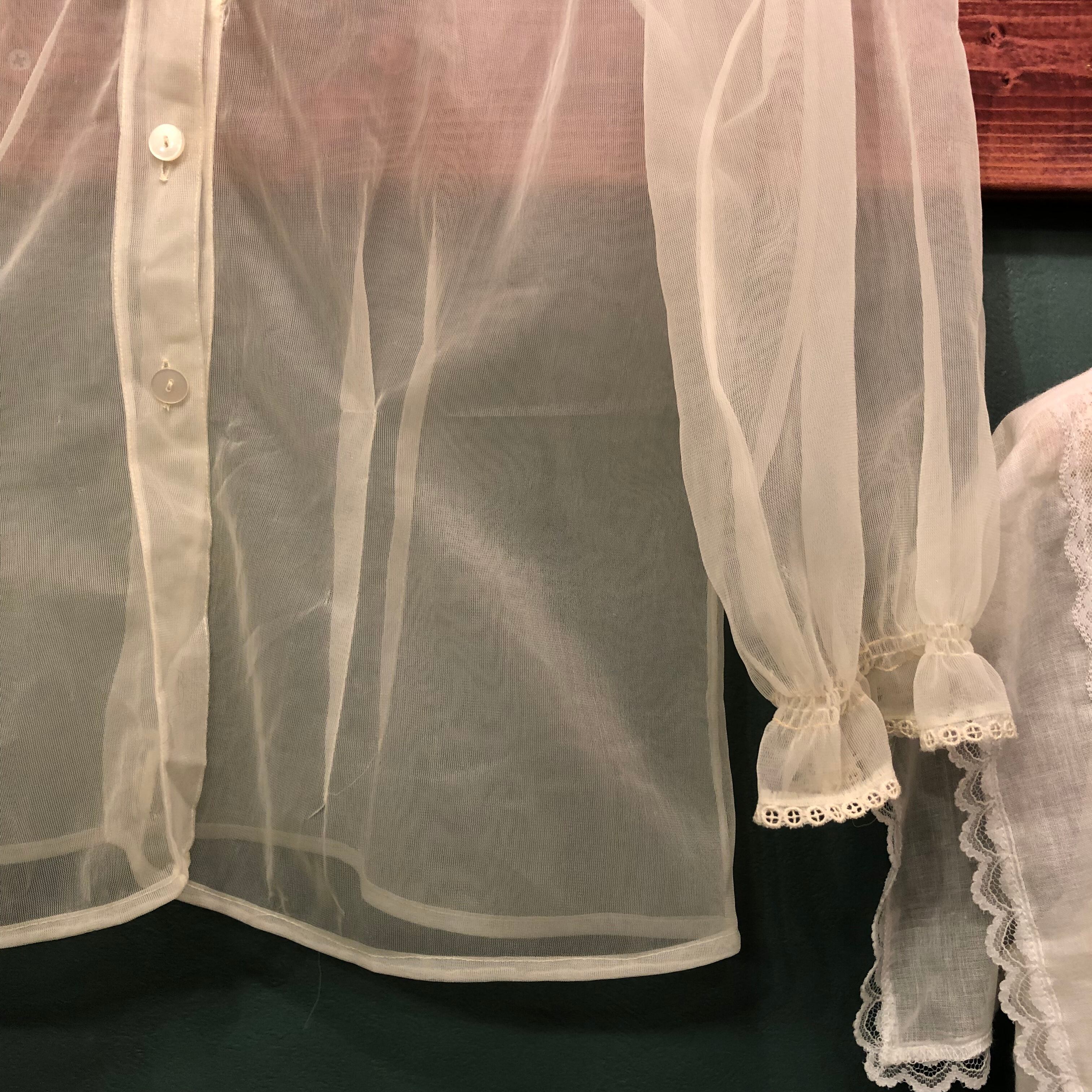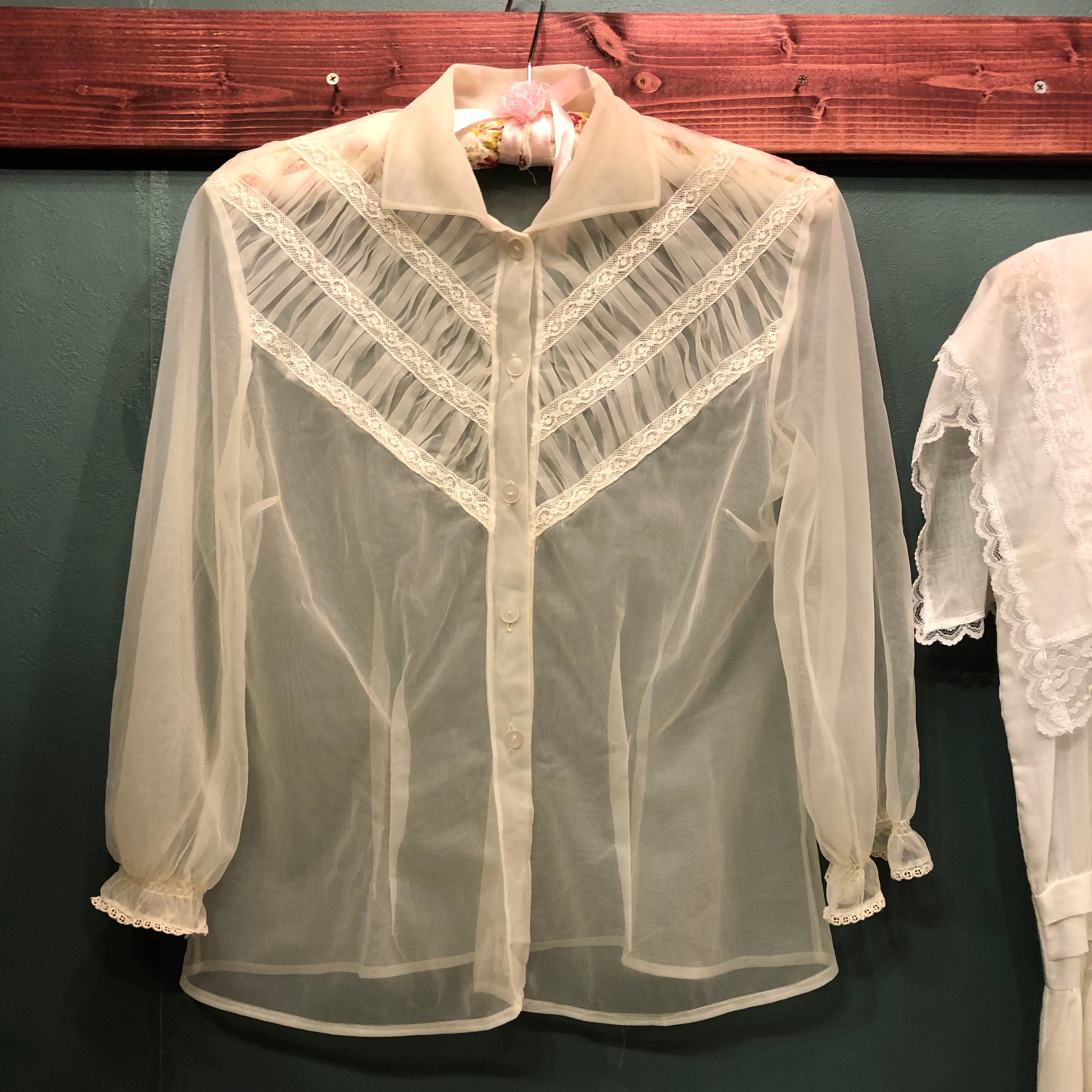 かなり古いお洋服の為、後ろ身頃下部分にオレンジ色の日焼けのようなものがあります。(7枚目)