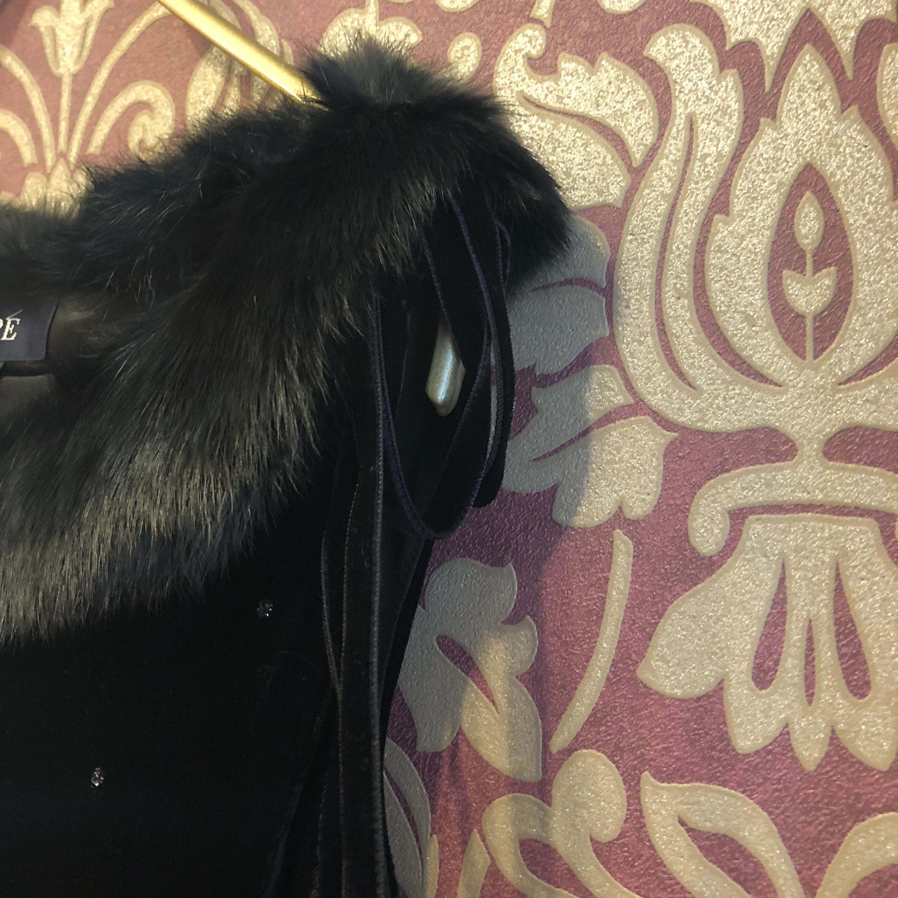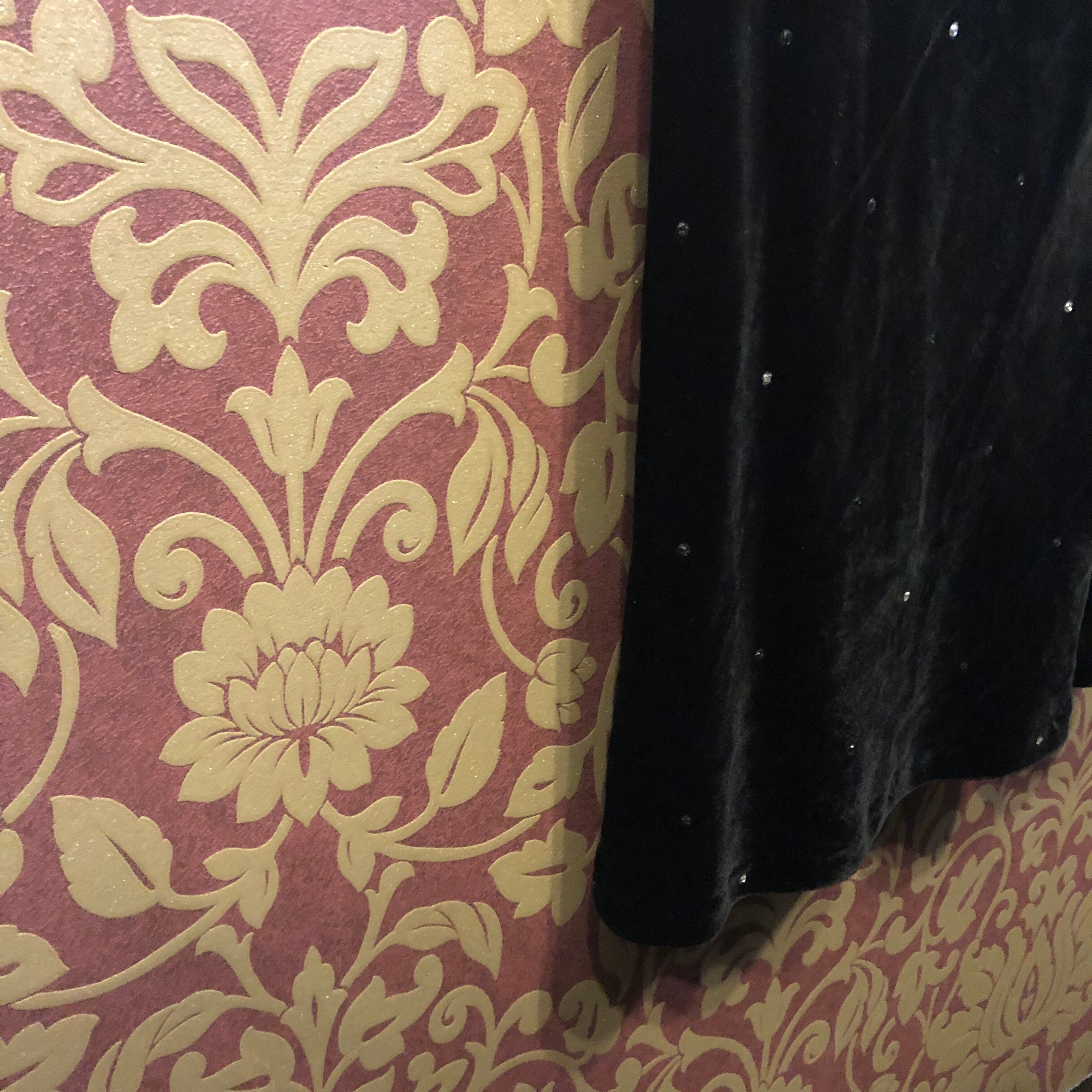 黒地のベロアに大粒のラメで装飾されたワンピースです。