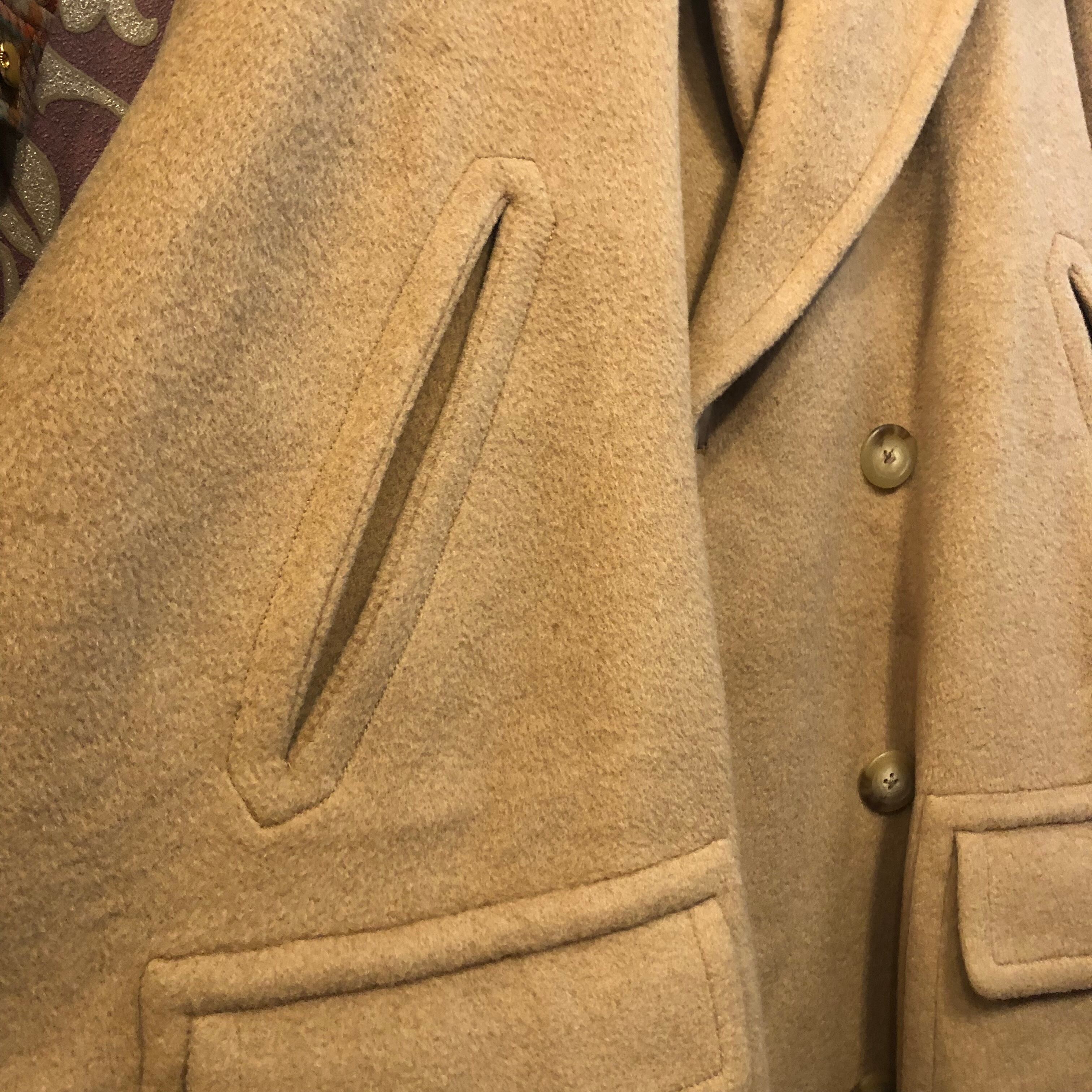 優しいベージュ色でダブルボタンで手は出るようになっています。