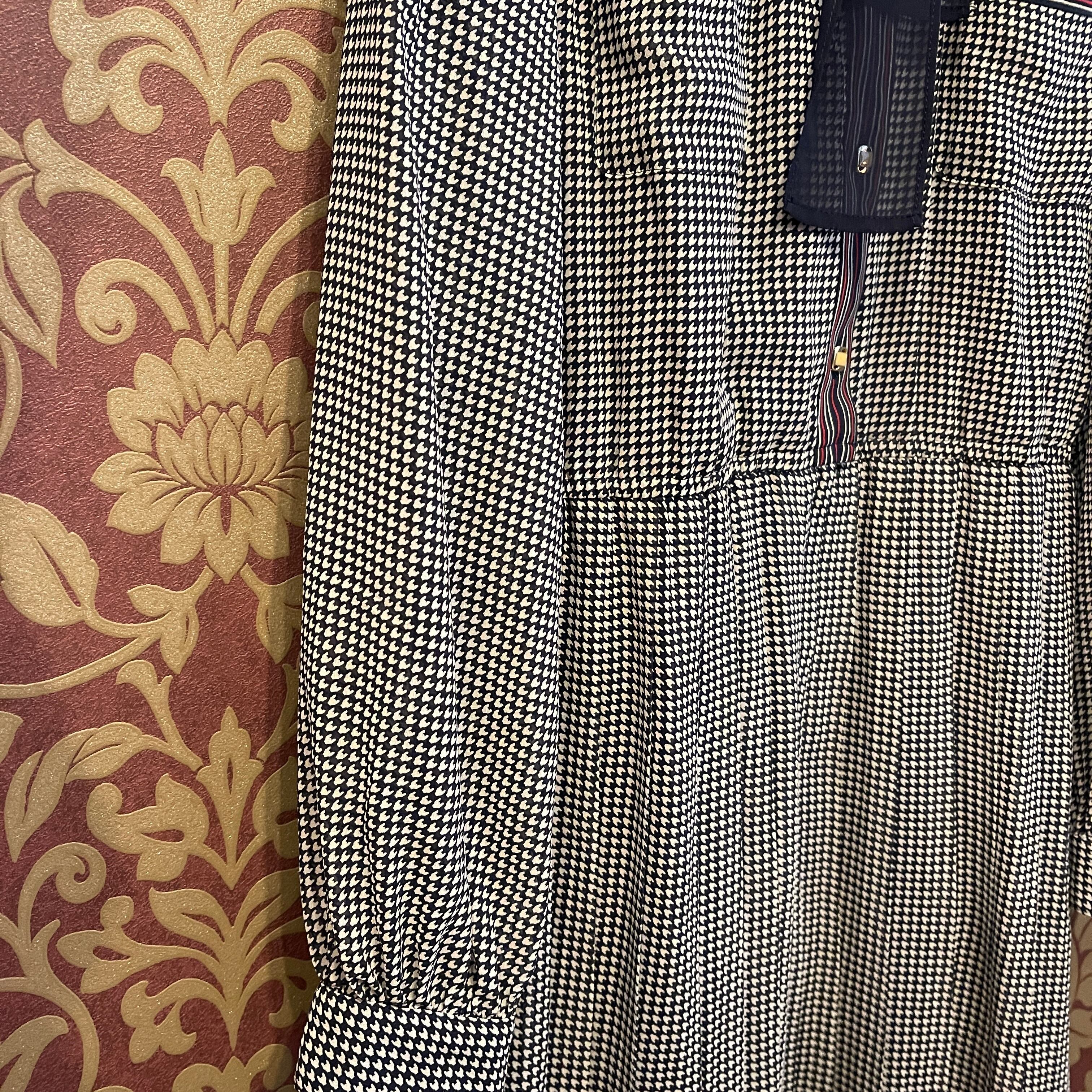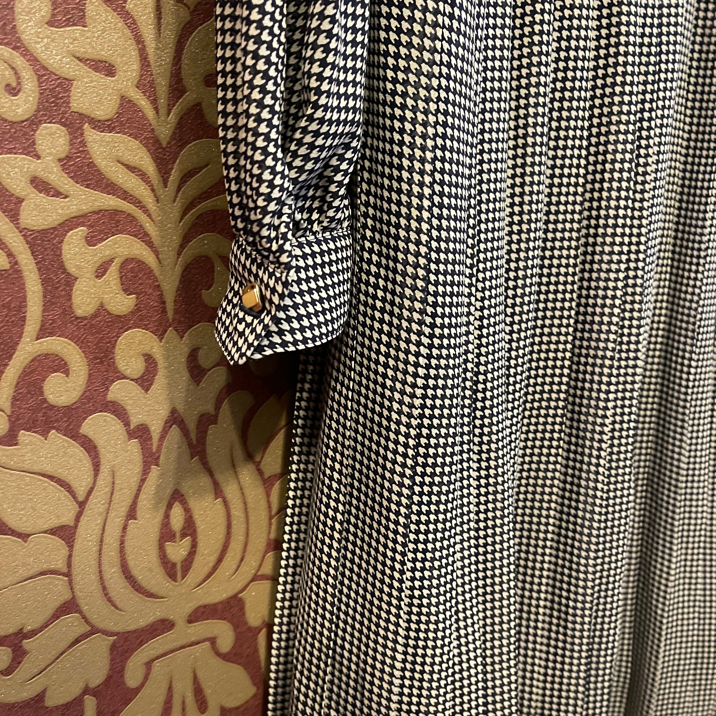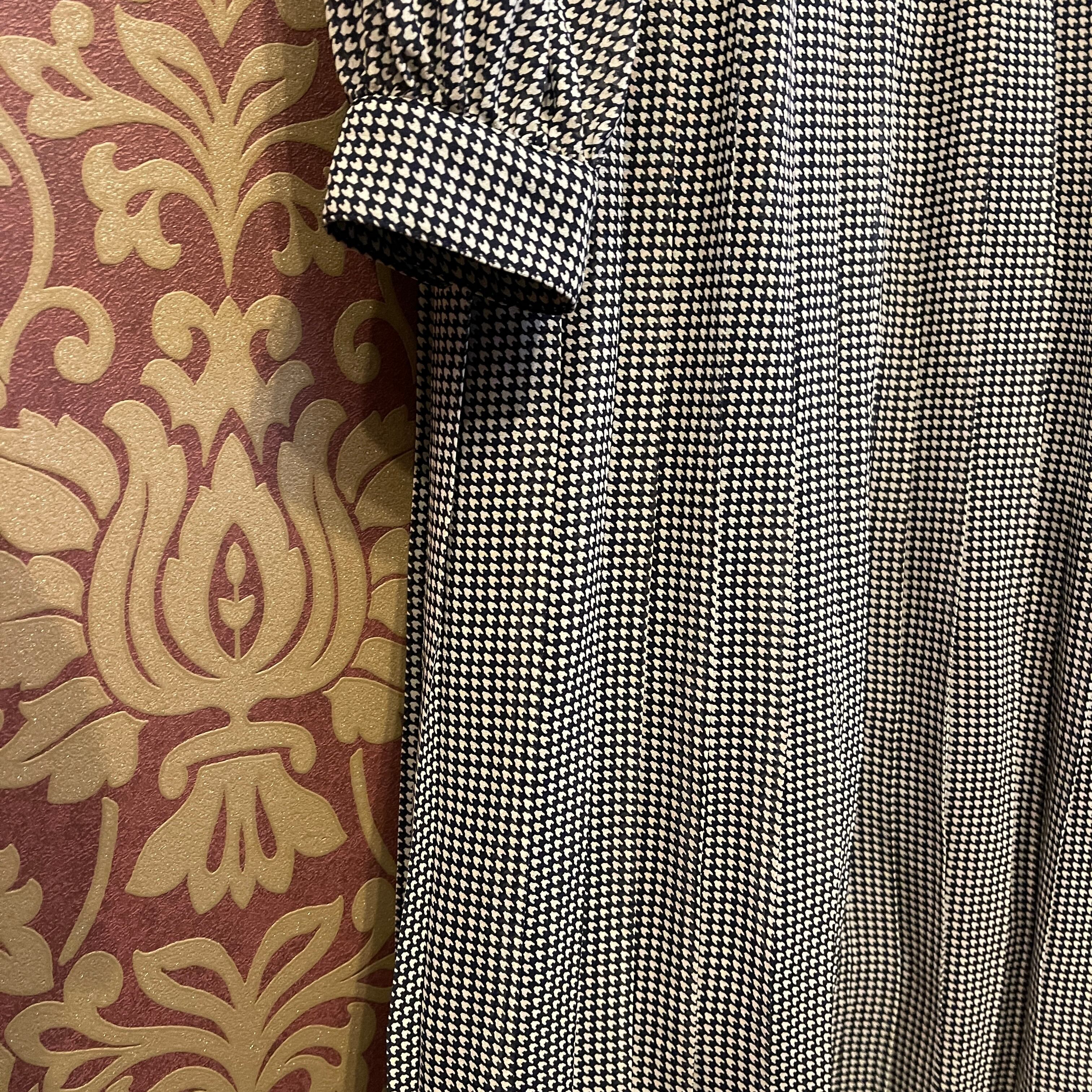 小さな柄で線も弱いので落ち着いた雰囲気で着られる1着です。