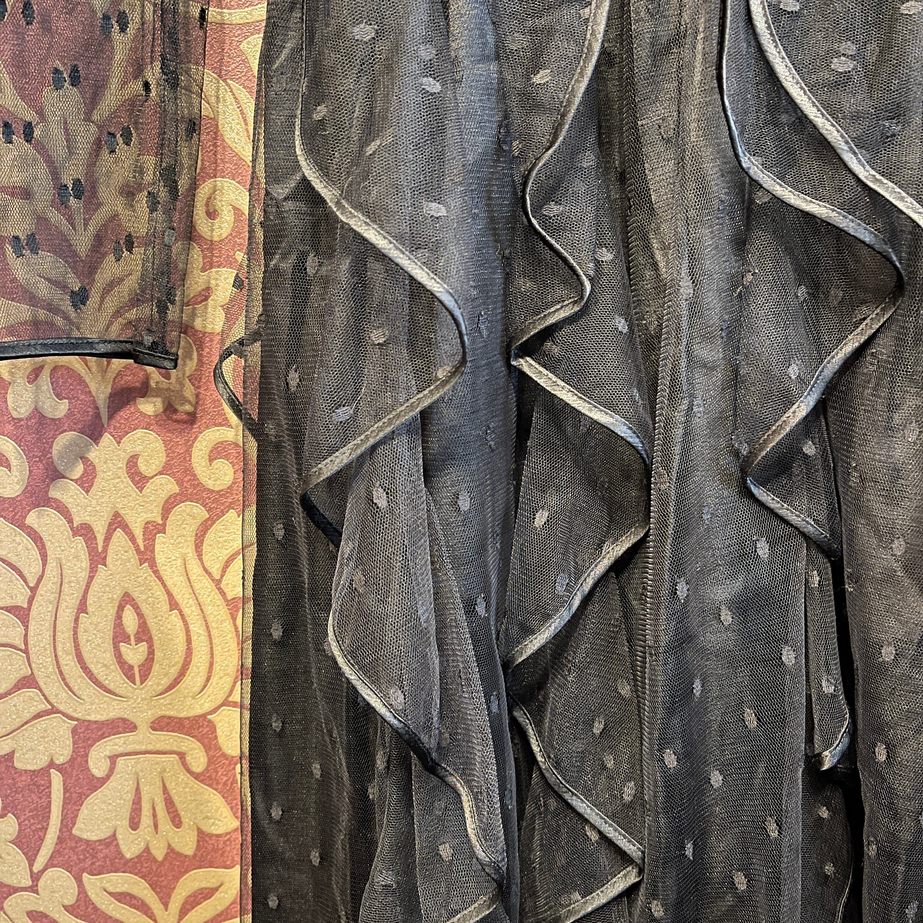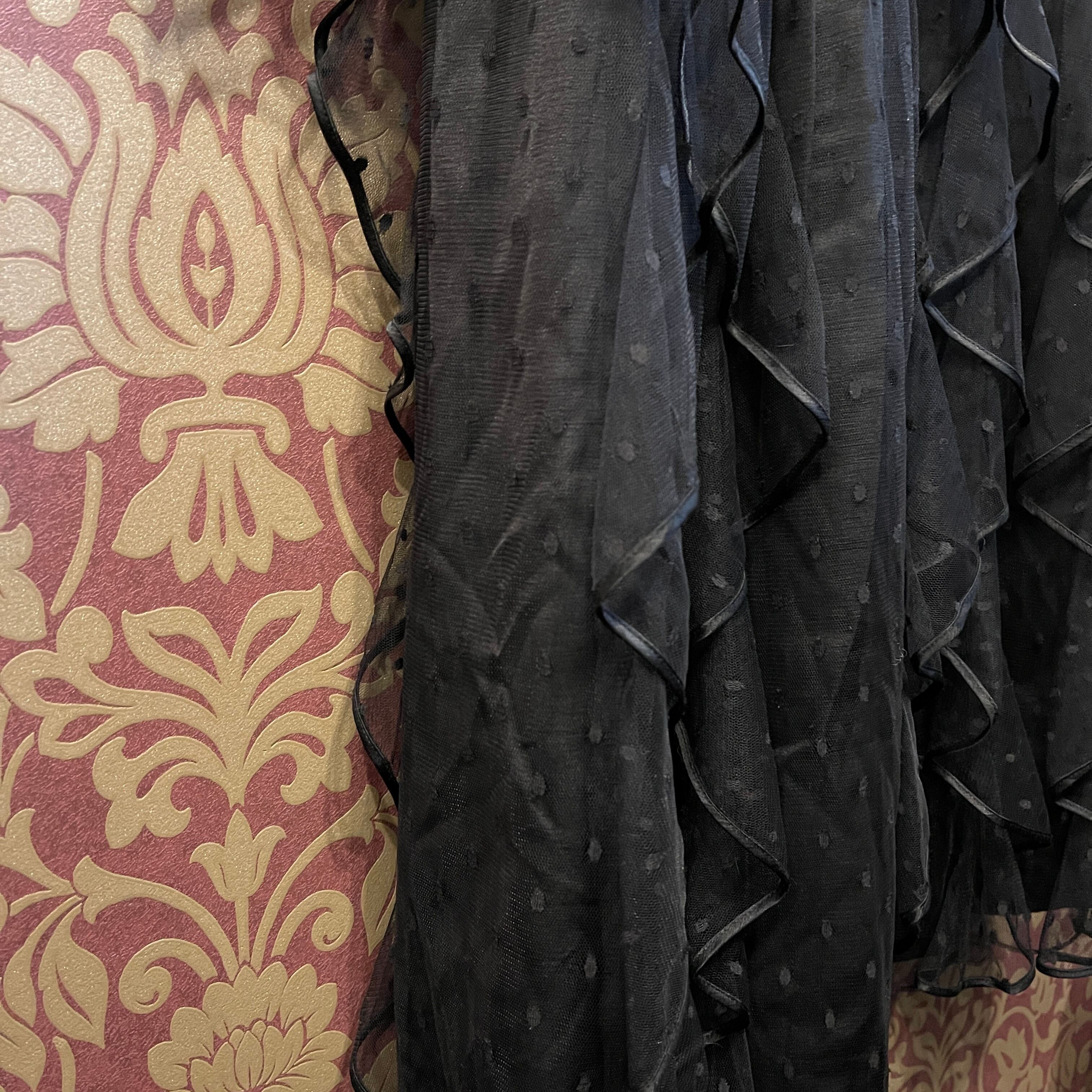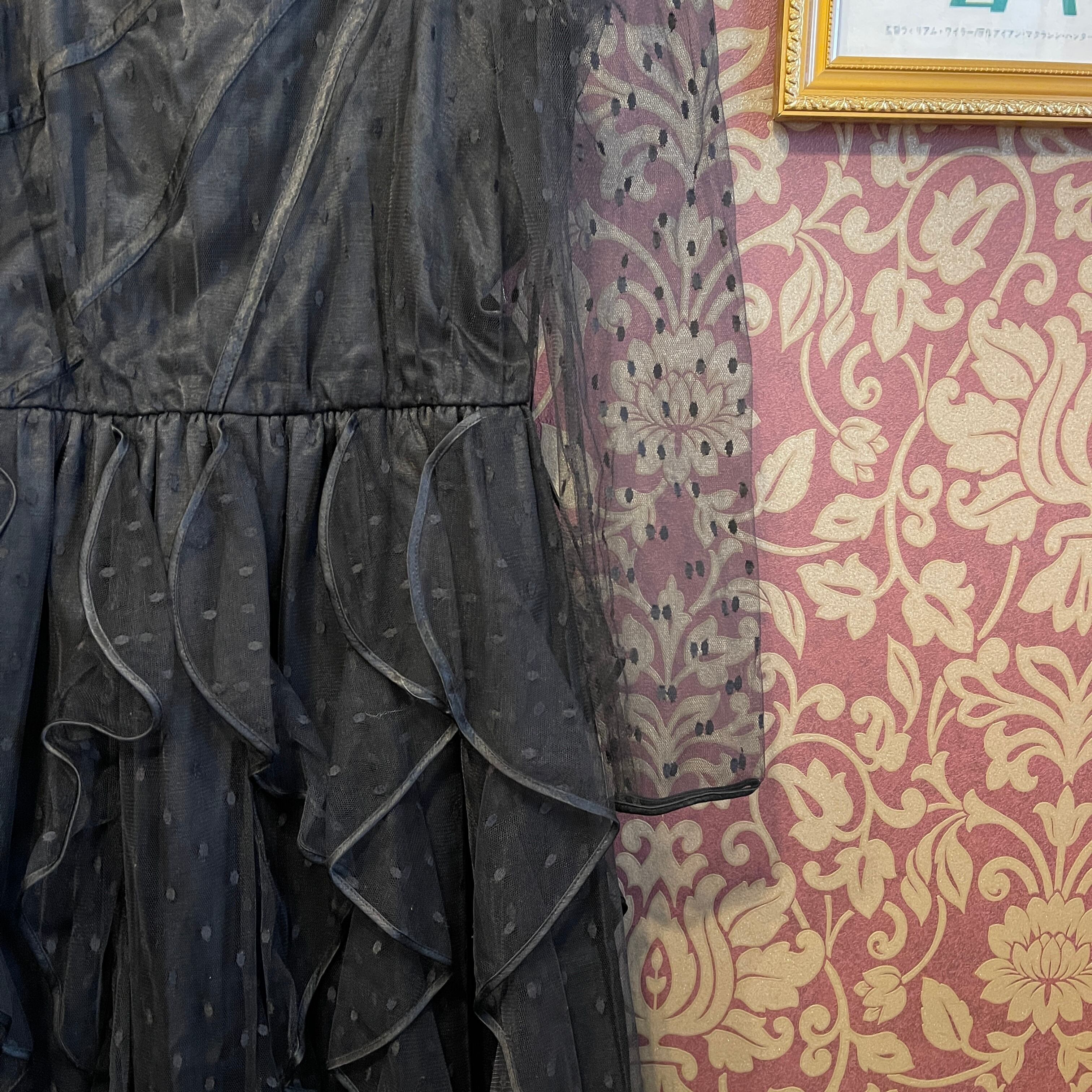 黒いドット柄のチュールで作られたビンテージドレスです。