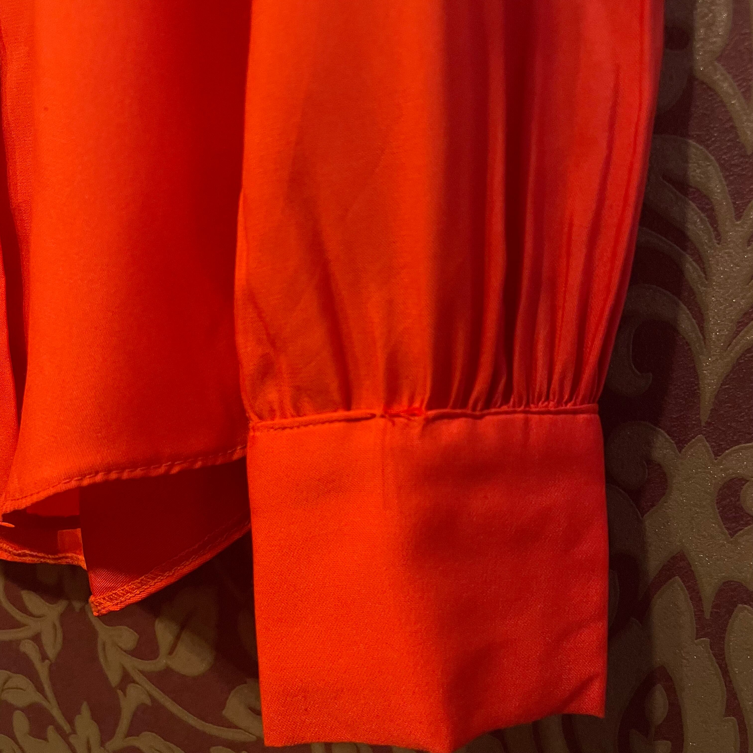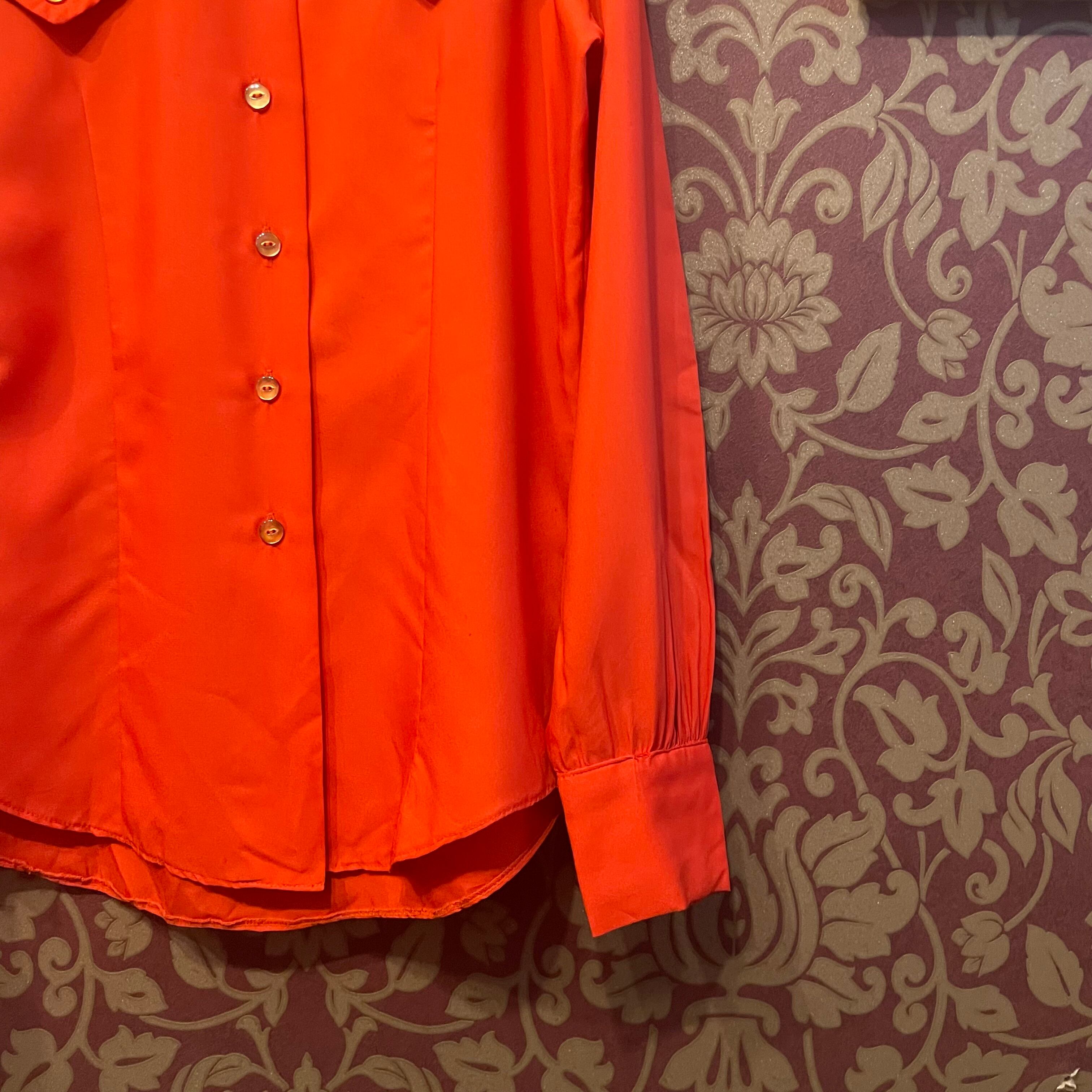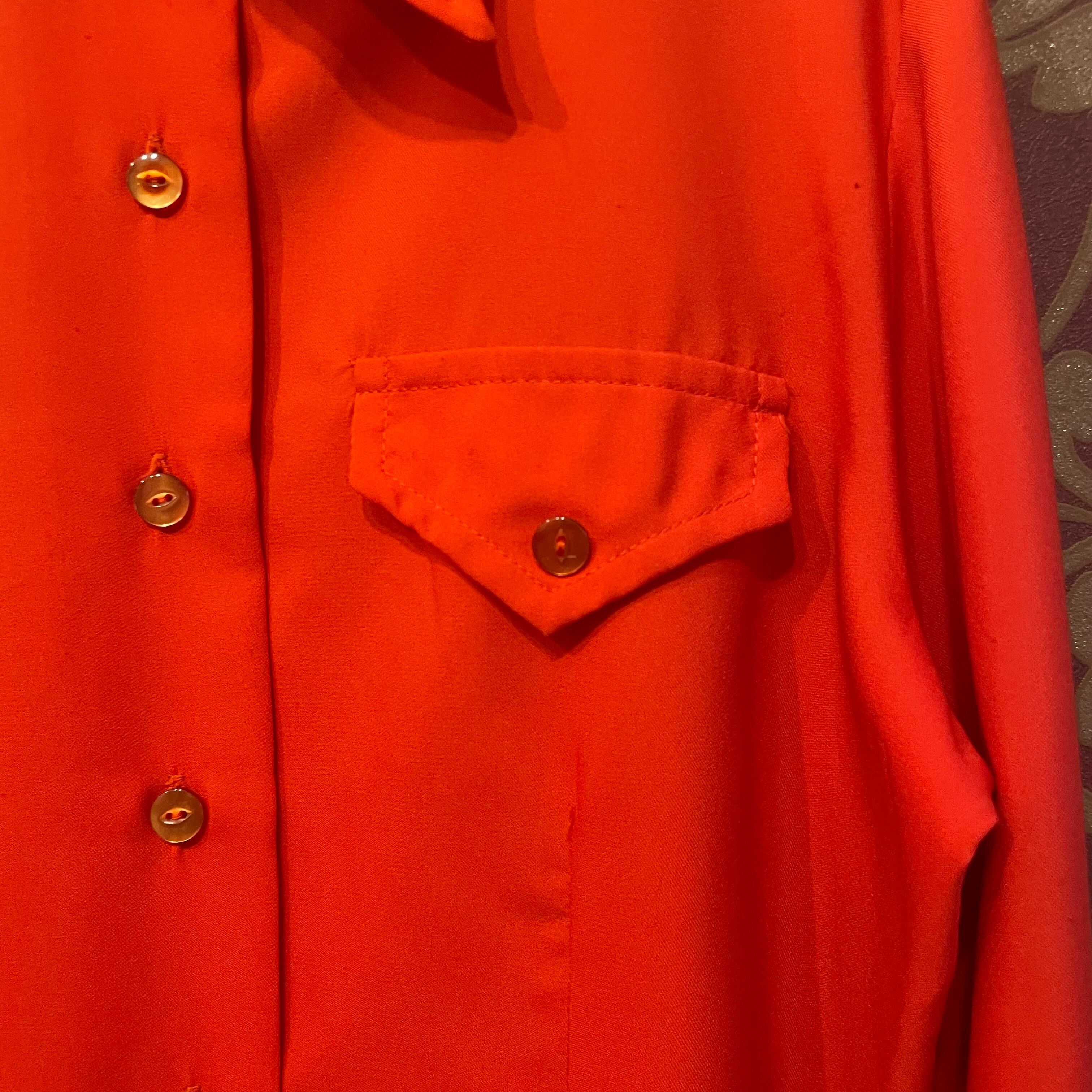 ビビッドなオレンジ色が目を惹く70年代のシャツです。
