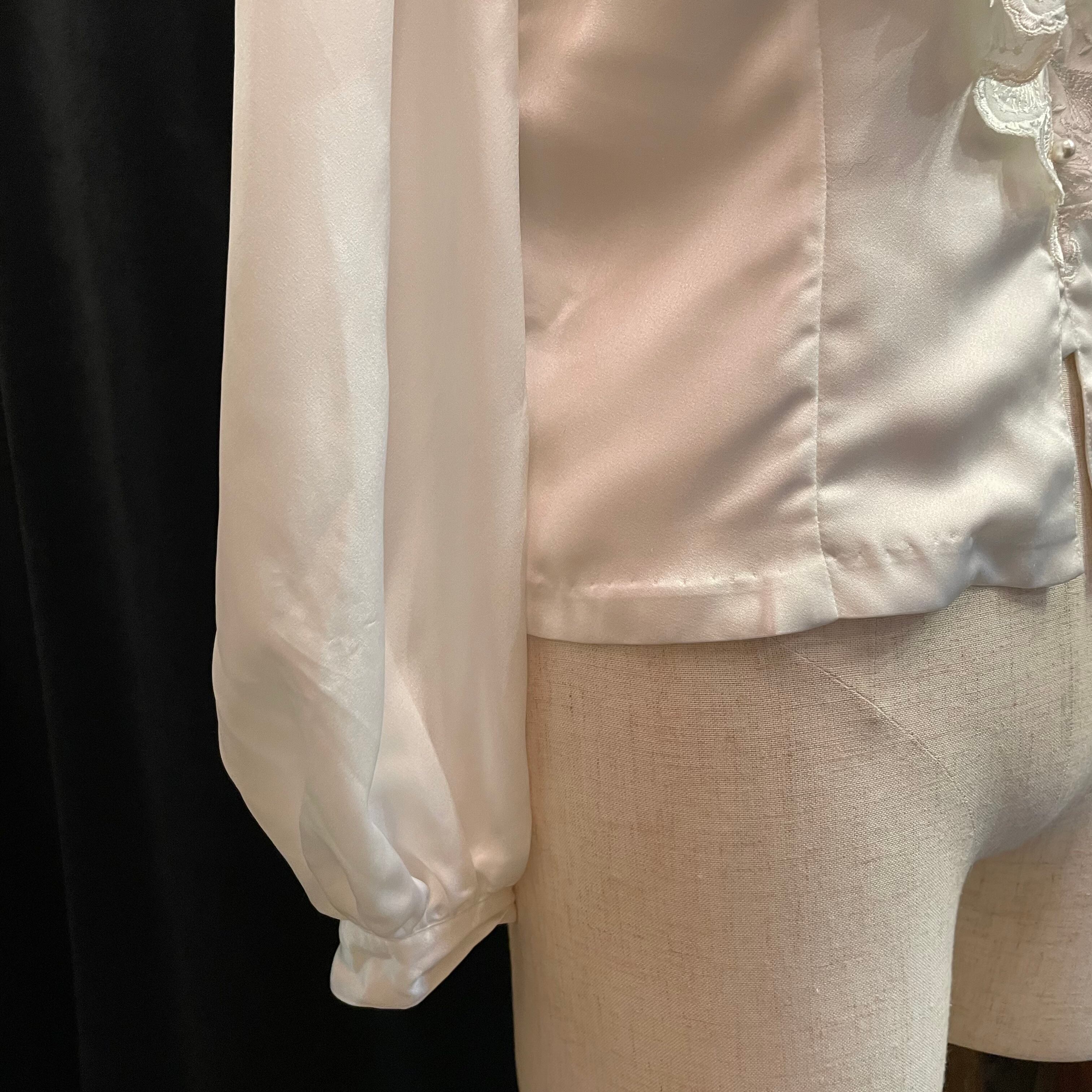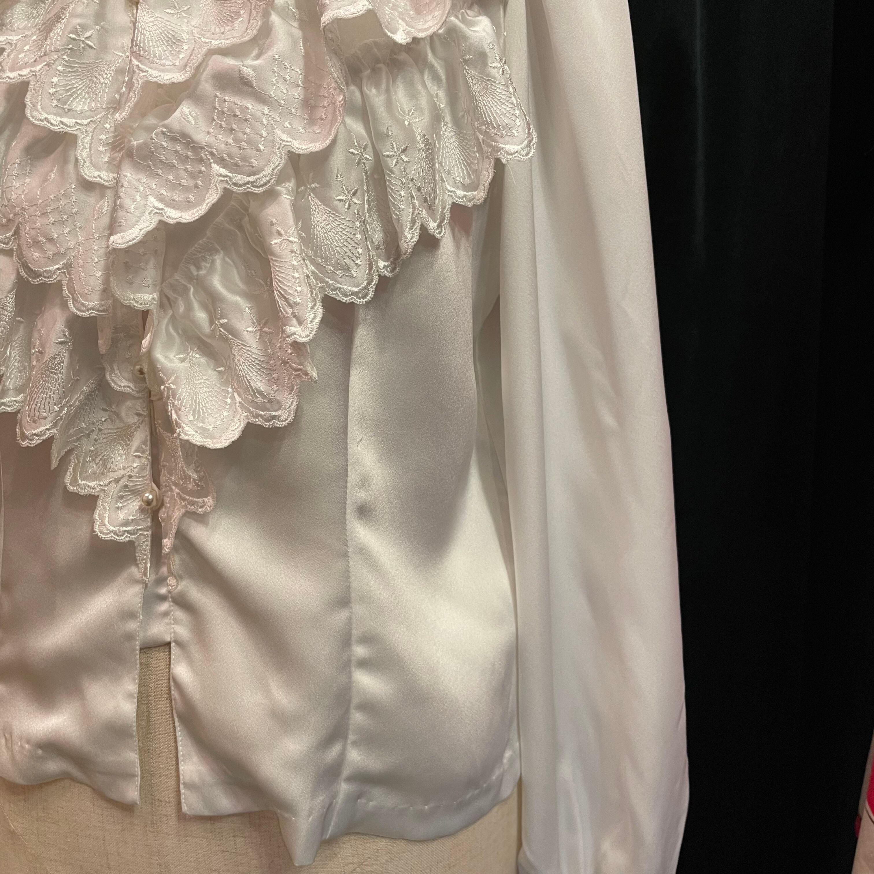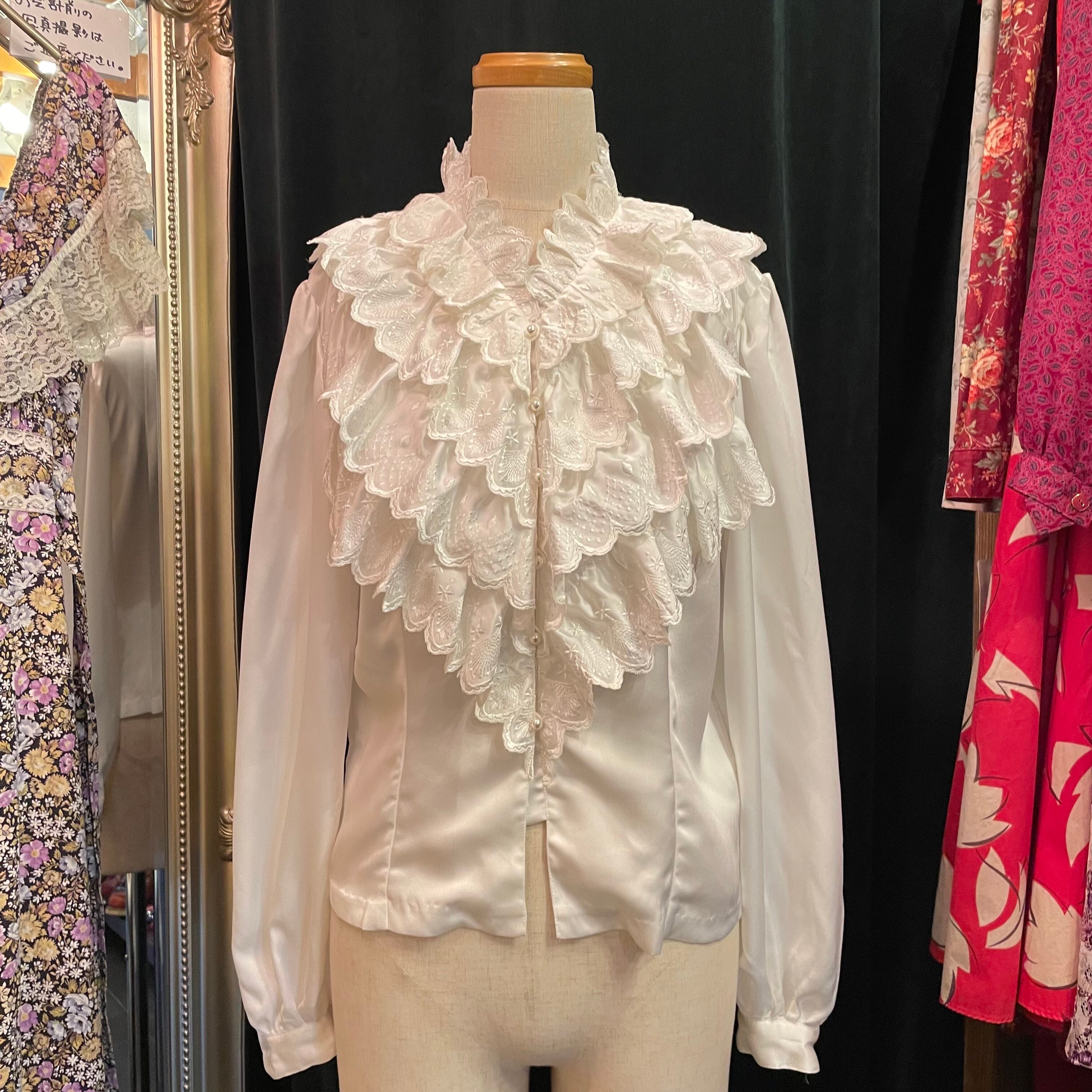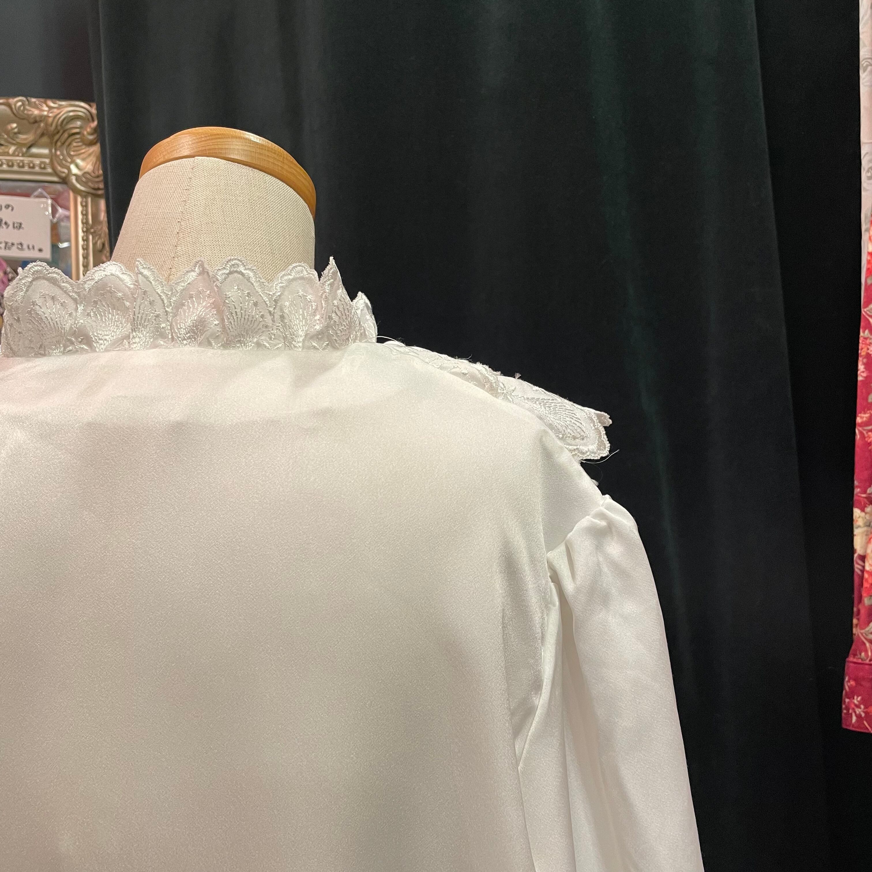 襟から胸元にかけてのフリルに刺繍が施されたとても豪華な一着です。
