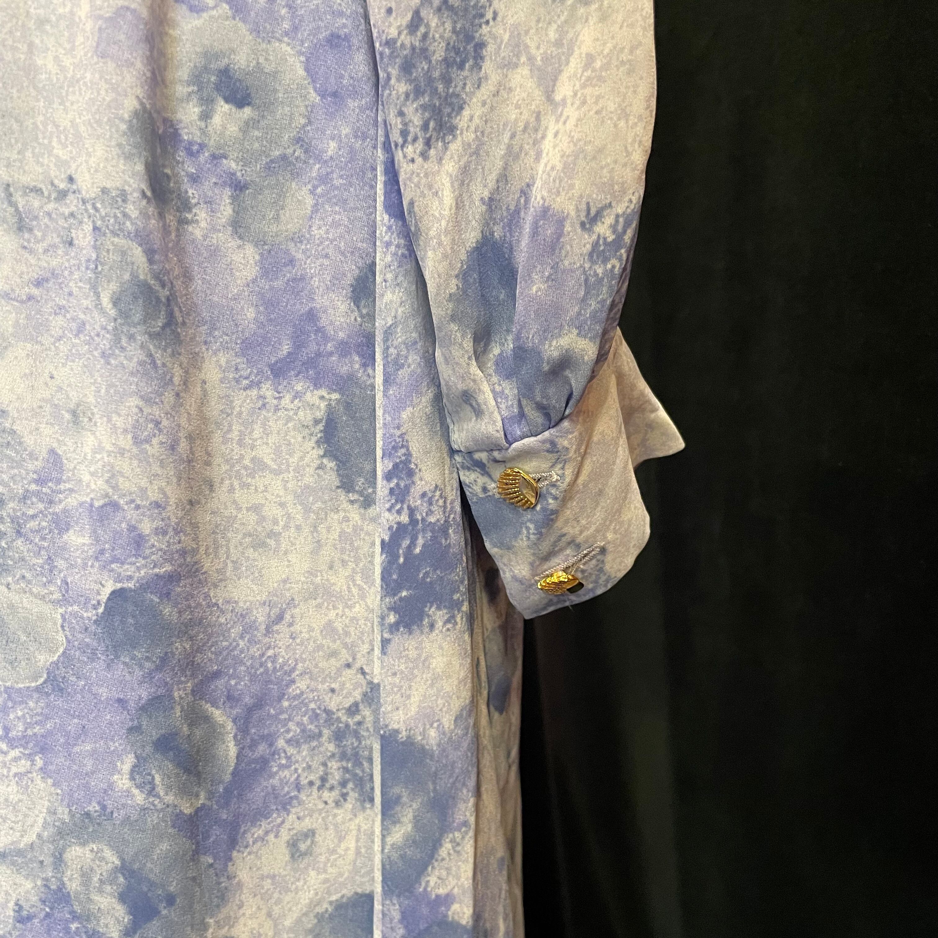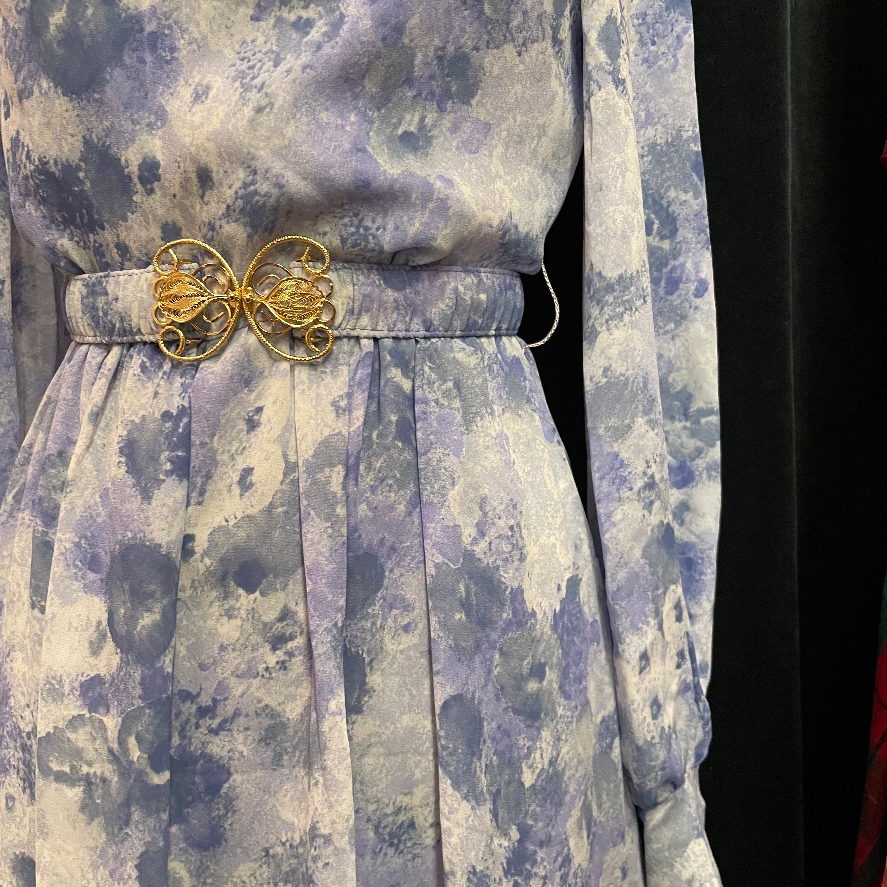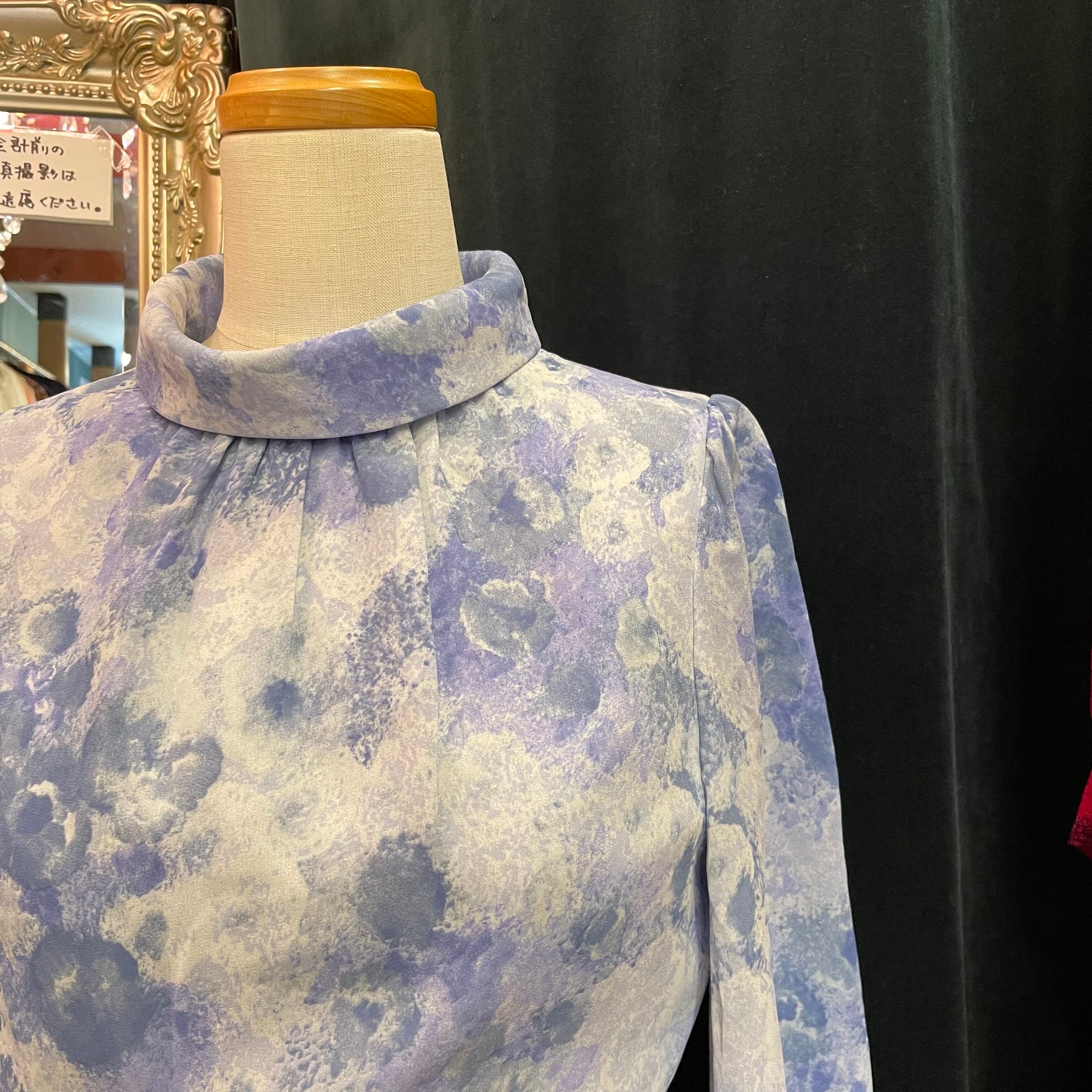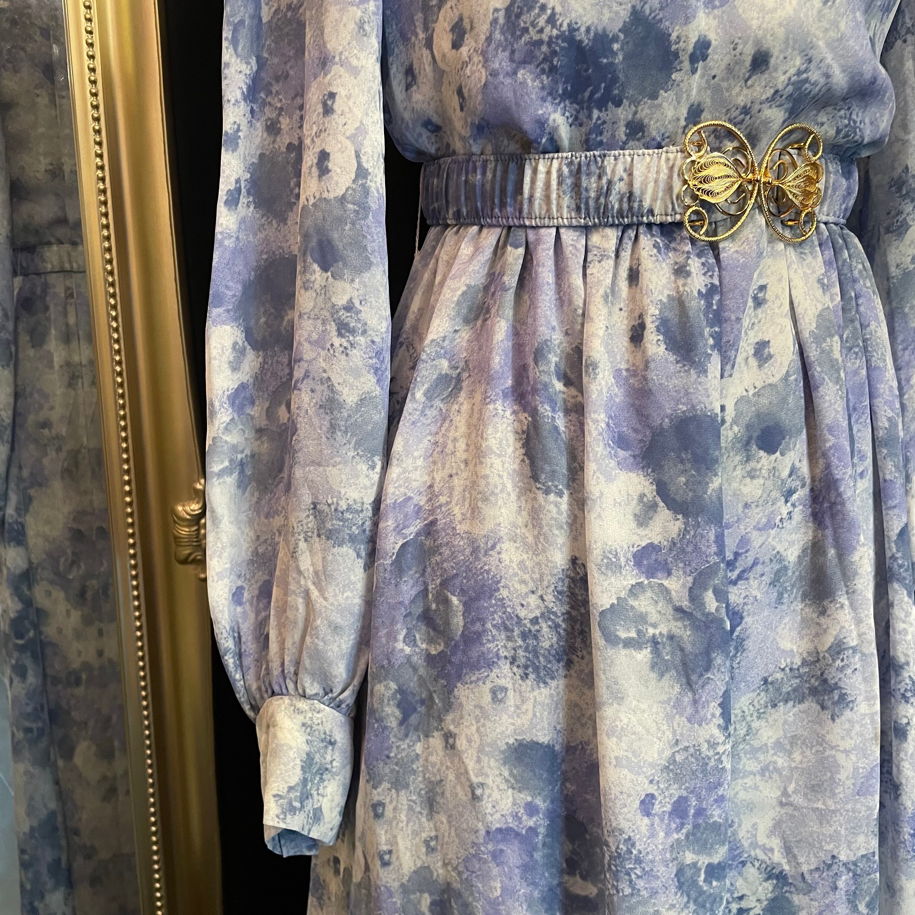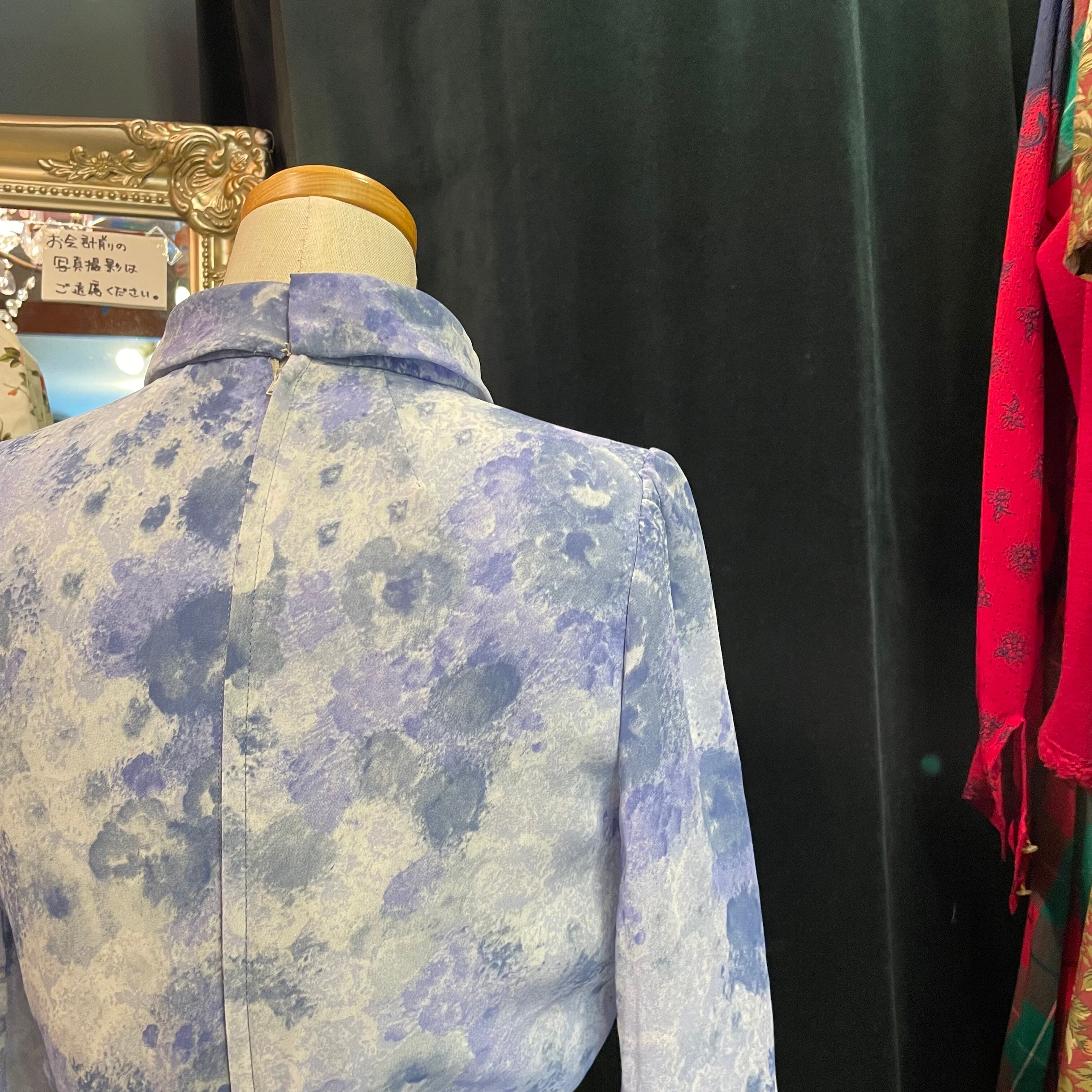 ブルーをベースにした絵画のような美しい柄がプリントされたワンピースです。
