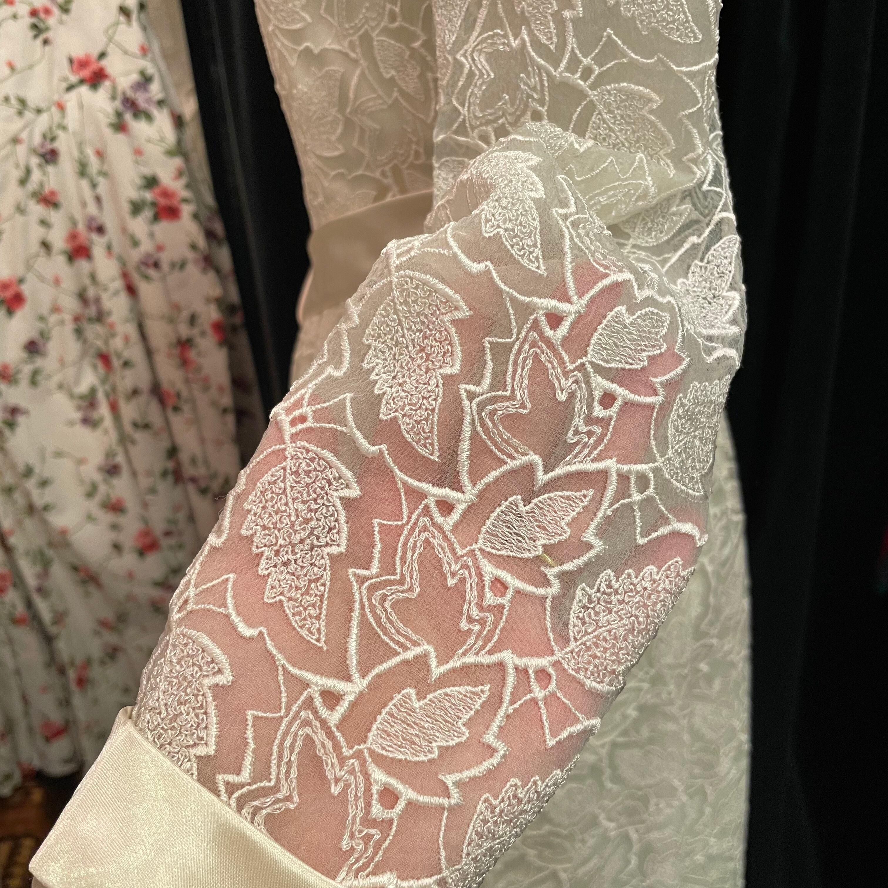 表地はしっかりとした厚手のレースが使われていて、裏地には艷やかでしっとりとしたサテンが使われています。