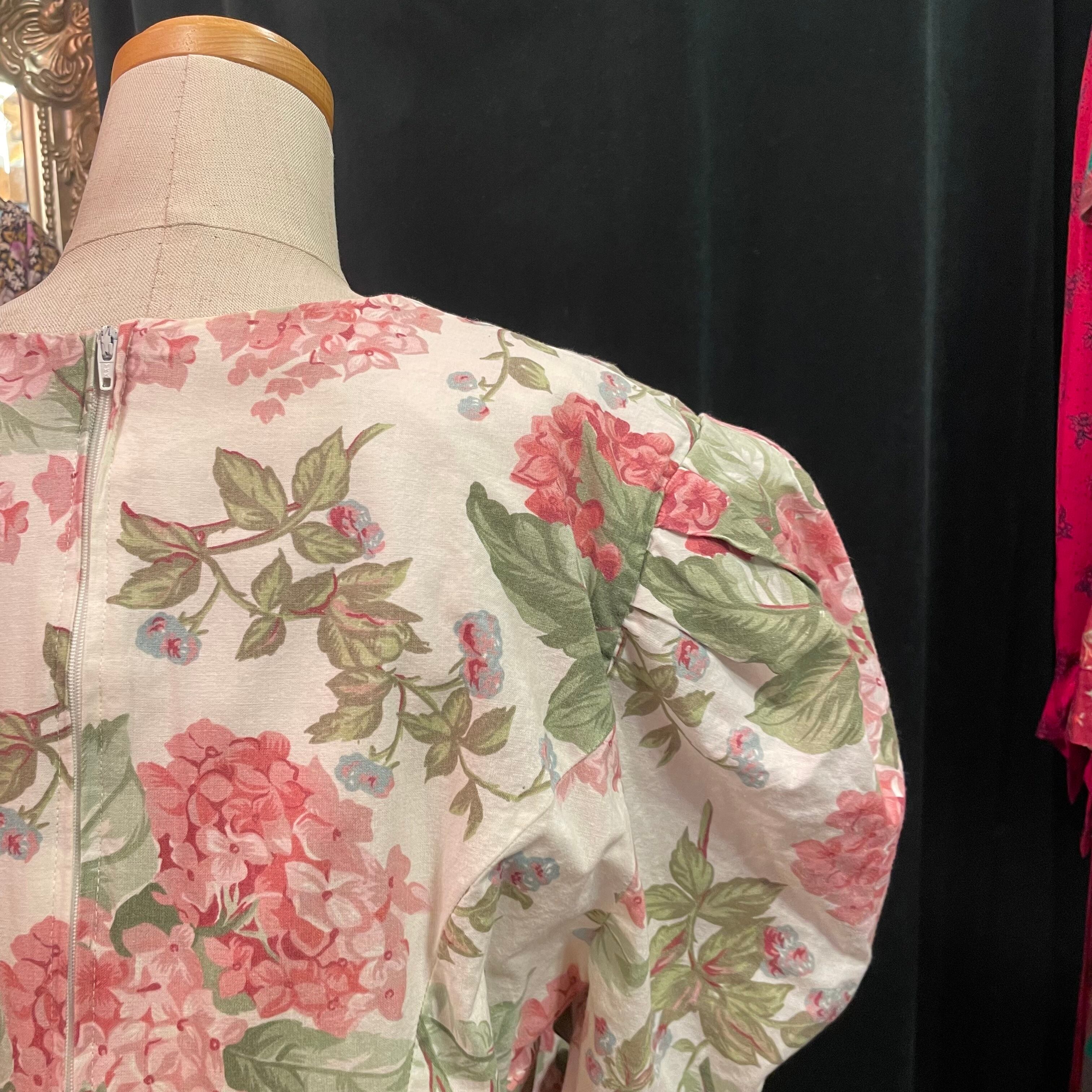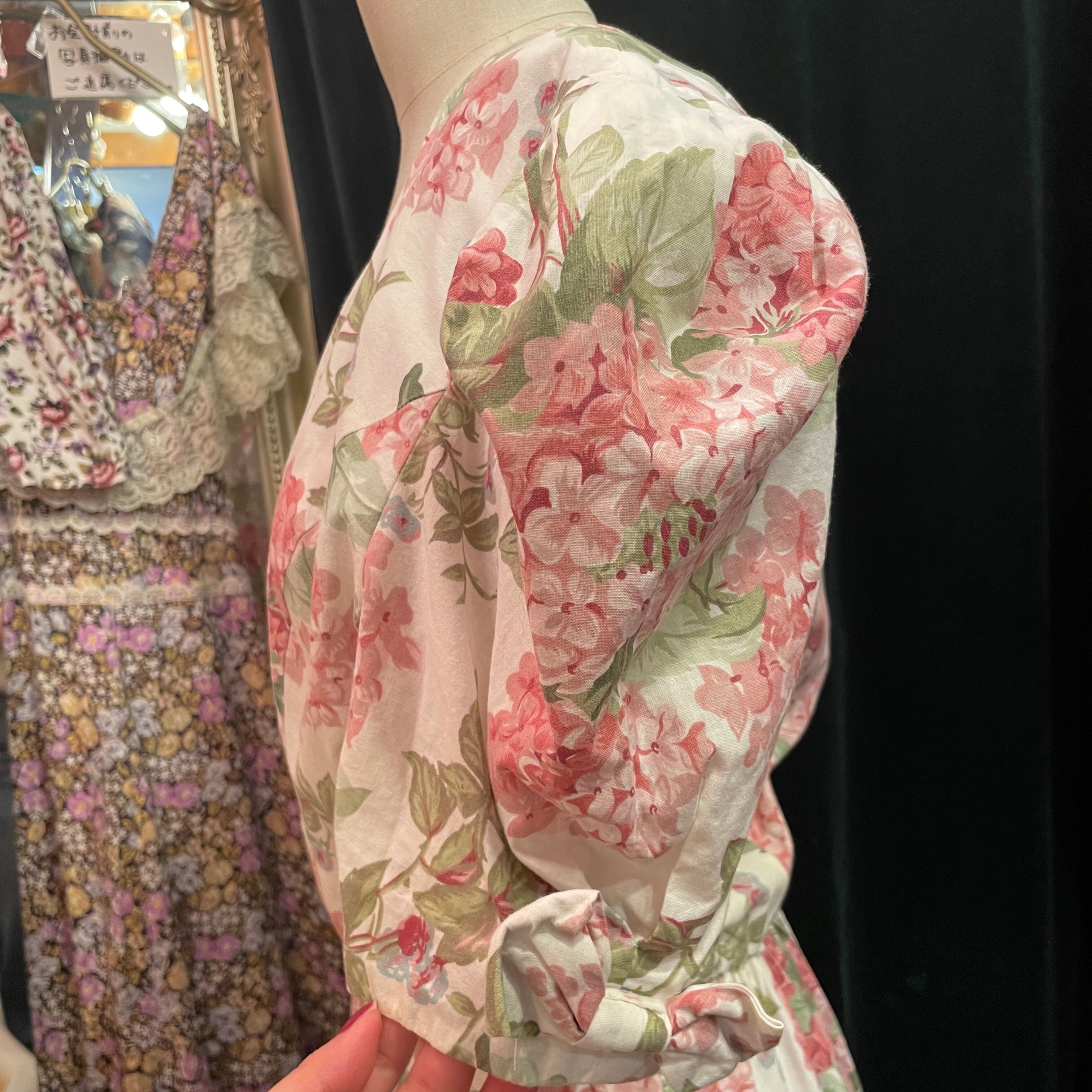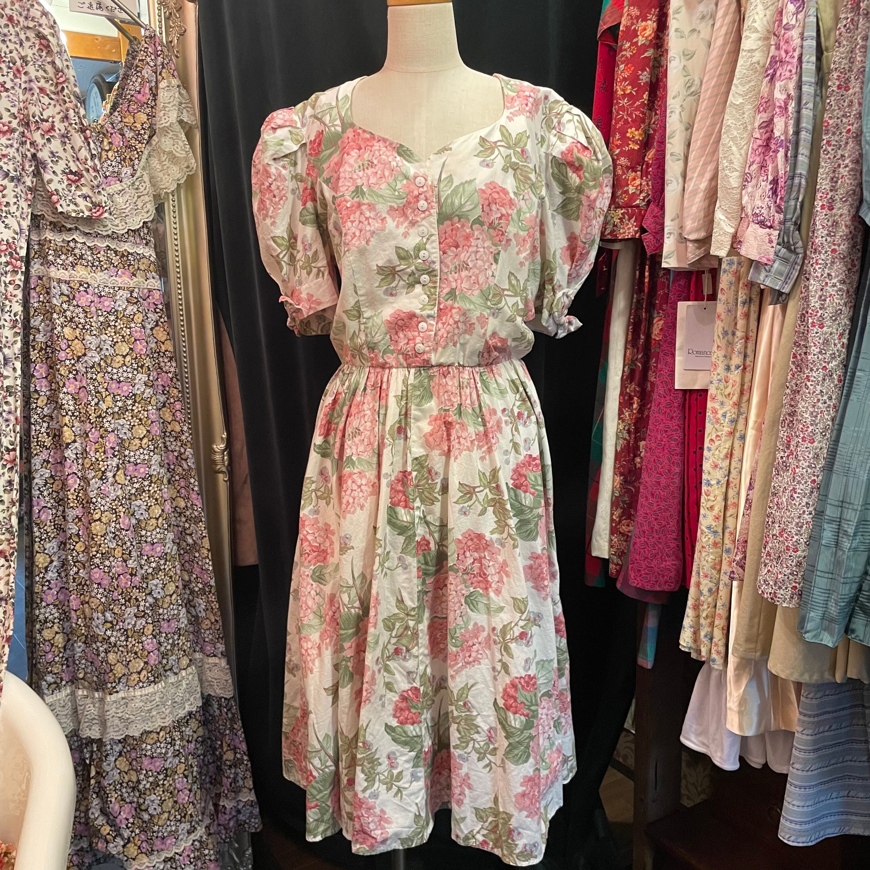 白地に淡いピンク色の紫陽花柄ワンピースです。