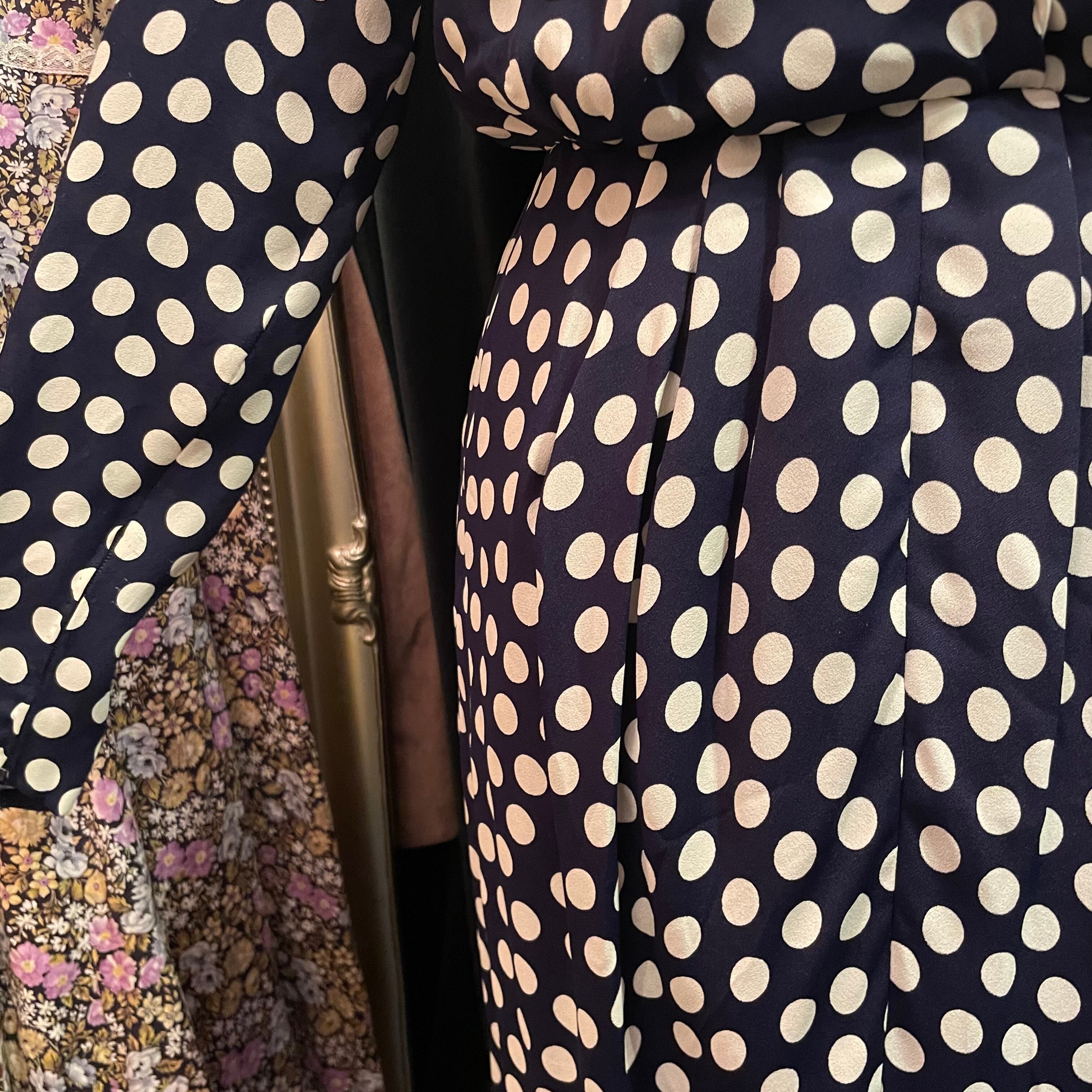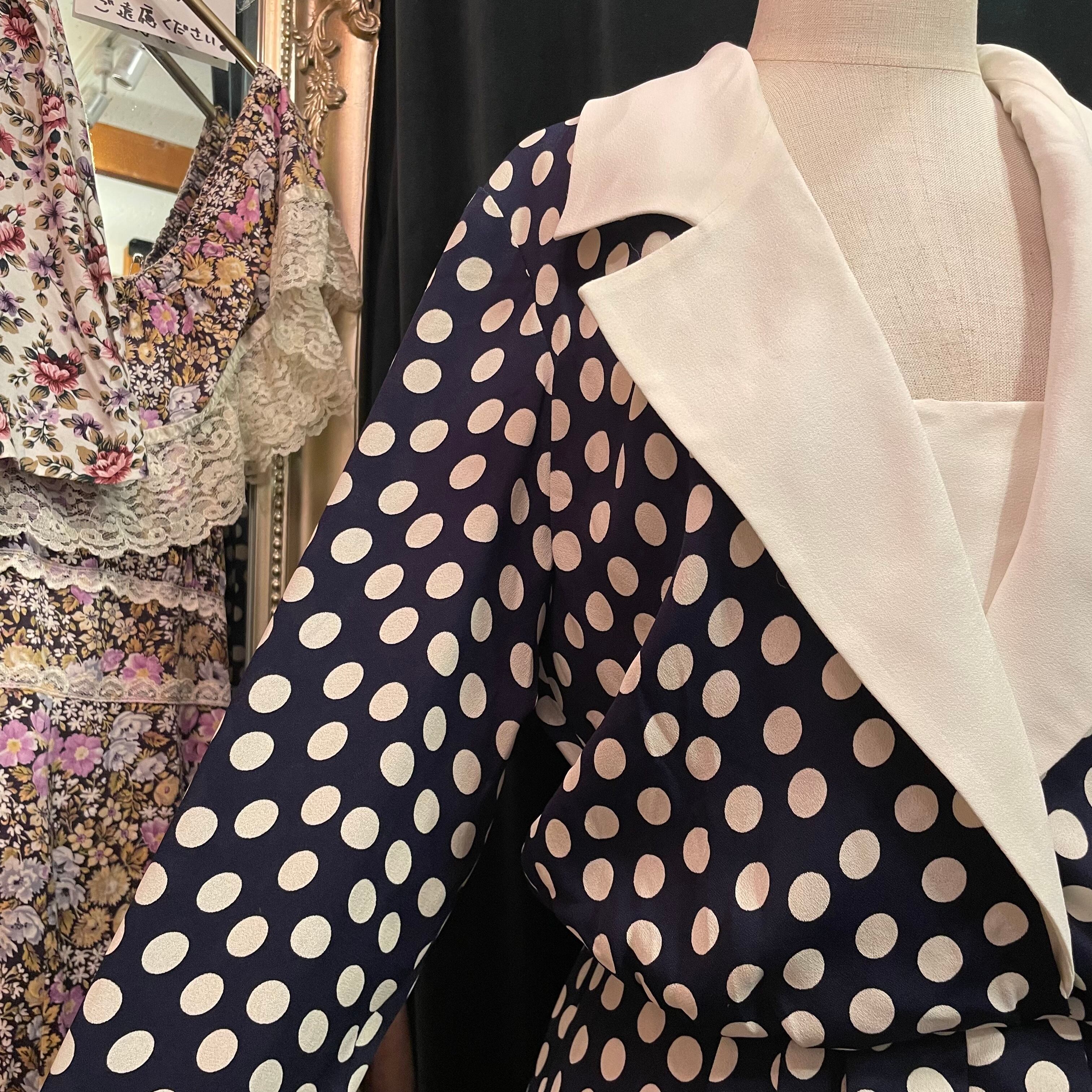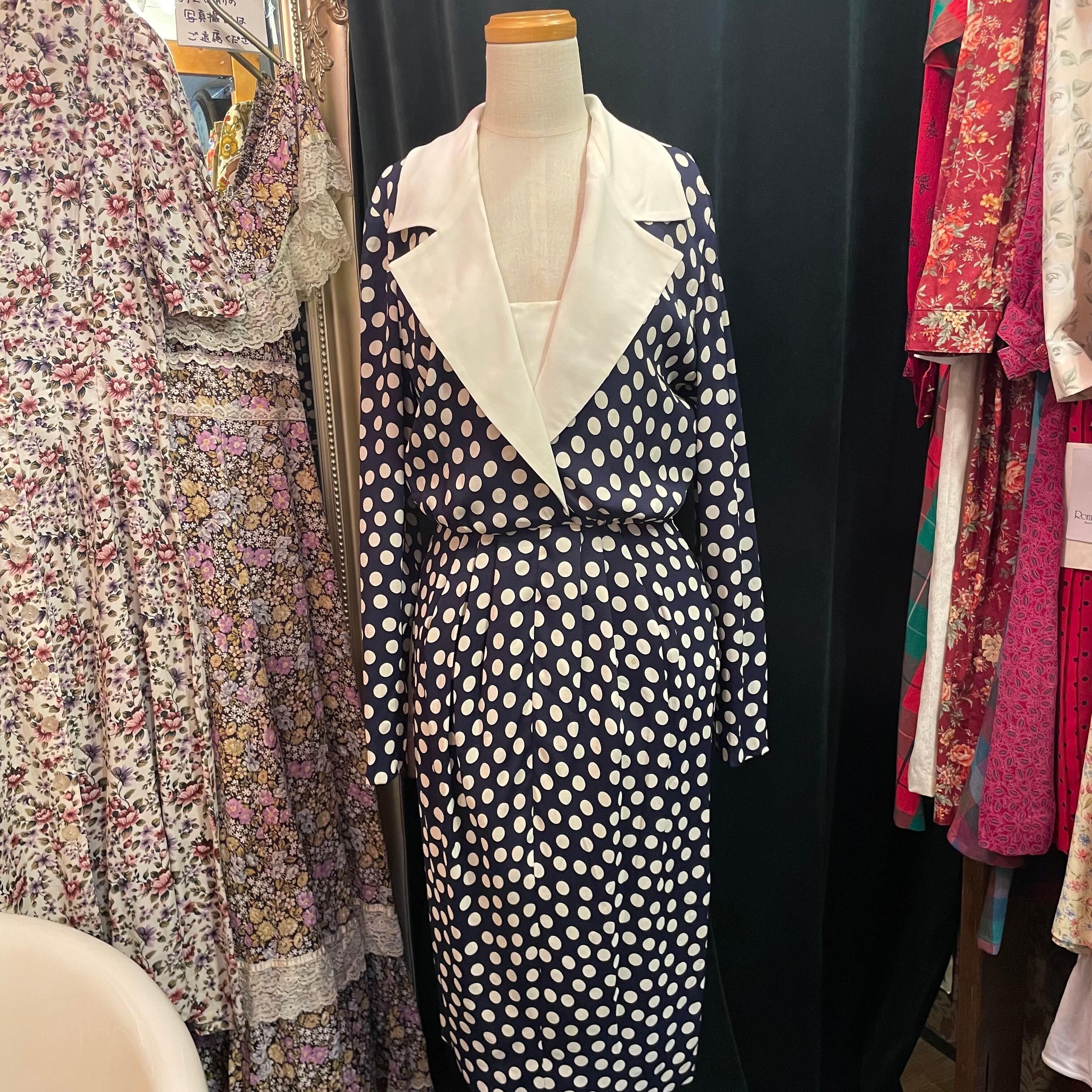ネイビーに白のコインドット柄でクラシカルな印象です。