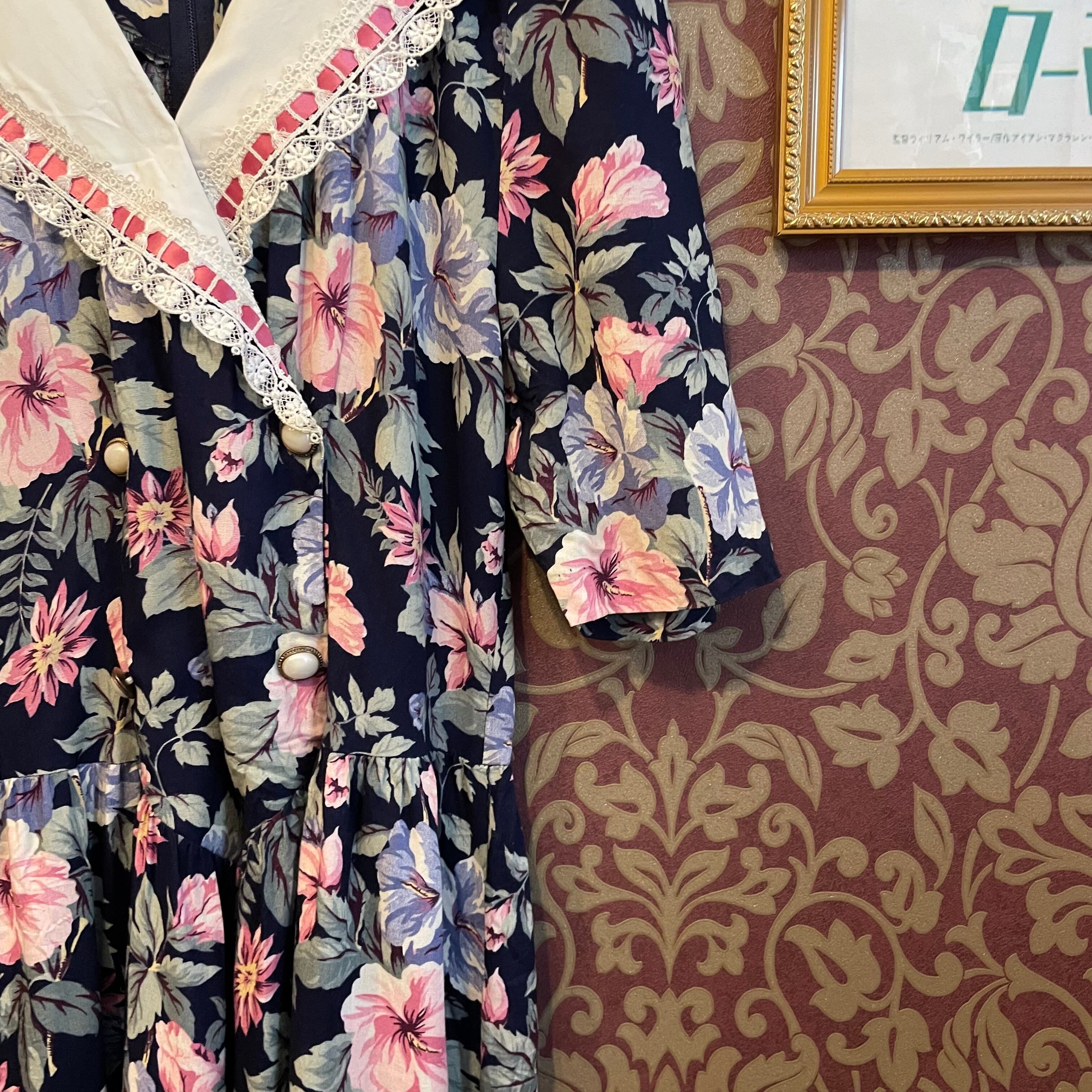 白い大きな襟がとっても可愛らしいvintageワンピースです。