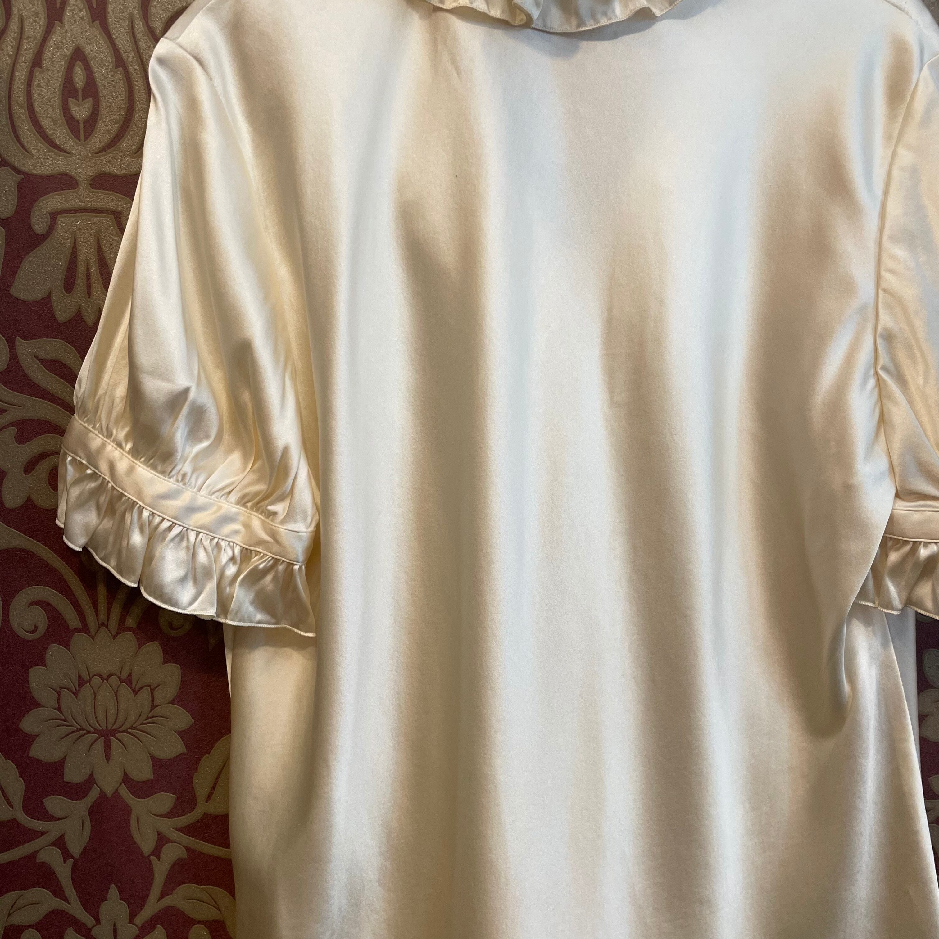 frill design silk satin blouse