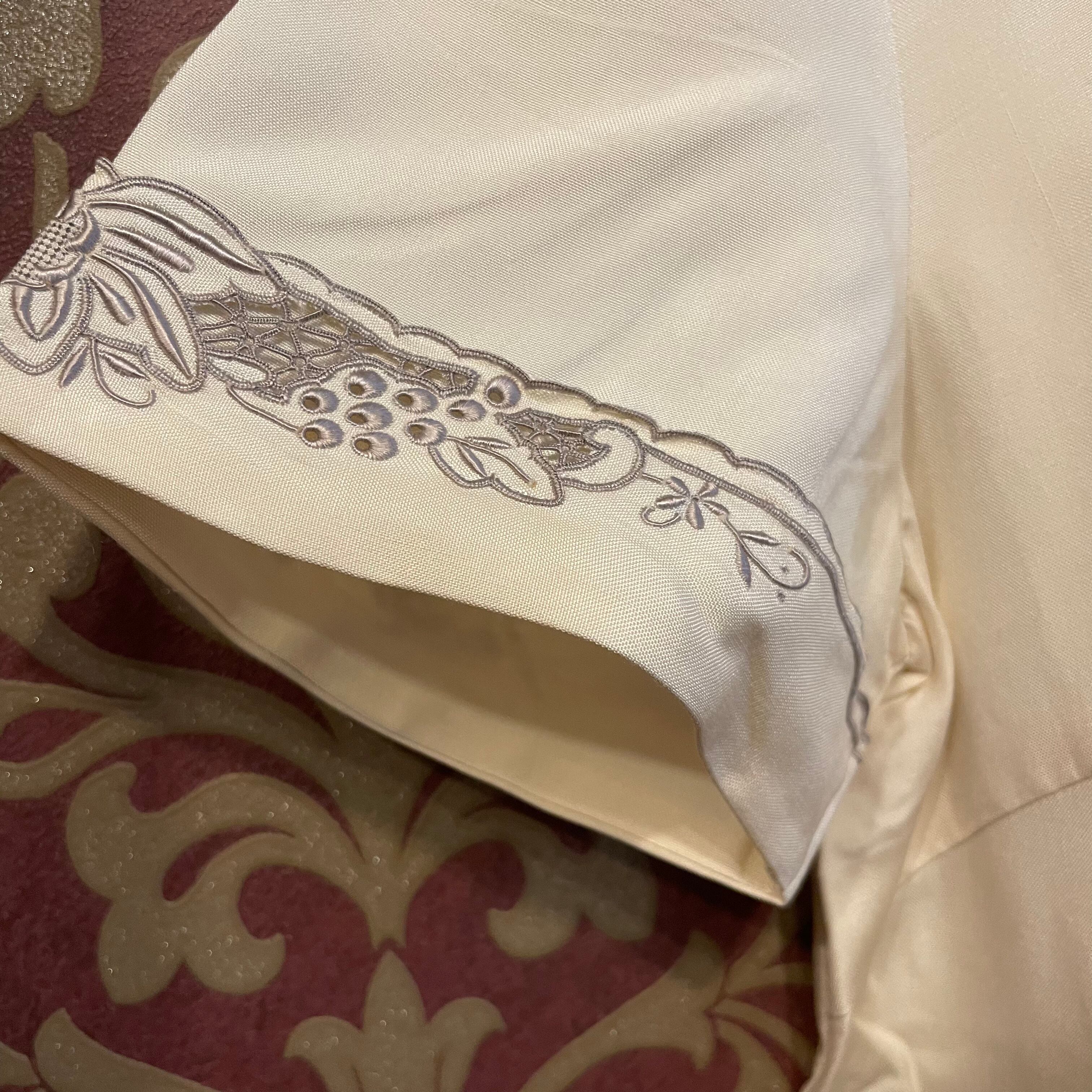 ピュアシルクに細かい手刺繍が施された繊細で豪華な一着です。
