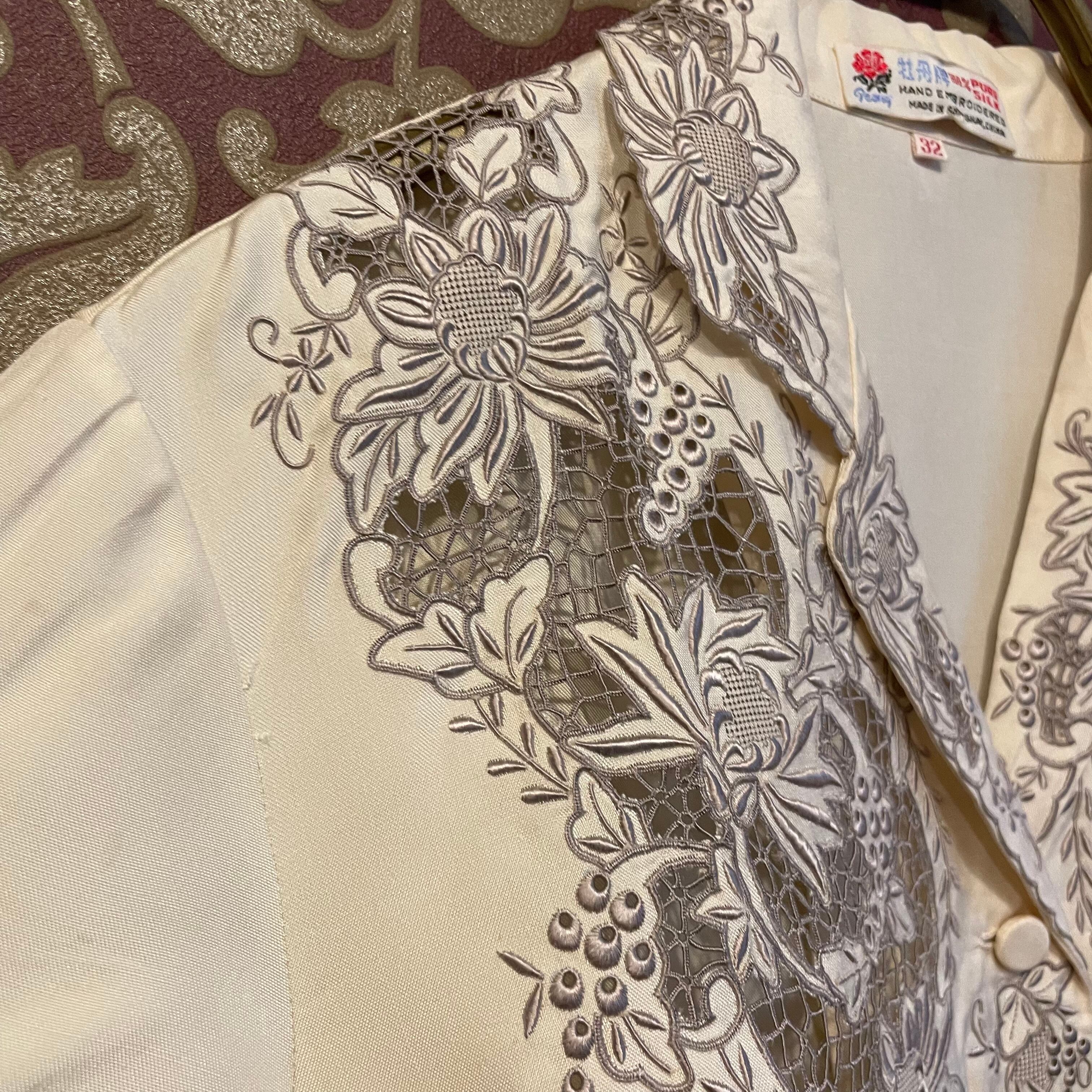 現在はスワトウ刺繍の職人がほとんどいなくなってしまい多くが機械で作られている為こちらの一着は貴重かと思います。