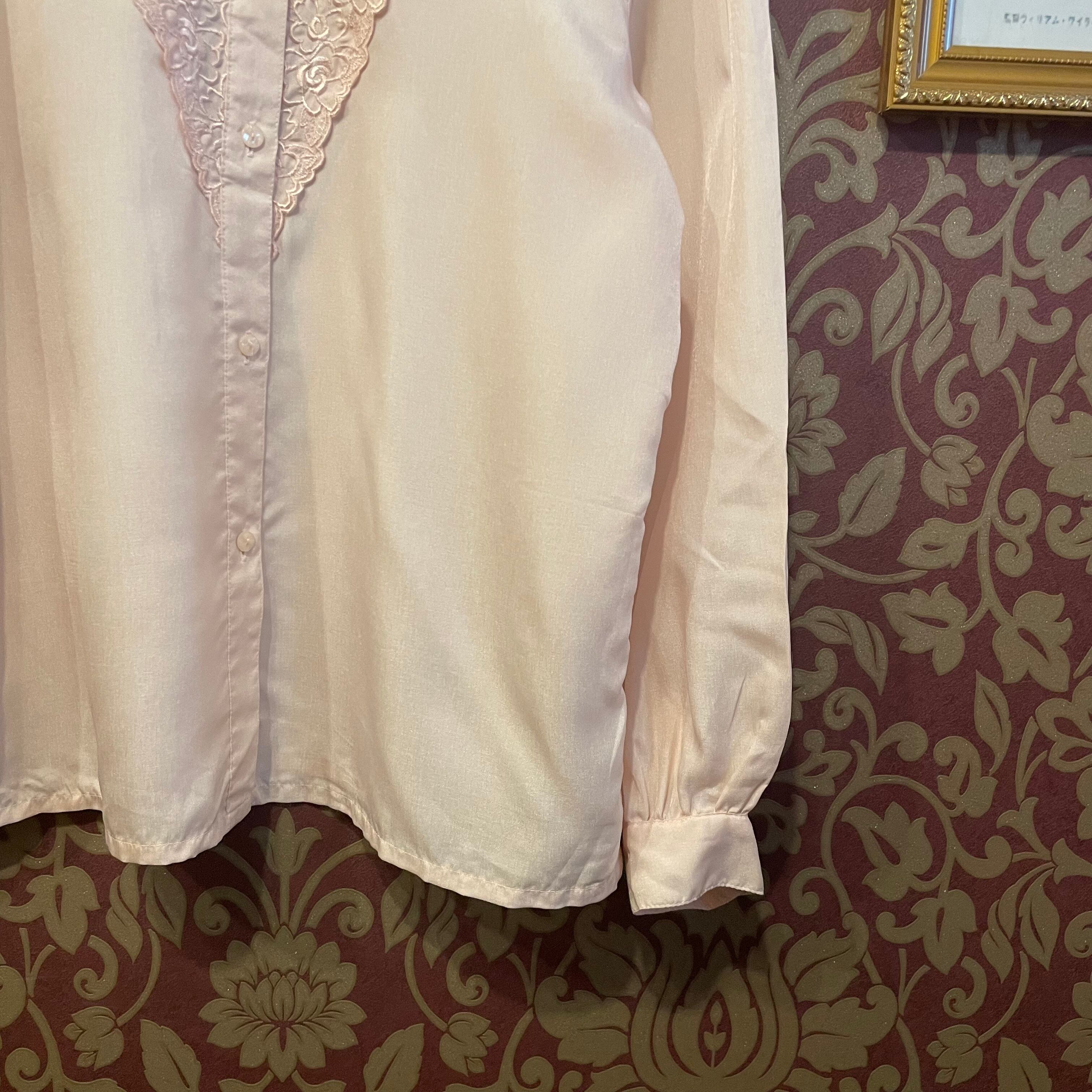 細やかな花の刺繍が美しいベビーピンク色のブラウスです。