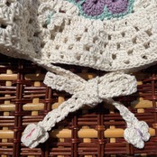 グラニースクエアを使ったクロシェハットに蝶々モチーフで装飾を施しました。