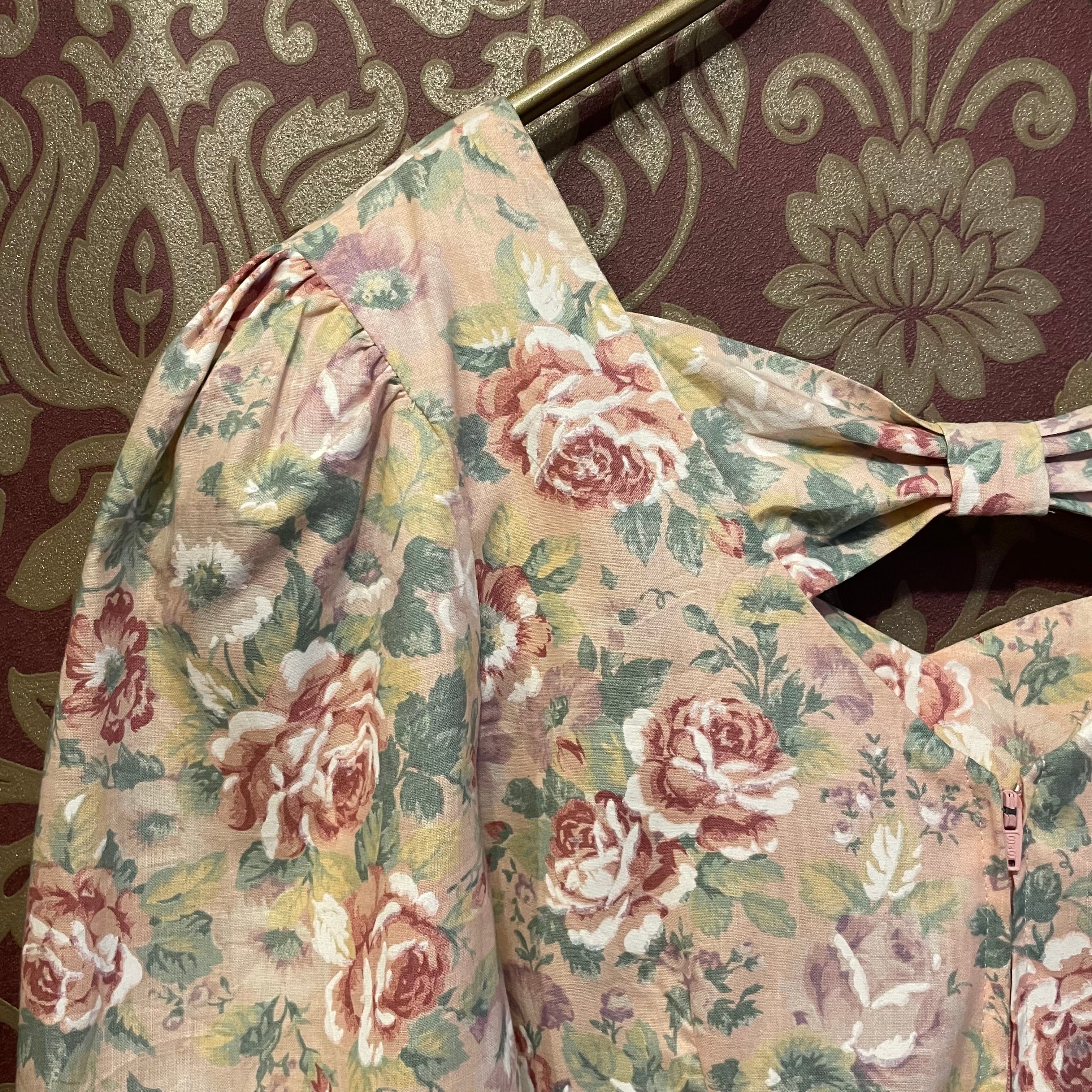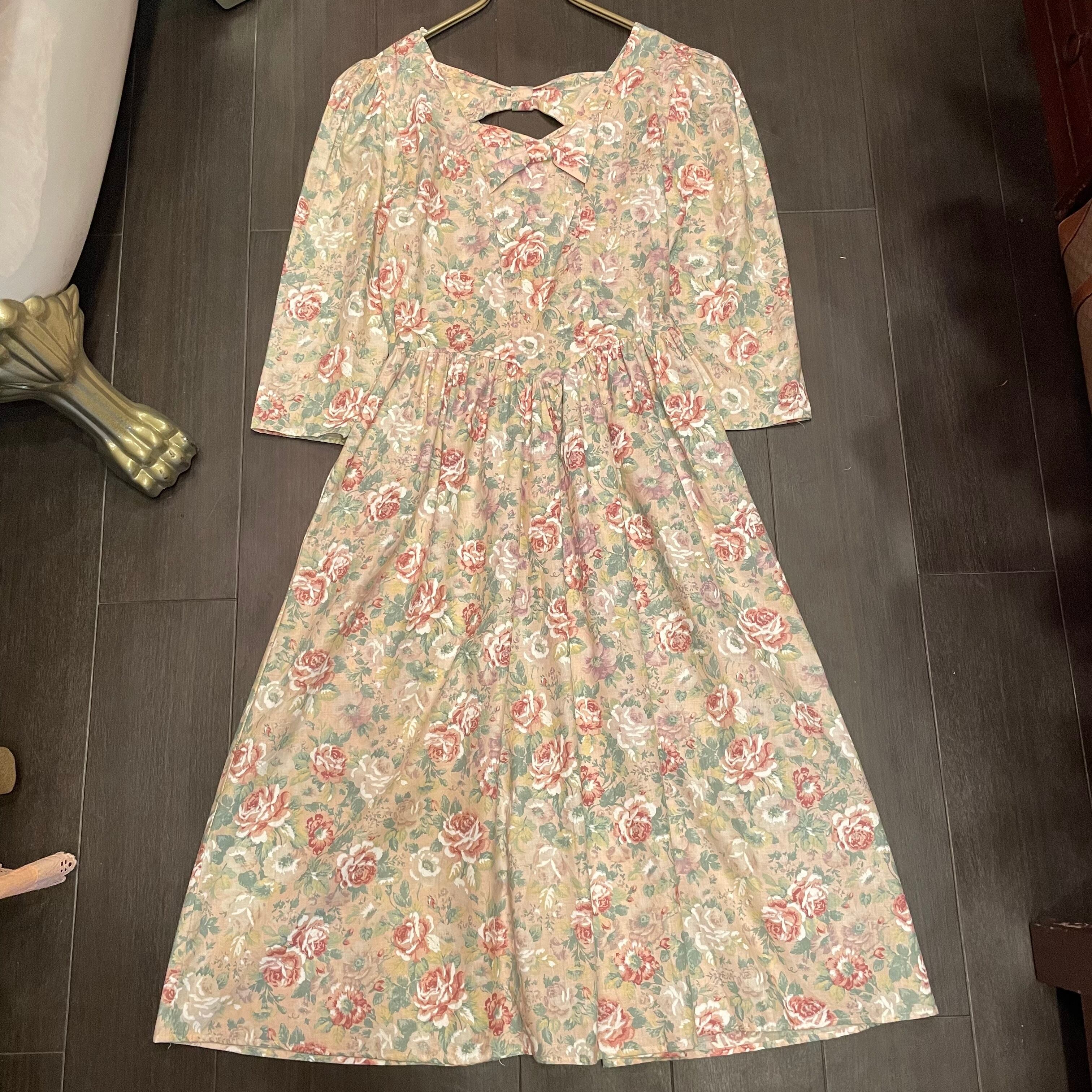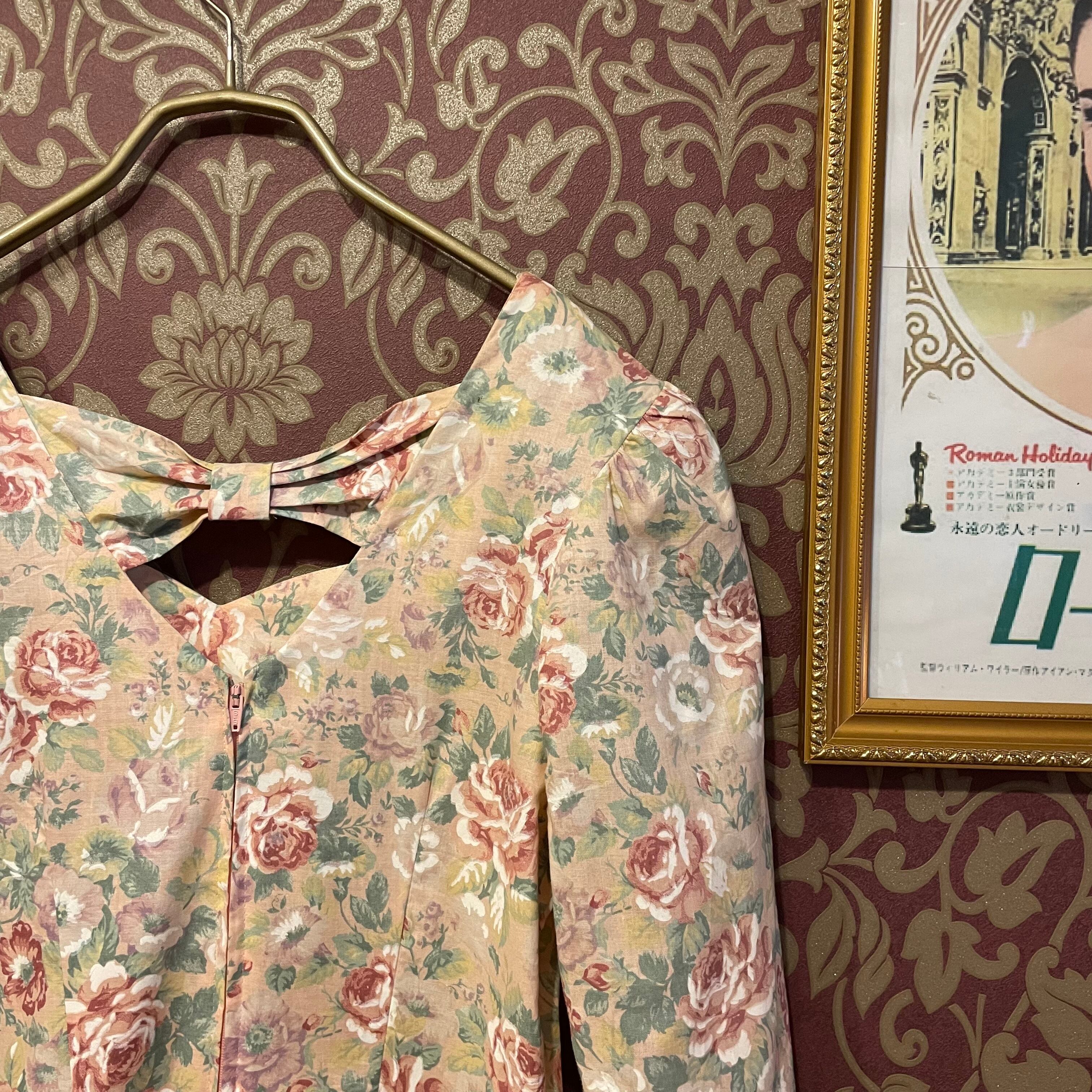 ロマンチックなバラ柄のヴィンテージワンピースです。