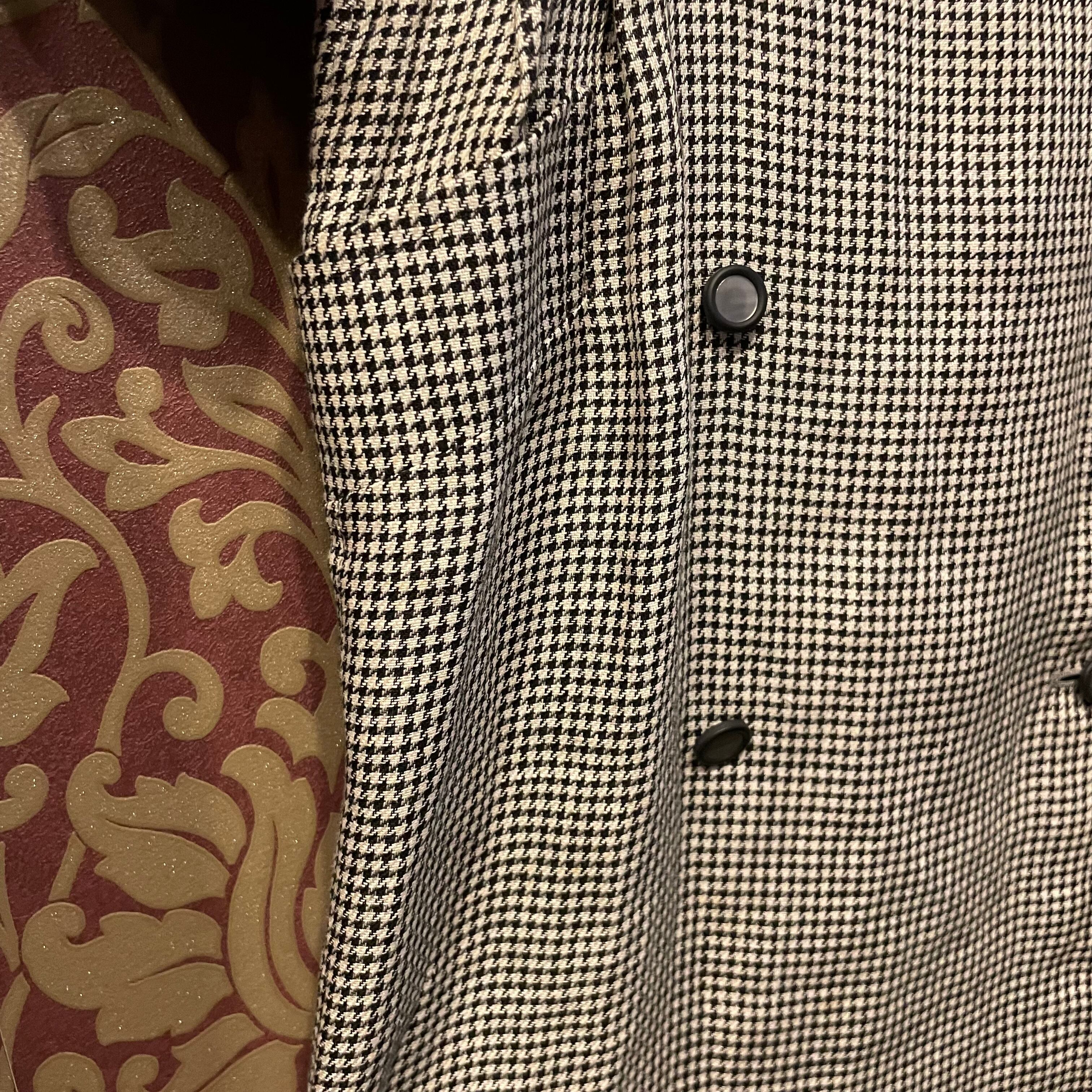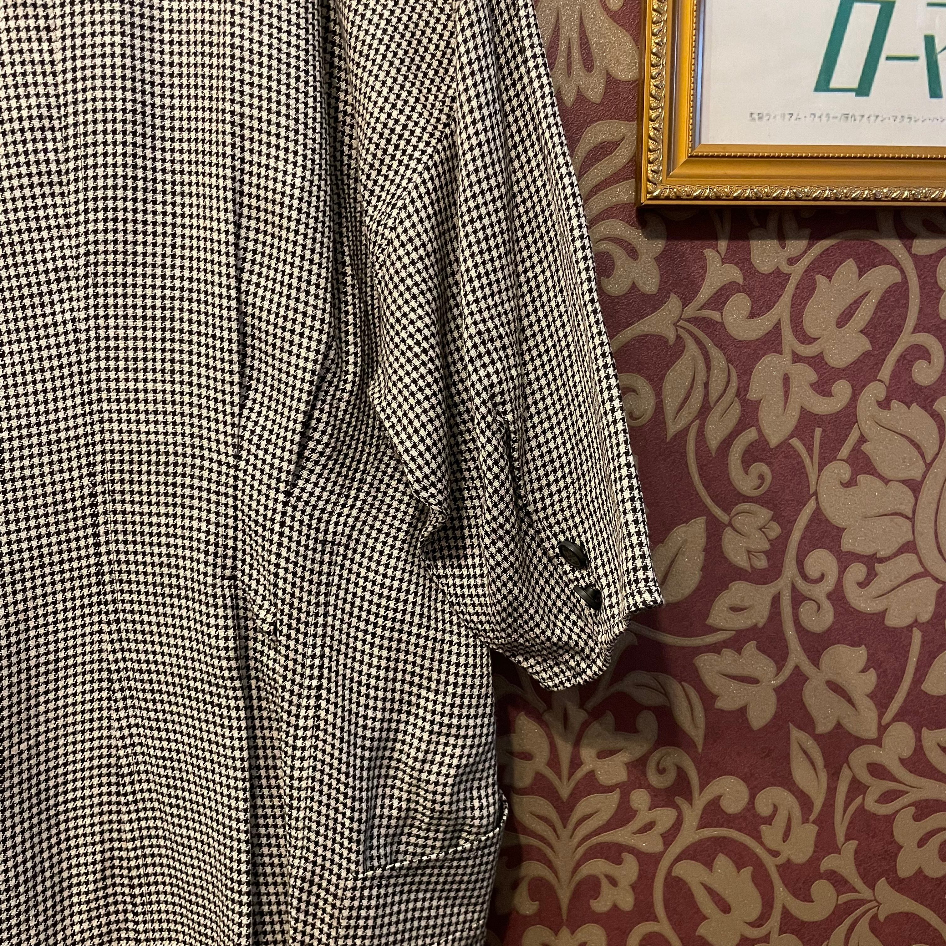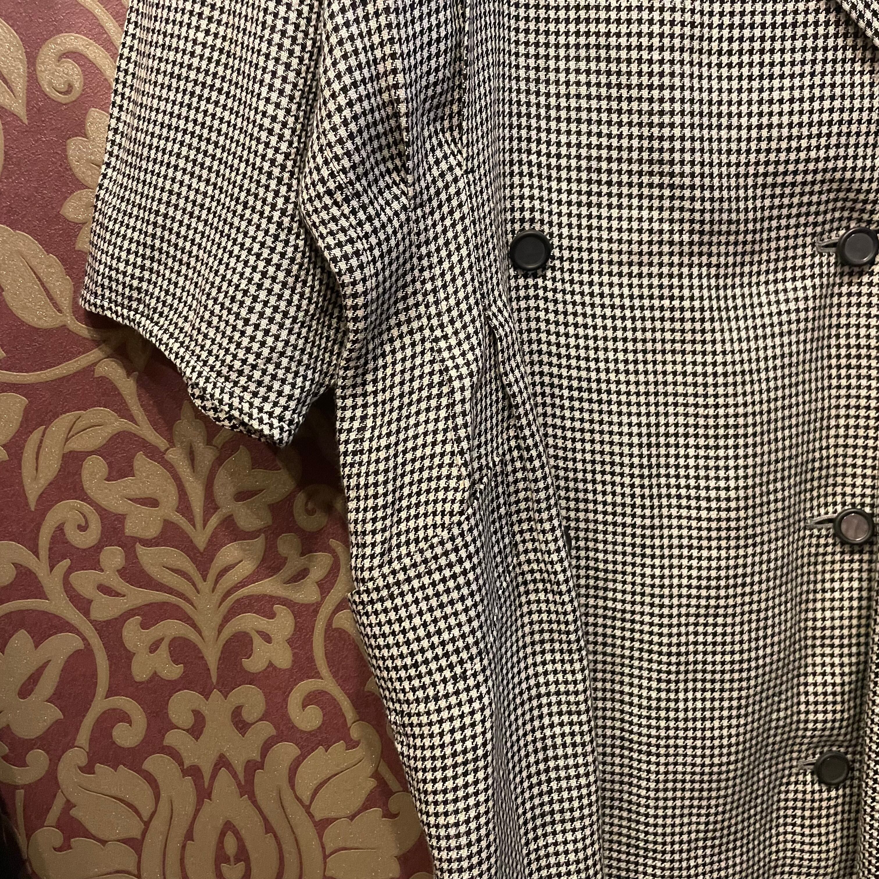 細かな千鳥格子とダブルボタン、シルエットがクラシカルなデザインです。