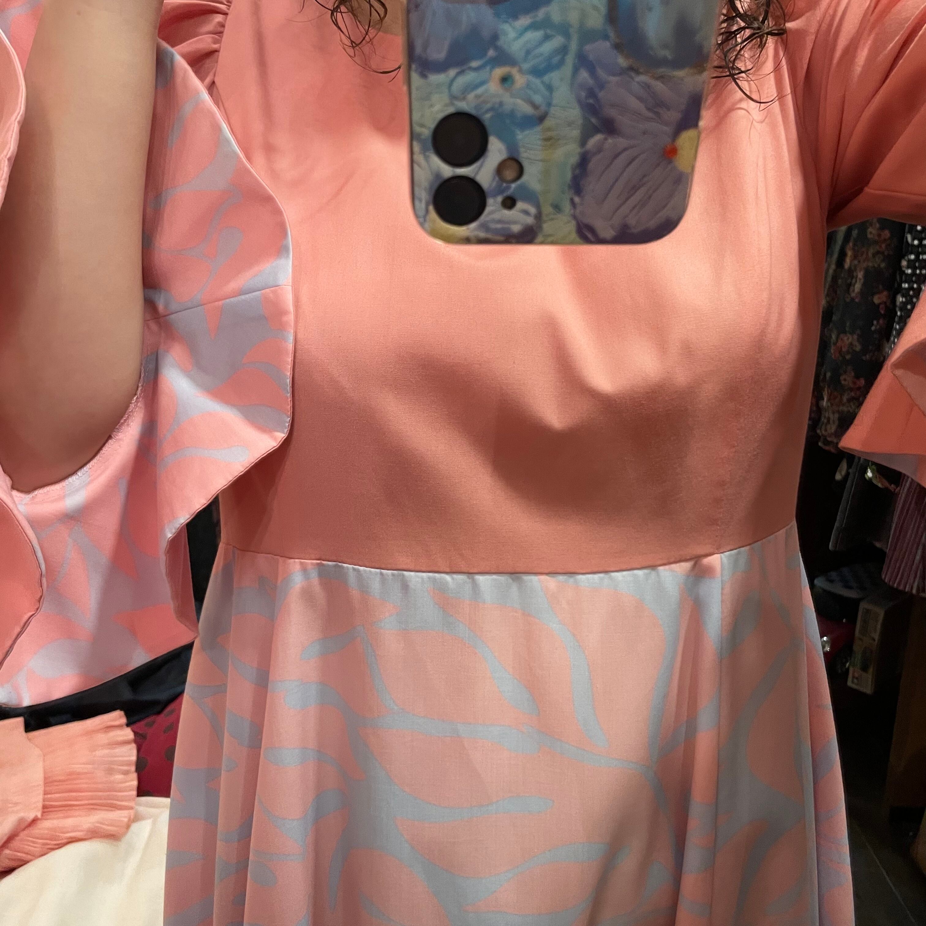 袖口はベルスリーブで裏地にはスカート部分と同じ生地が使われています。