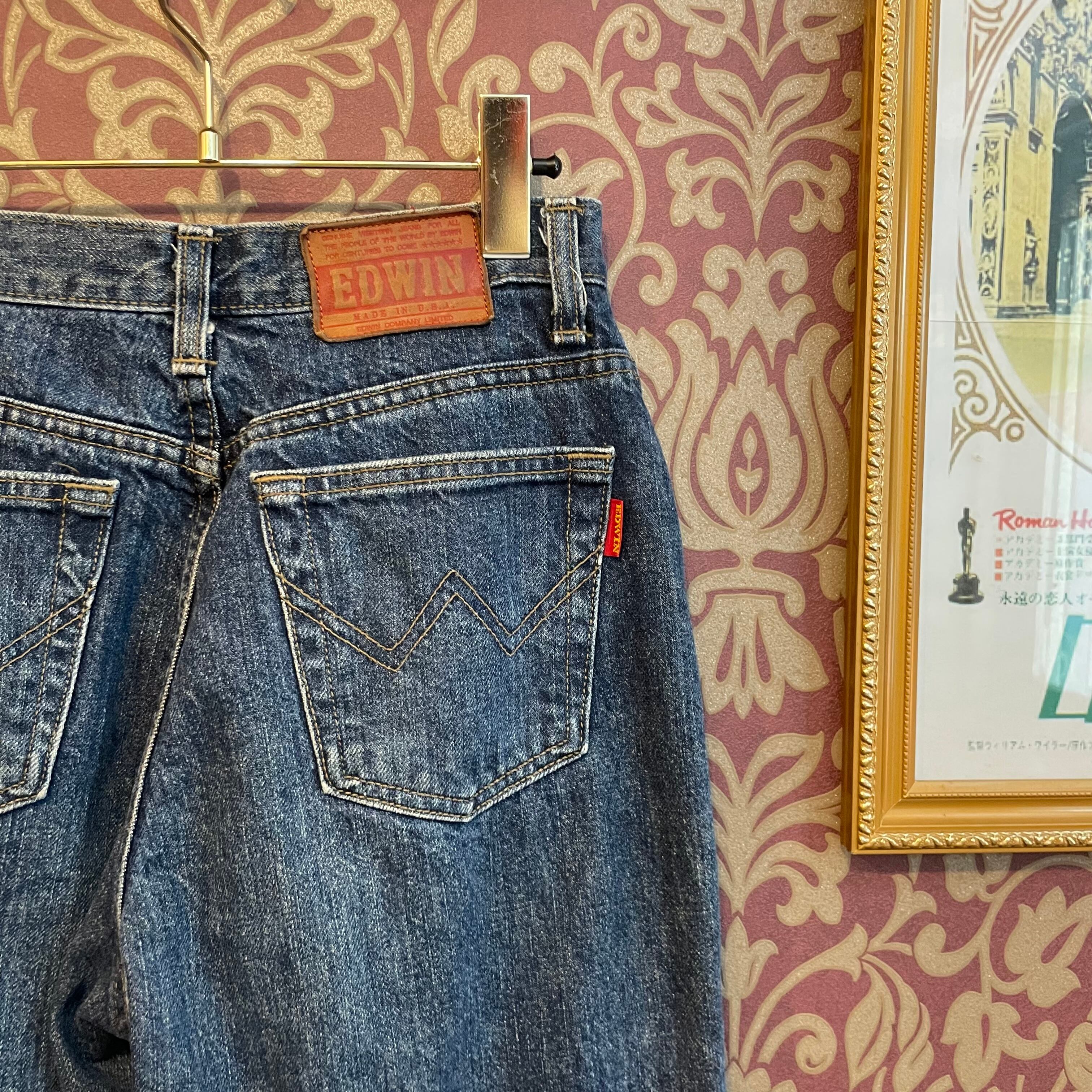 EDWINのヴィンテージデニムの裾を切りコットン糸でフレアデザインに仕上げました。