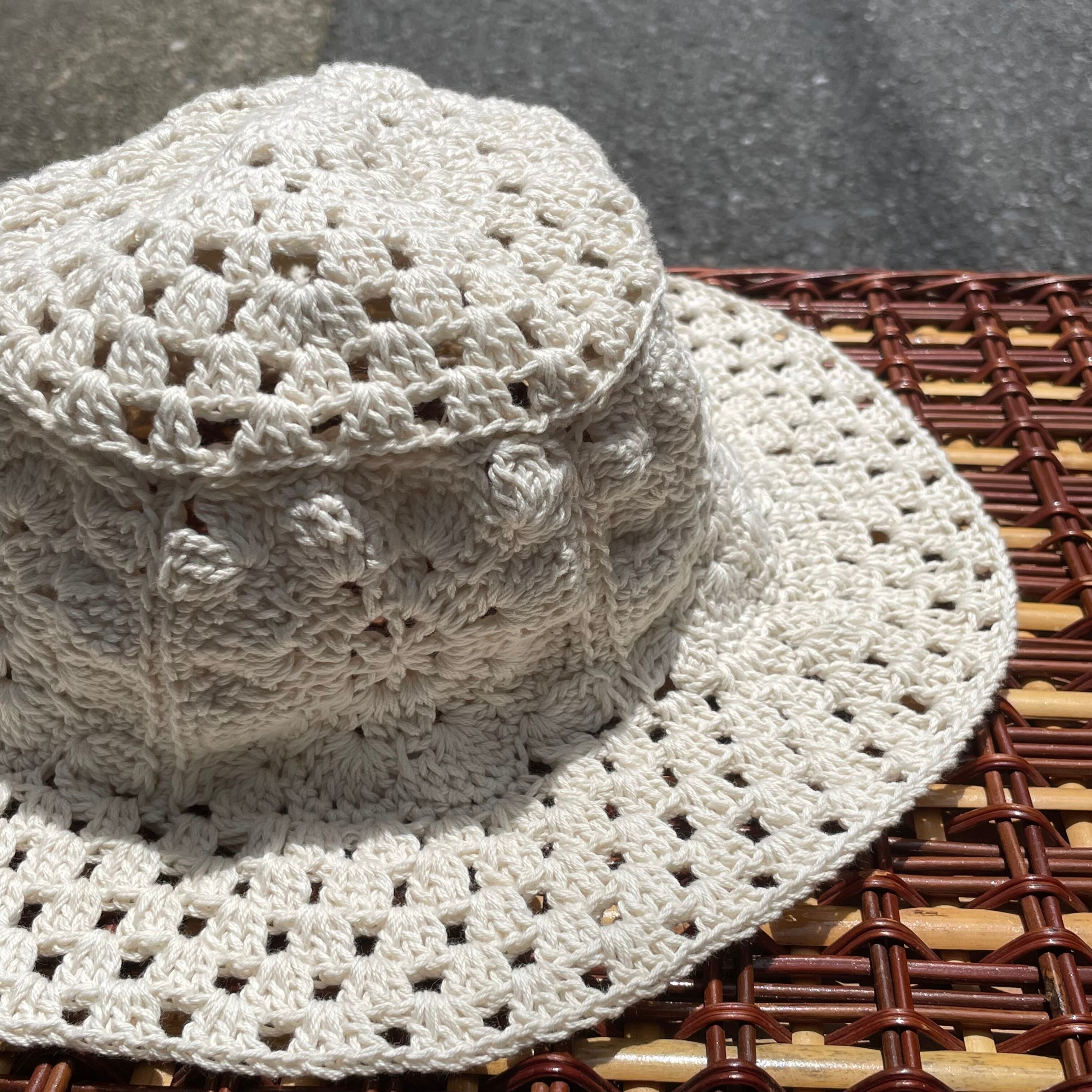ハンドメイドのかぎ針編みのコットンバケットハットです。