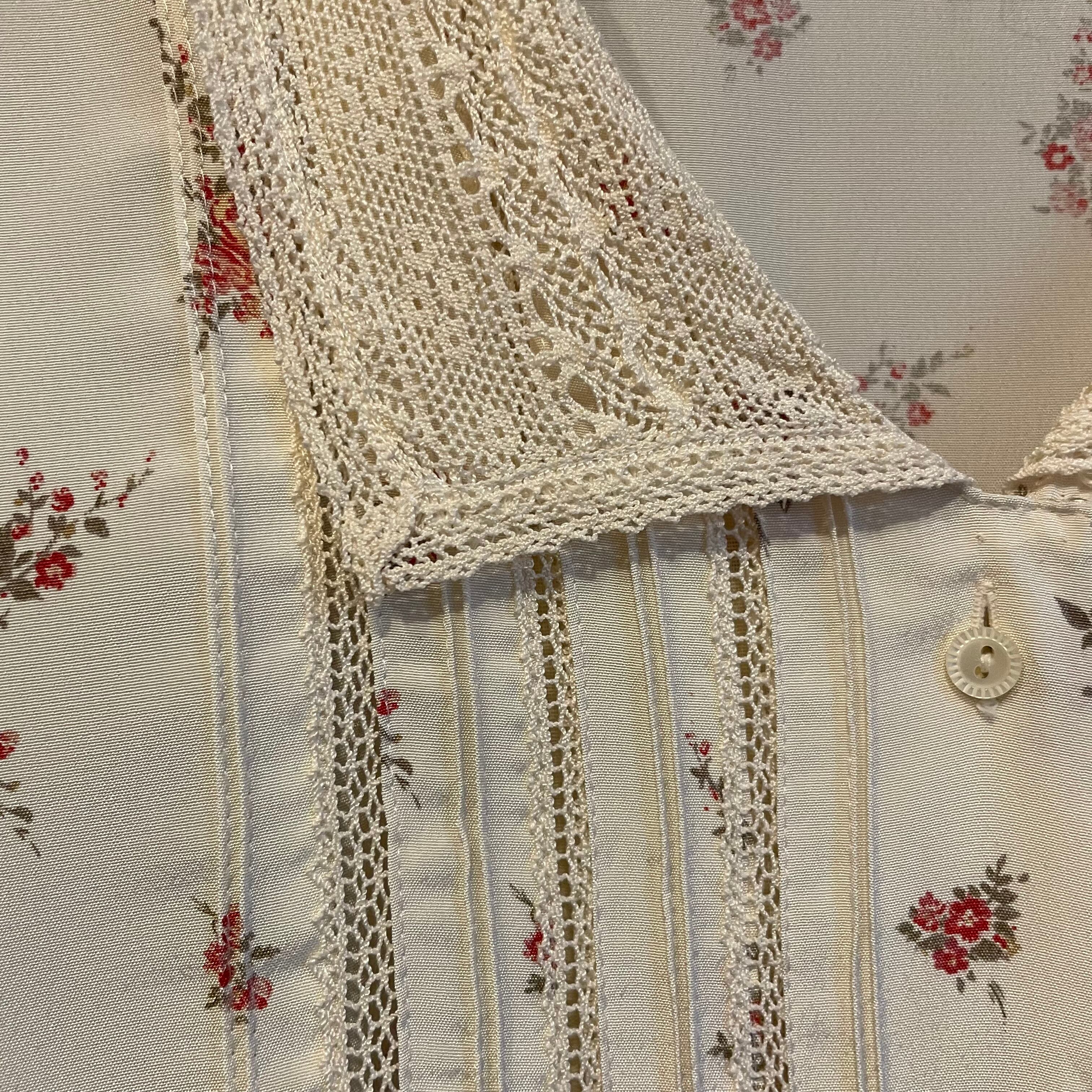 華奢なシルクのクロシェレースが美しい花柄のブラウスです。