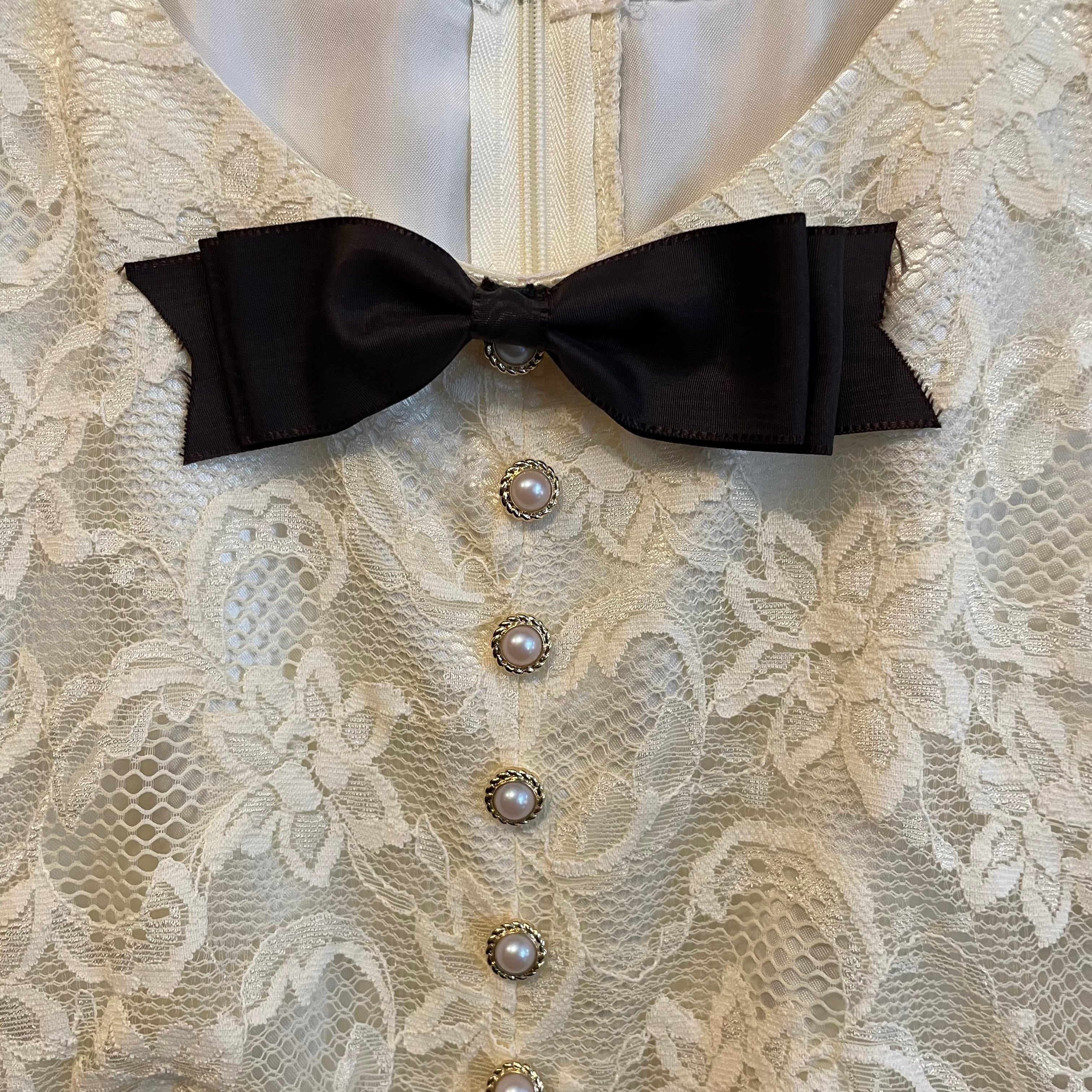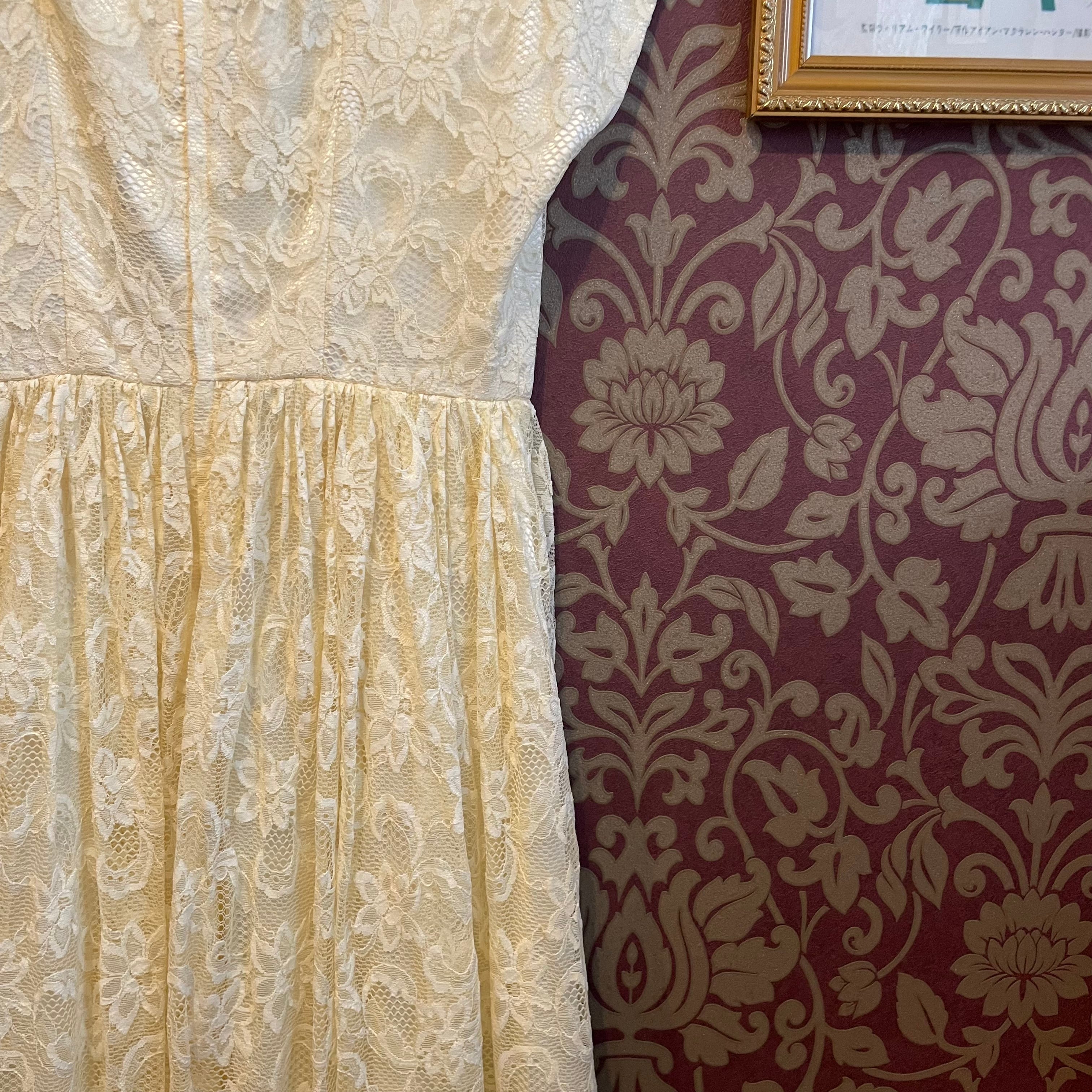 温かみのあるクリーム色のヴィンテージレースドレスです。