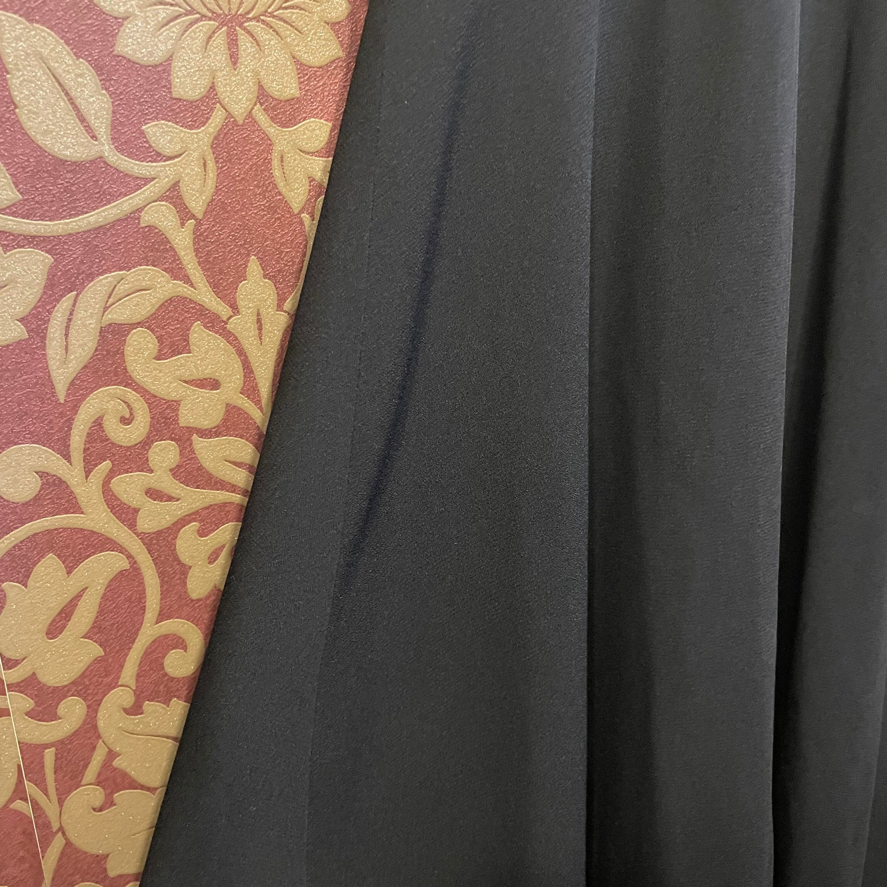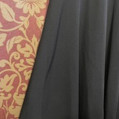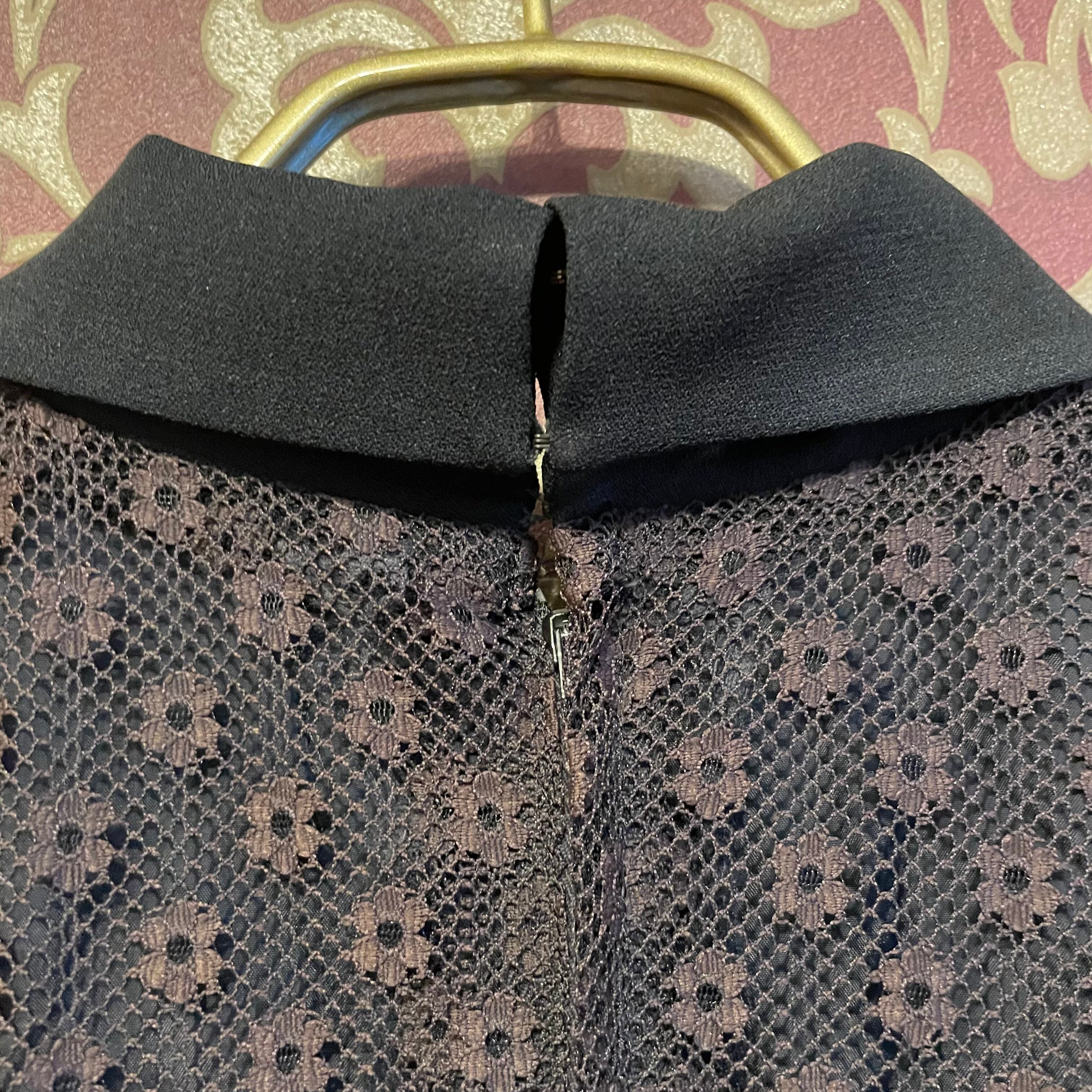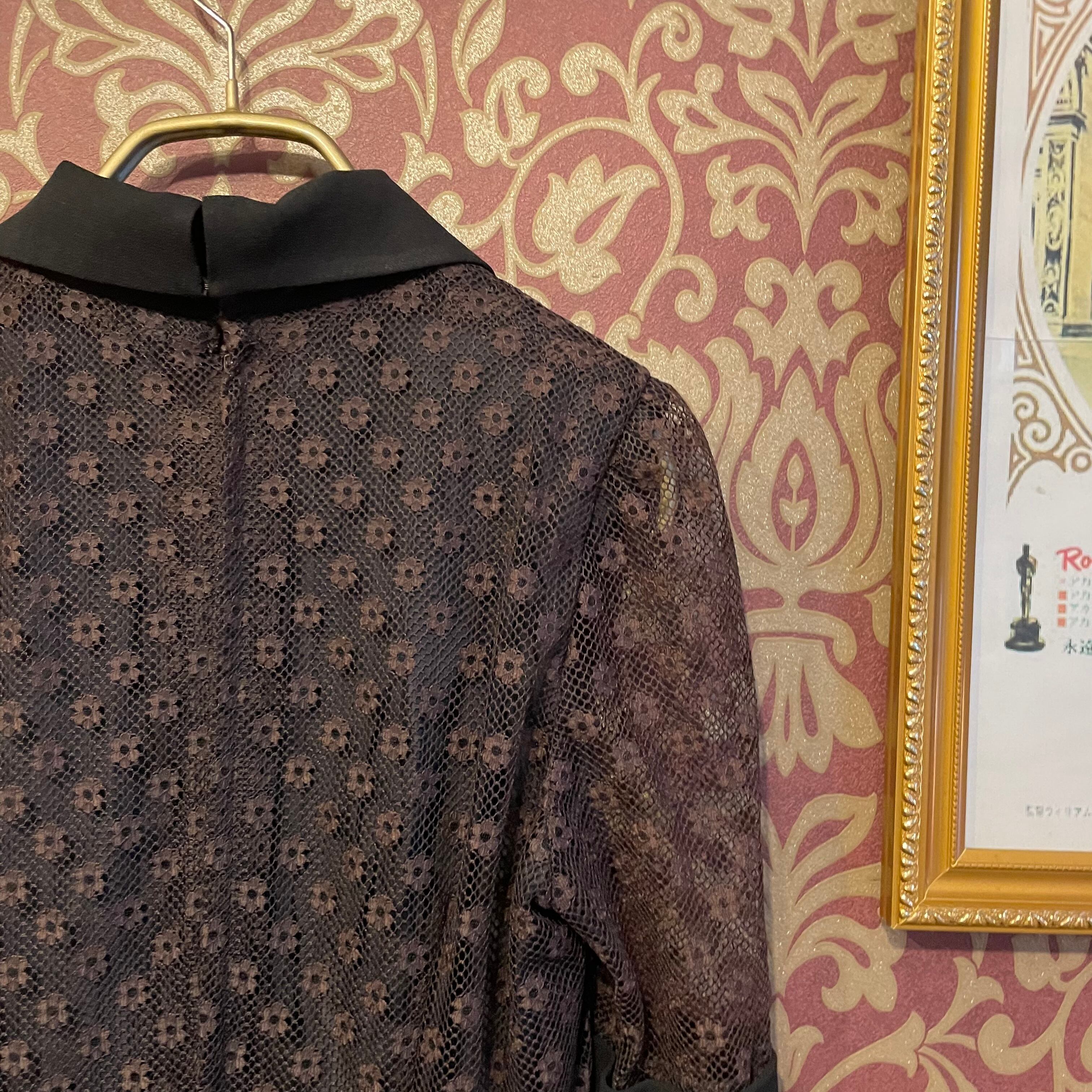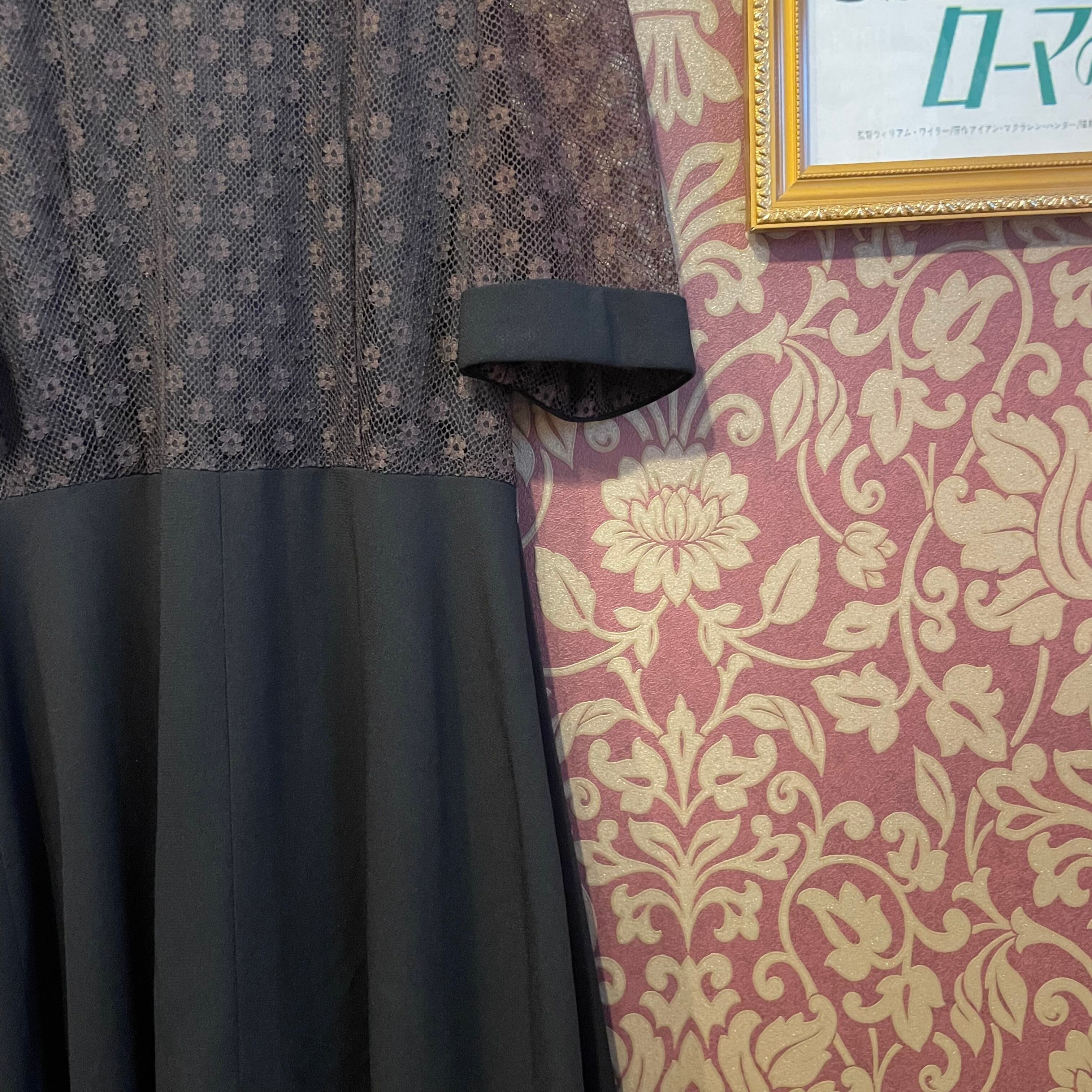 上見頃に深い小豆色の花がらのレースが使われた黒のワンピースです。