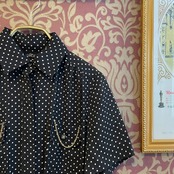 黒地に白のドット柄のワンピースです。