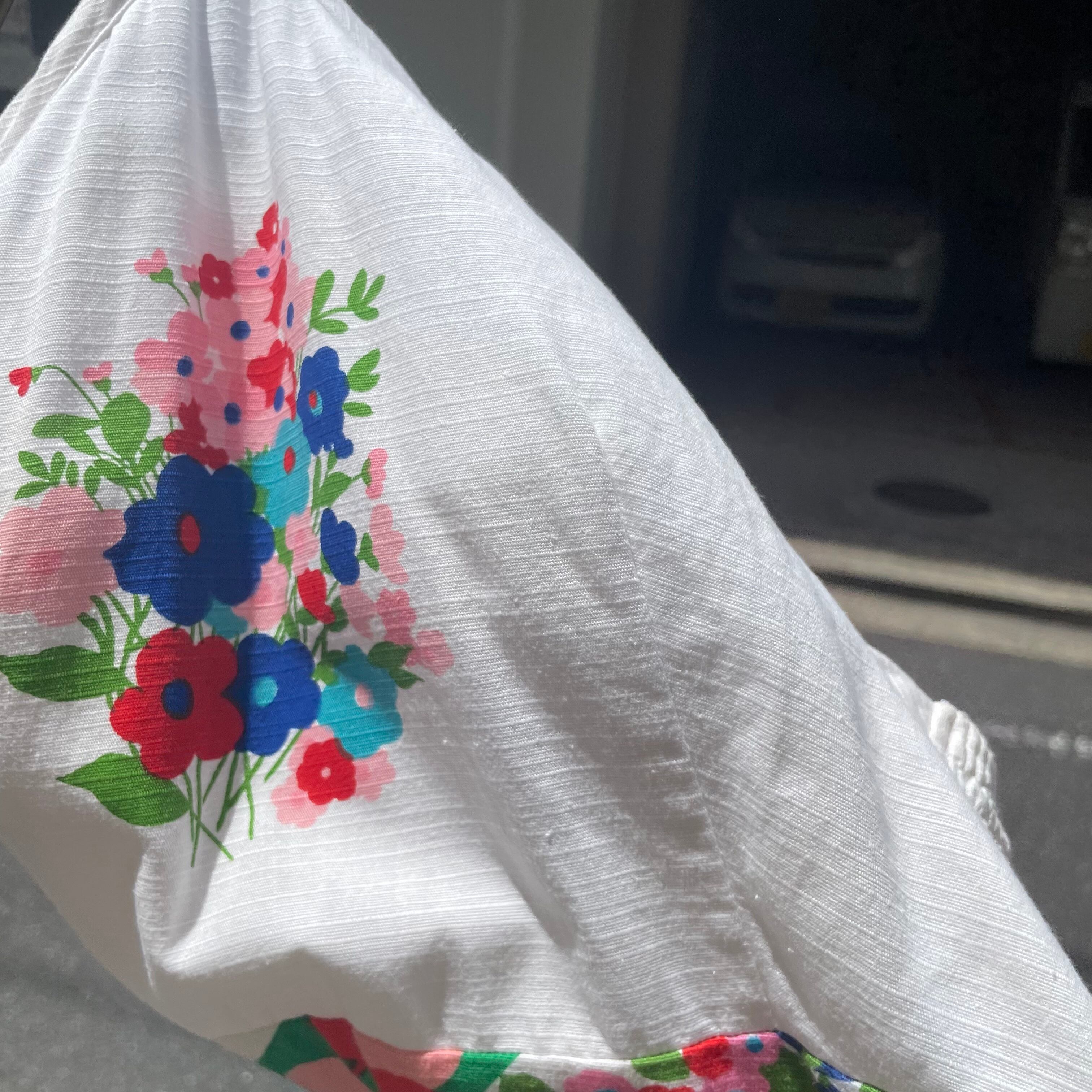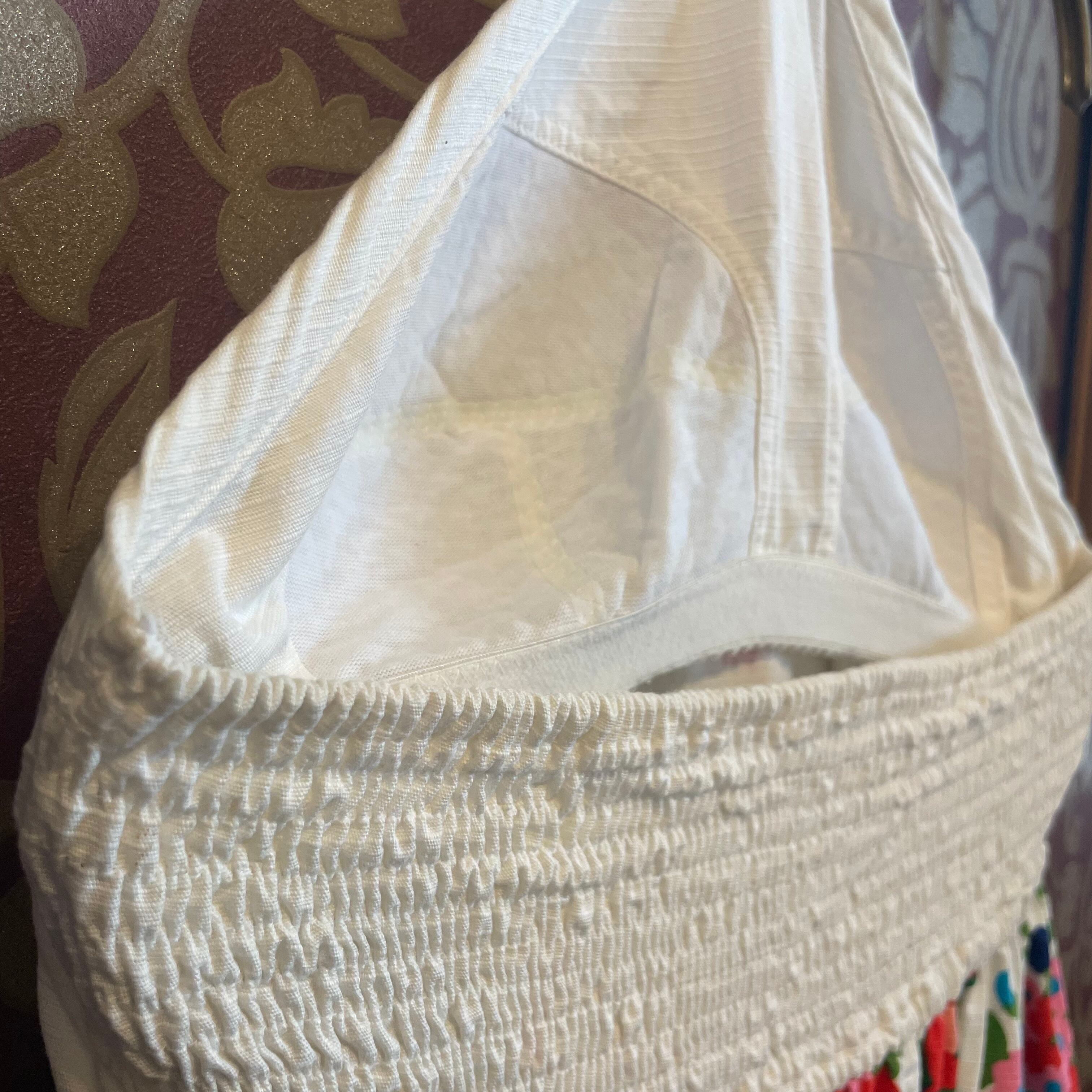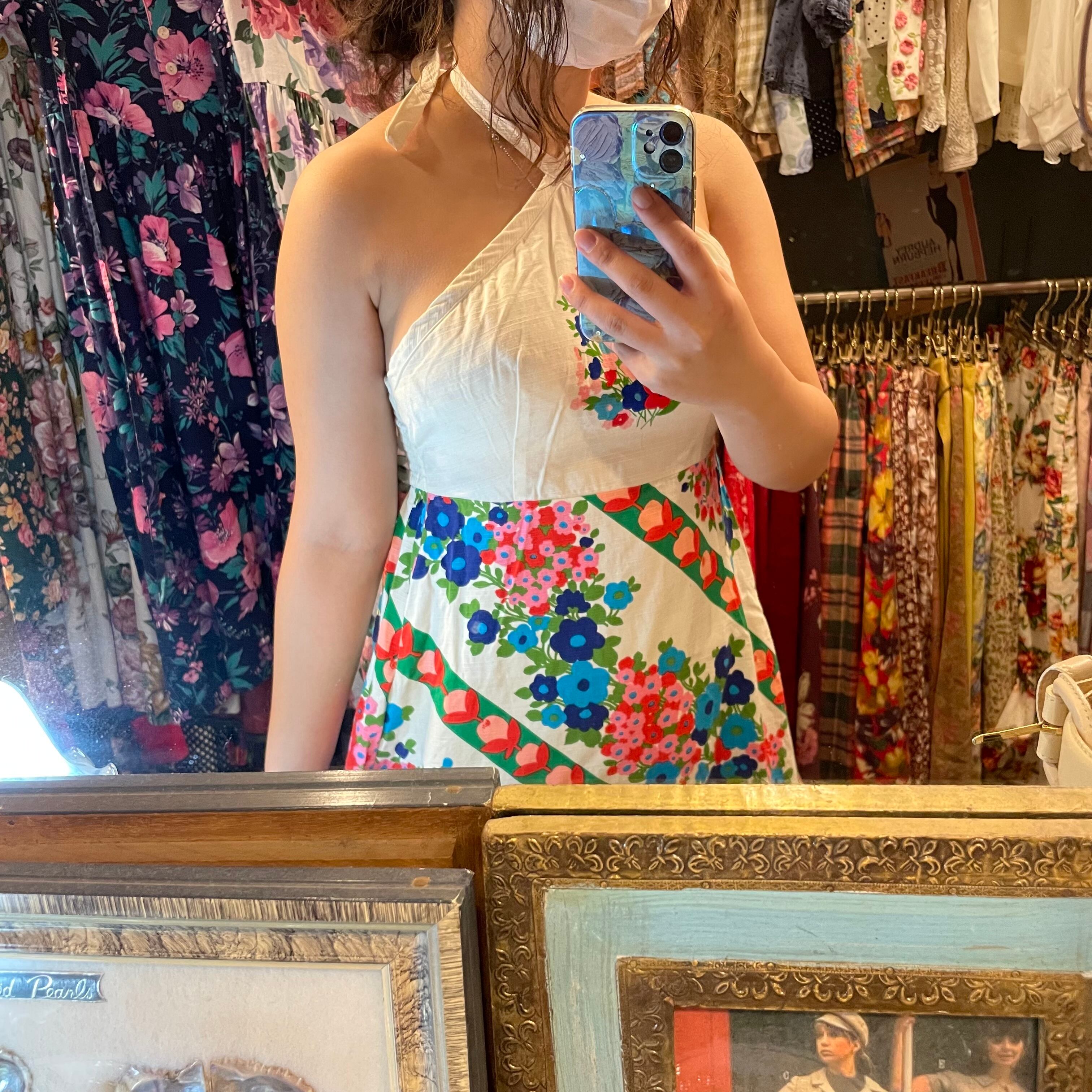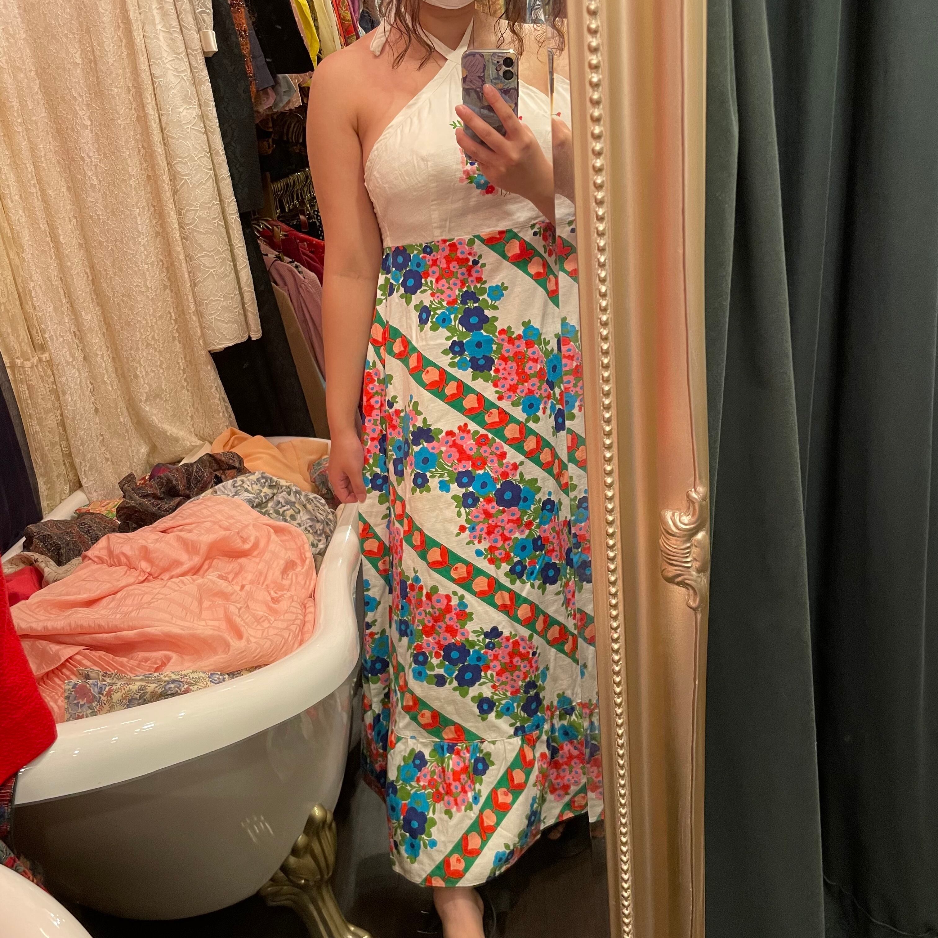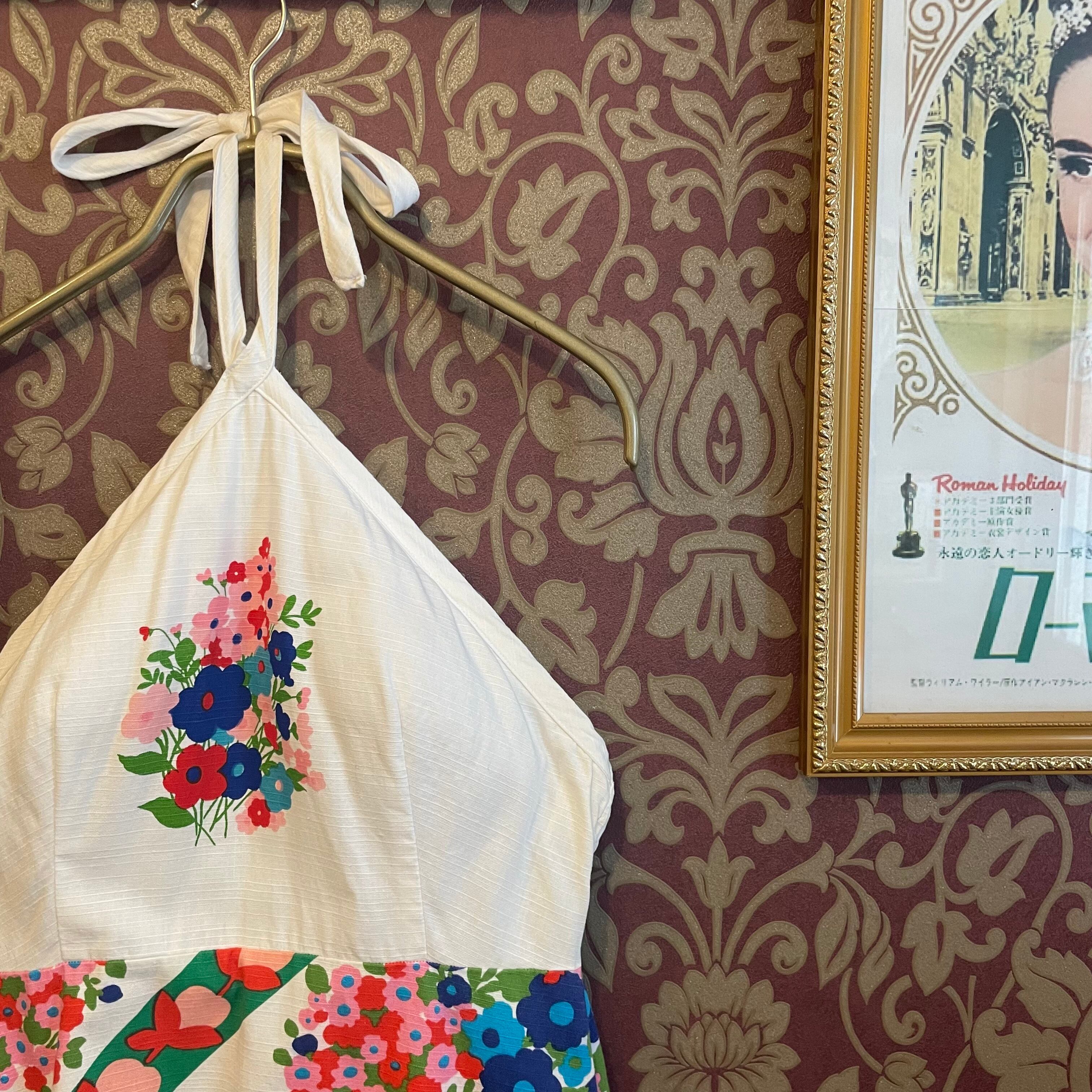 白地に鮮やかな花柄でフレッシュでパワフルな夏らしいワンピースです。