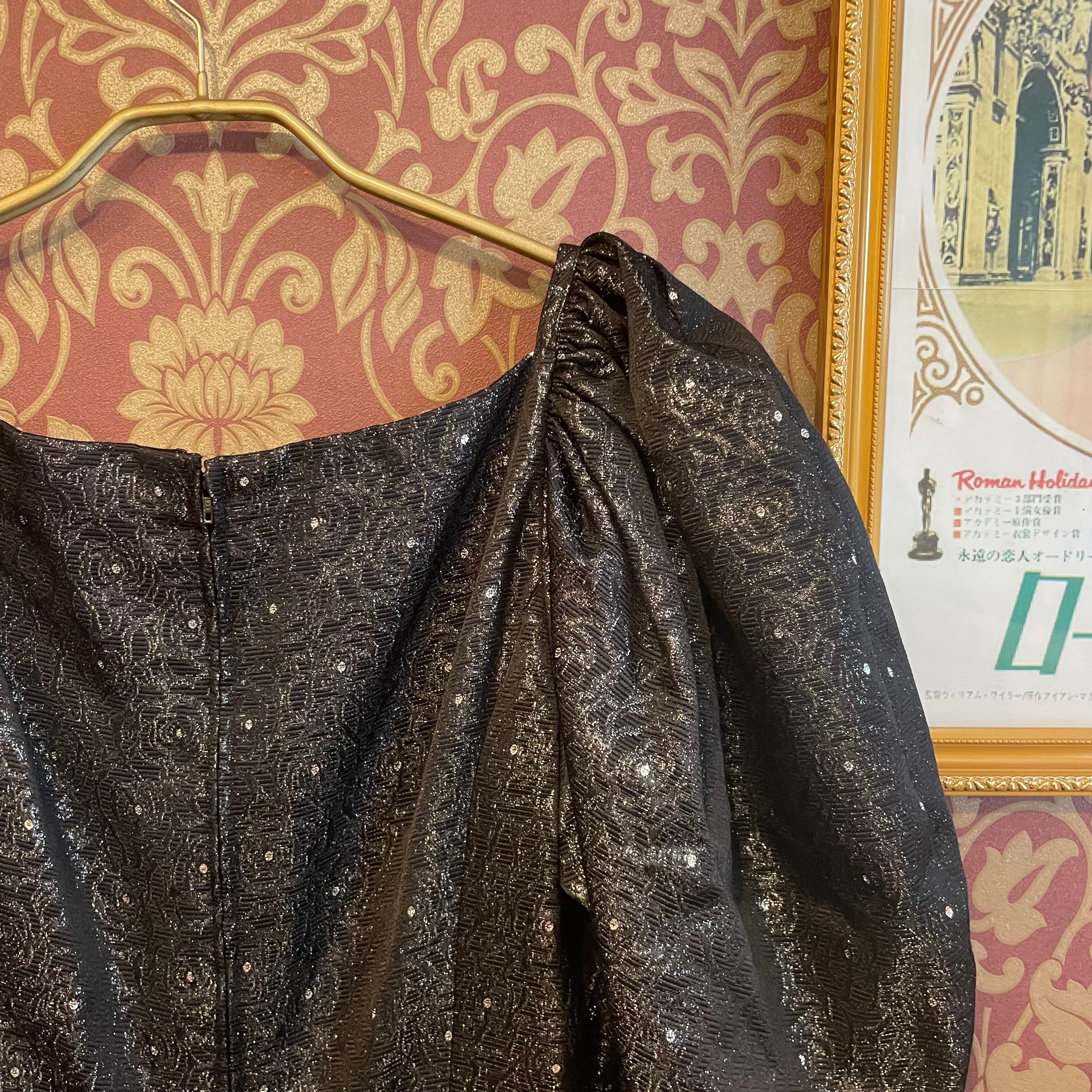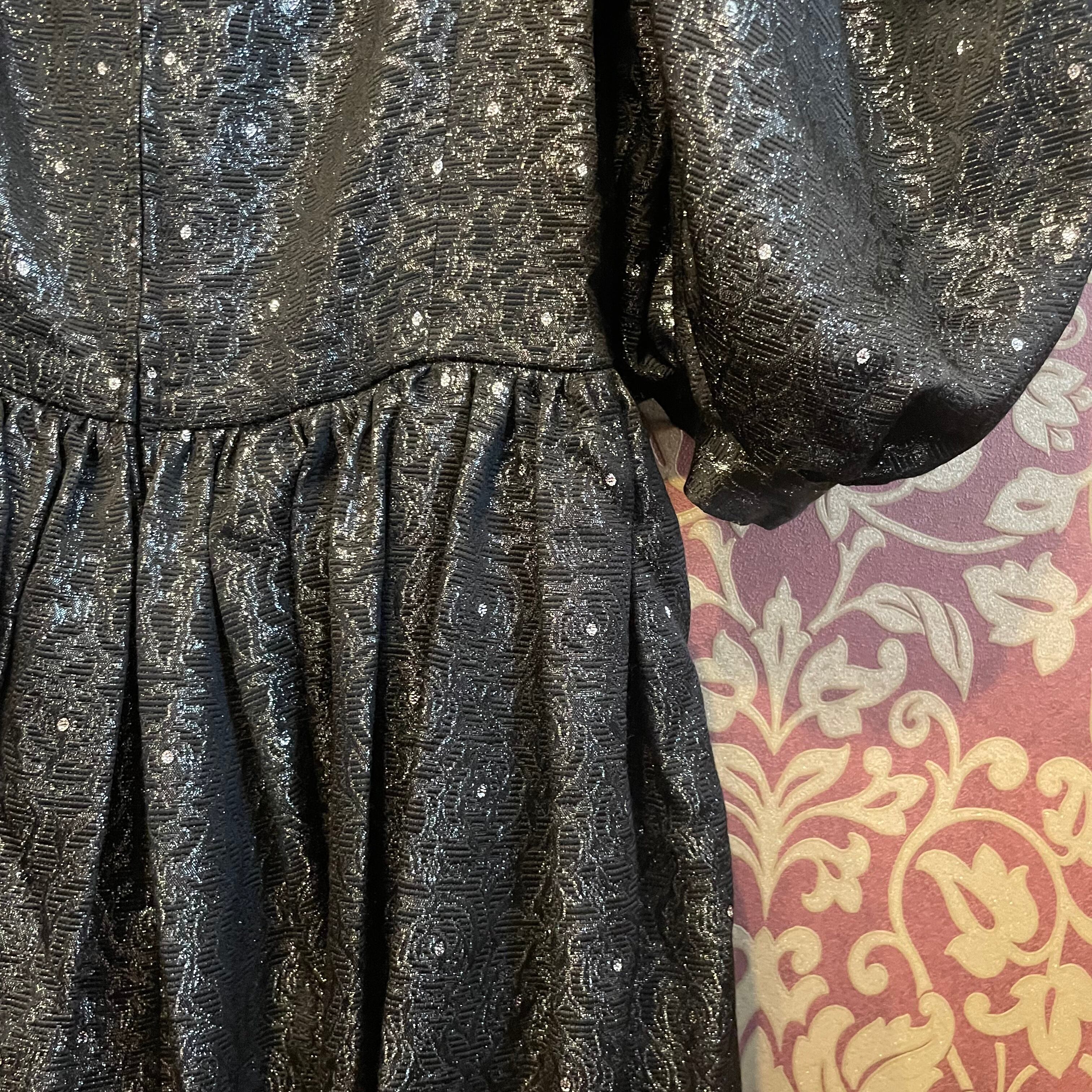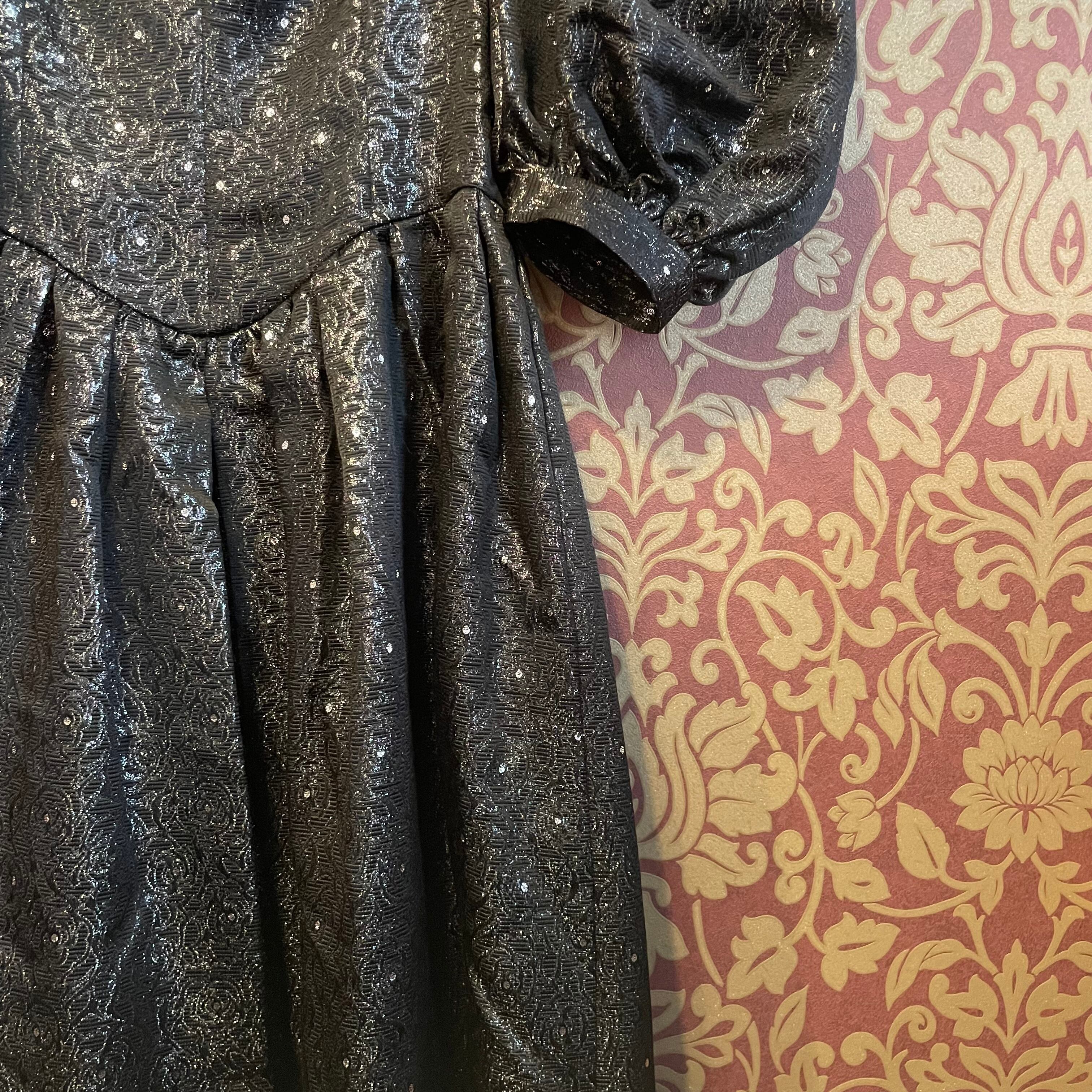 黒にシルバーのラメ糸がキラキラとしたジャガード織りのドレスワンピースです。