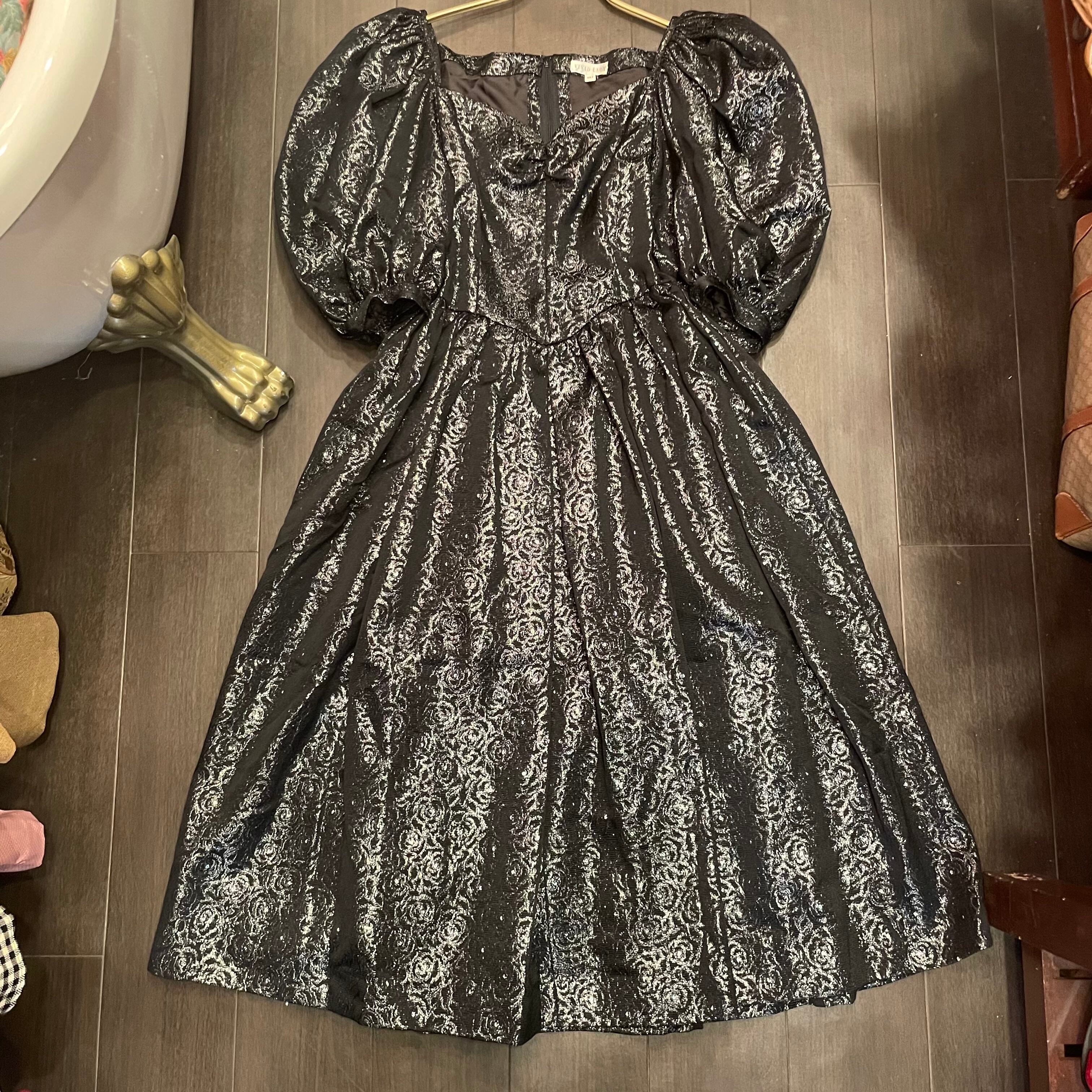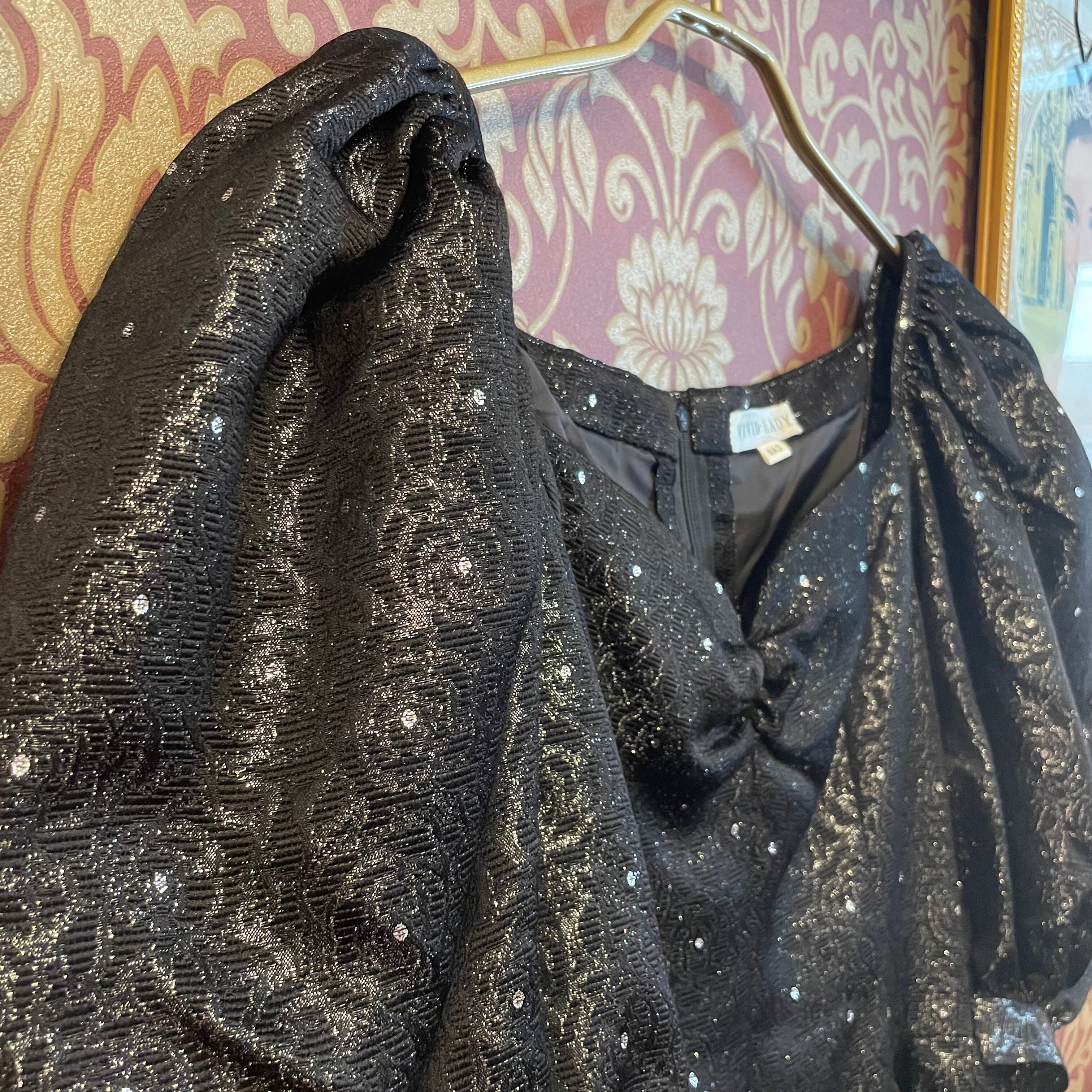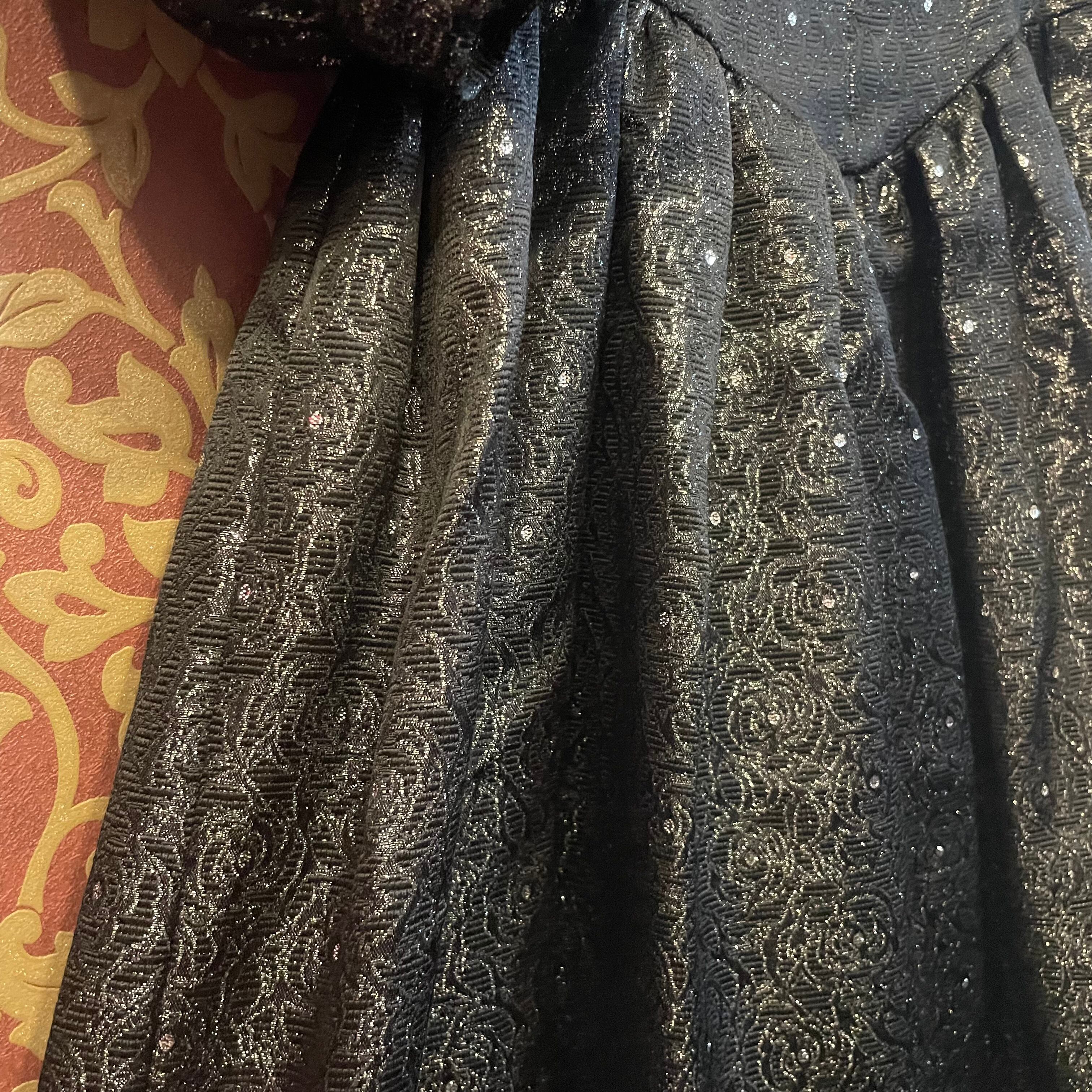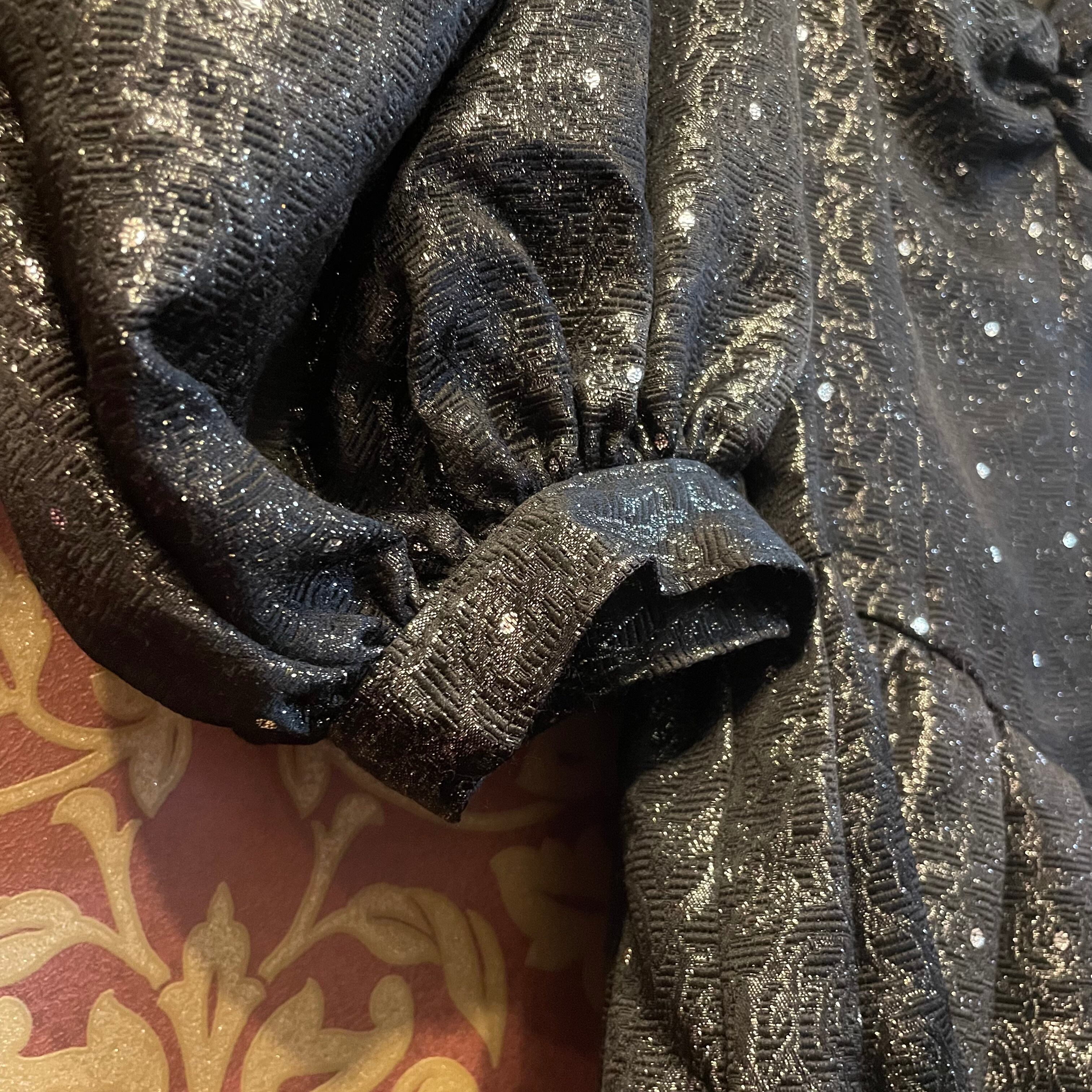 黒にシルバーのラメ糸がキラキラとしたジャガード織りのドレスワンピースです。