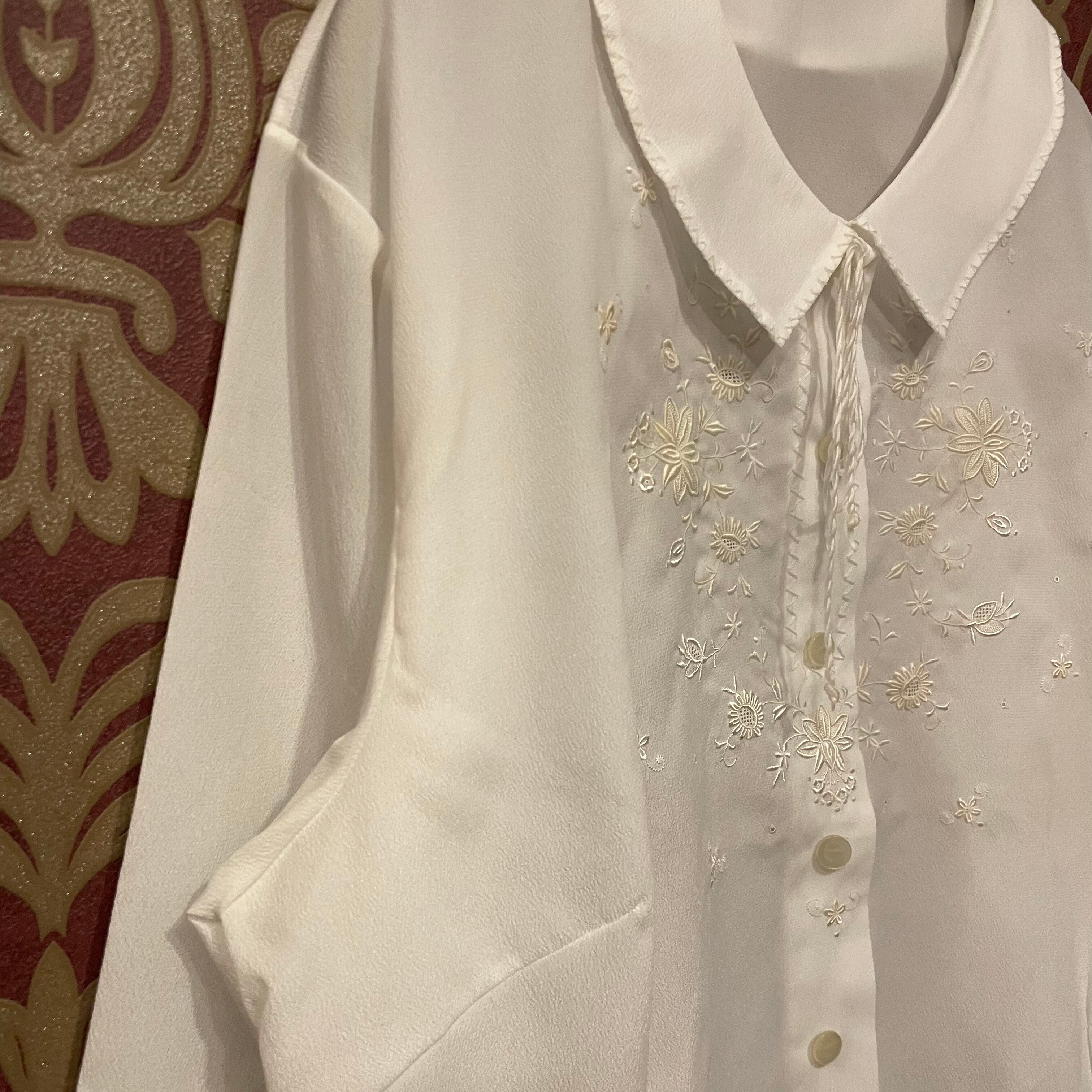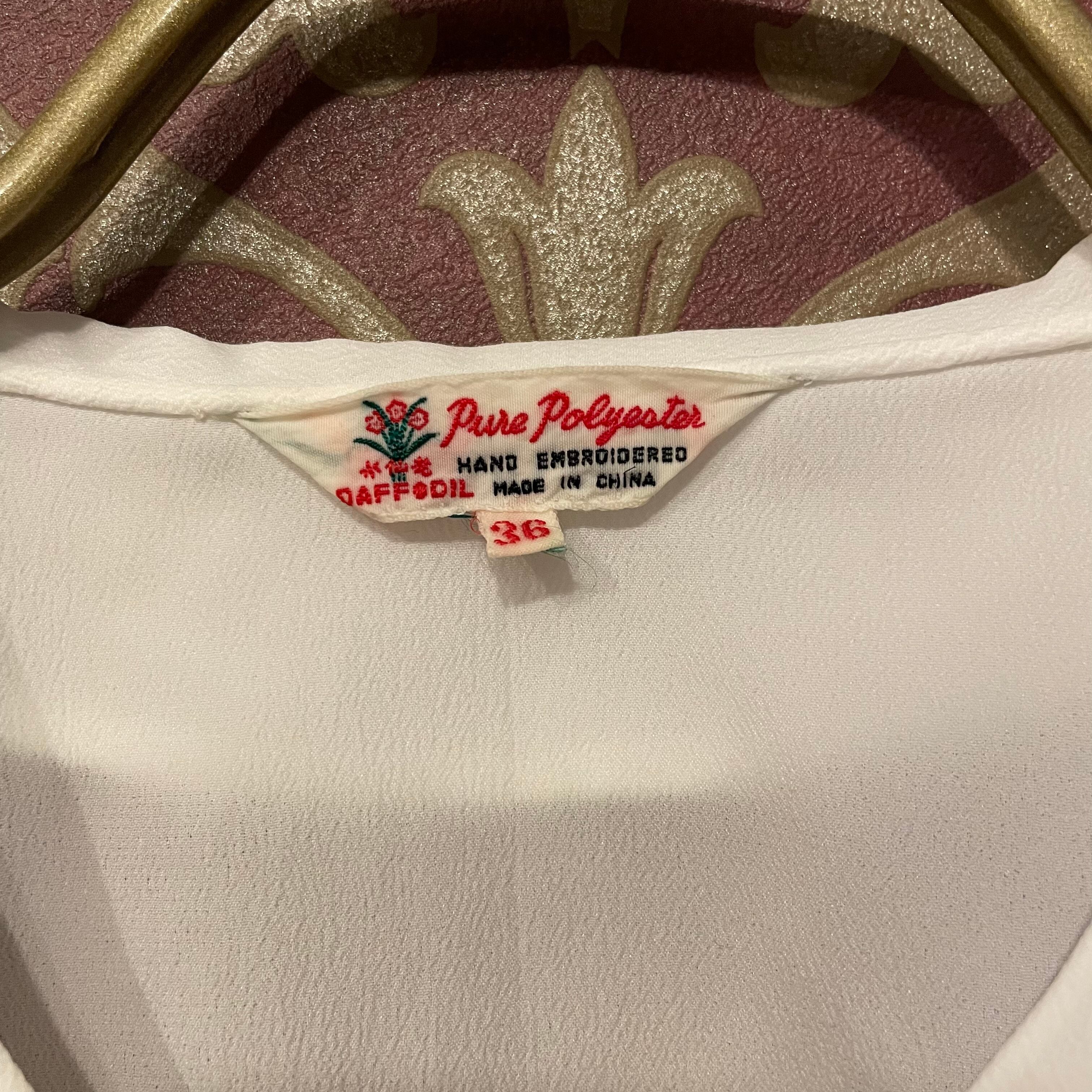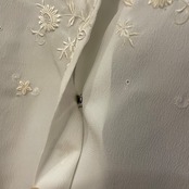 ピュアポリエステル(との記載あり)に細かい手刺繍が施された繊細で豪華な一着です。