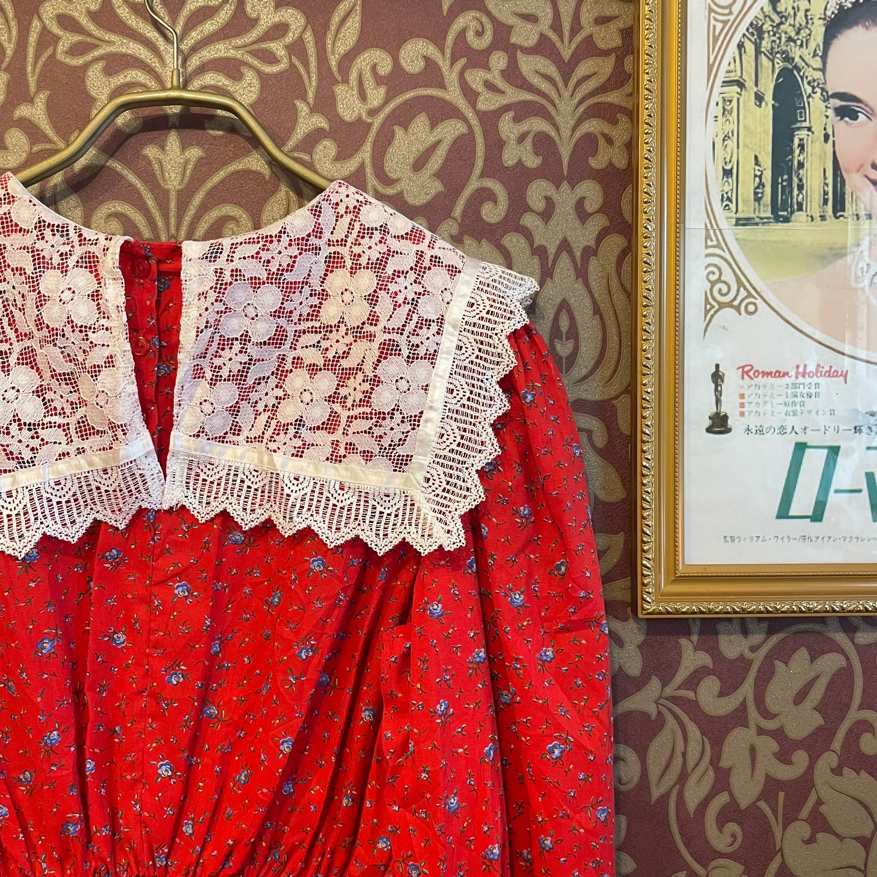 レースの大きな襟が素敵なカリフォルニアのヴィンテージワンピースです。