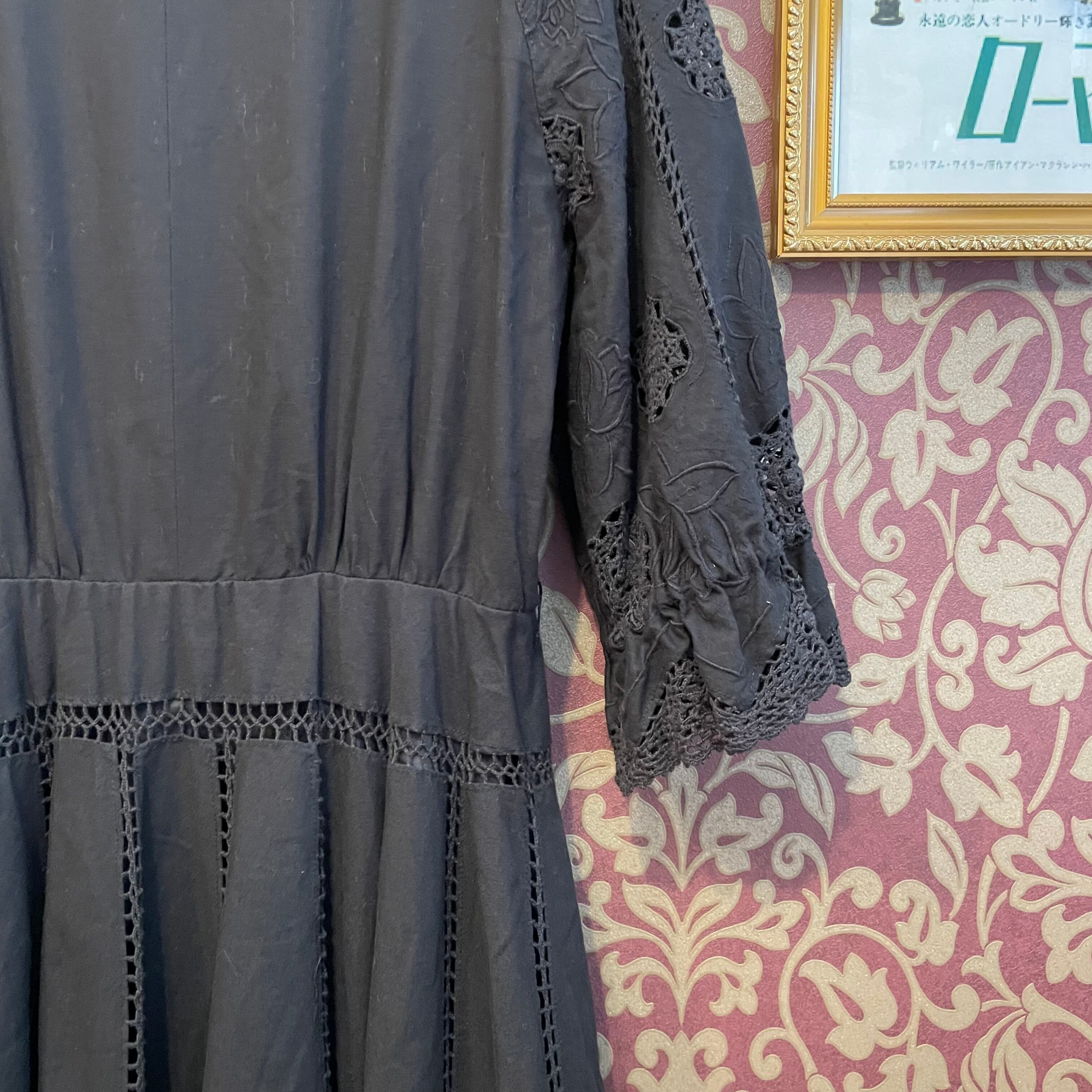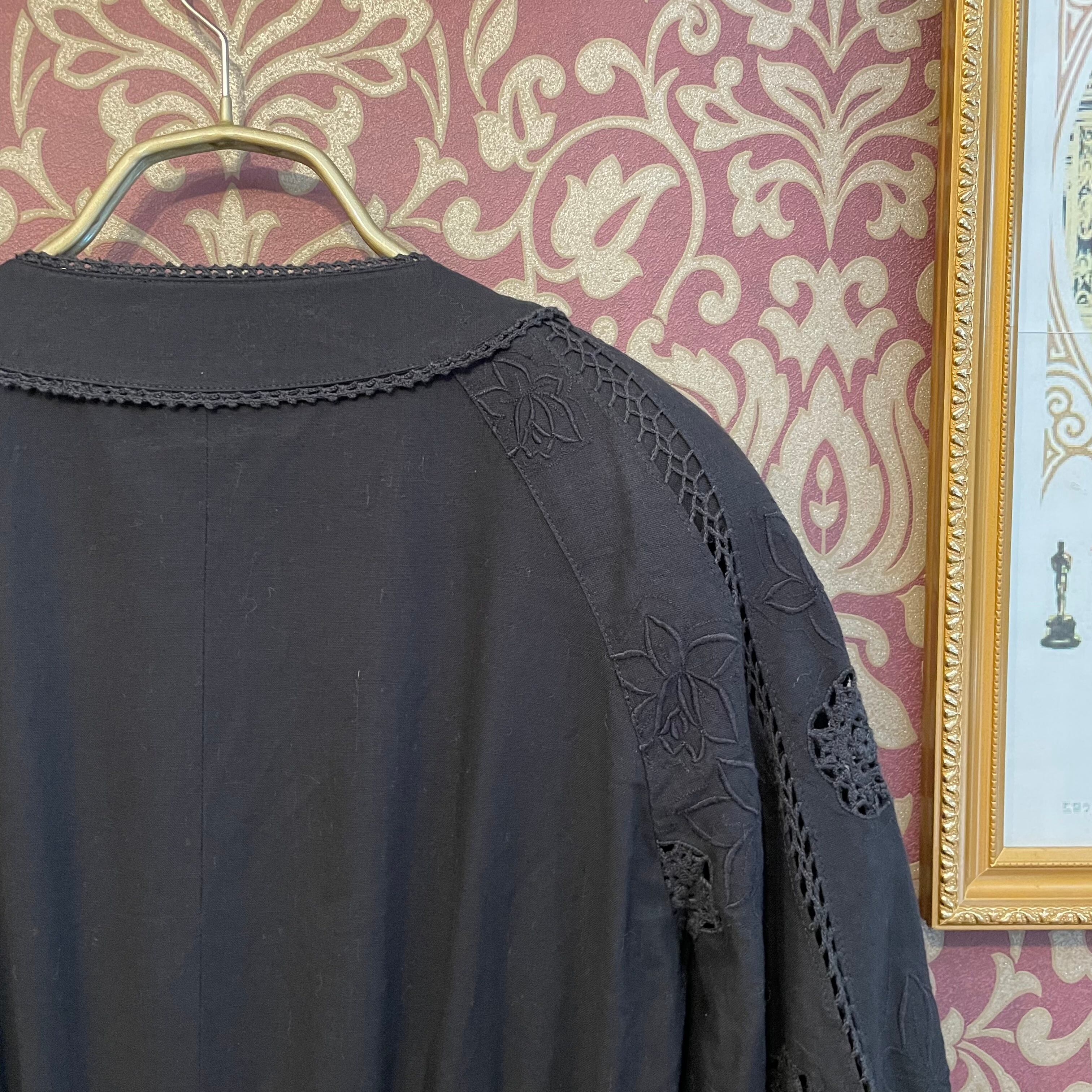 生地が上質なのはもちろん、繊細で控えめな刺繍と全体に広がったクロシェレースでこの上なく贅沢な一着です。