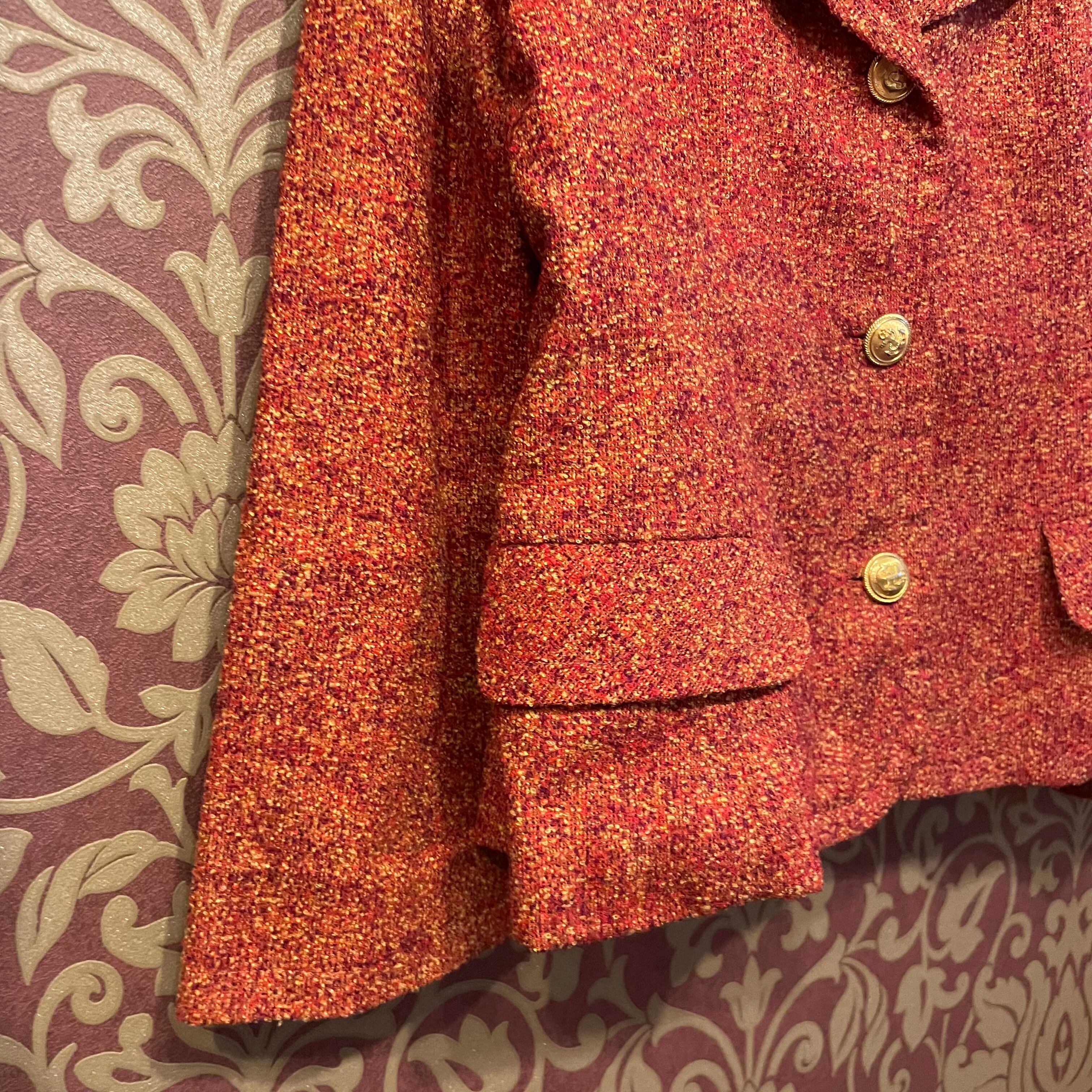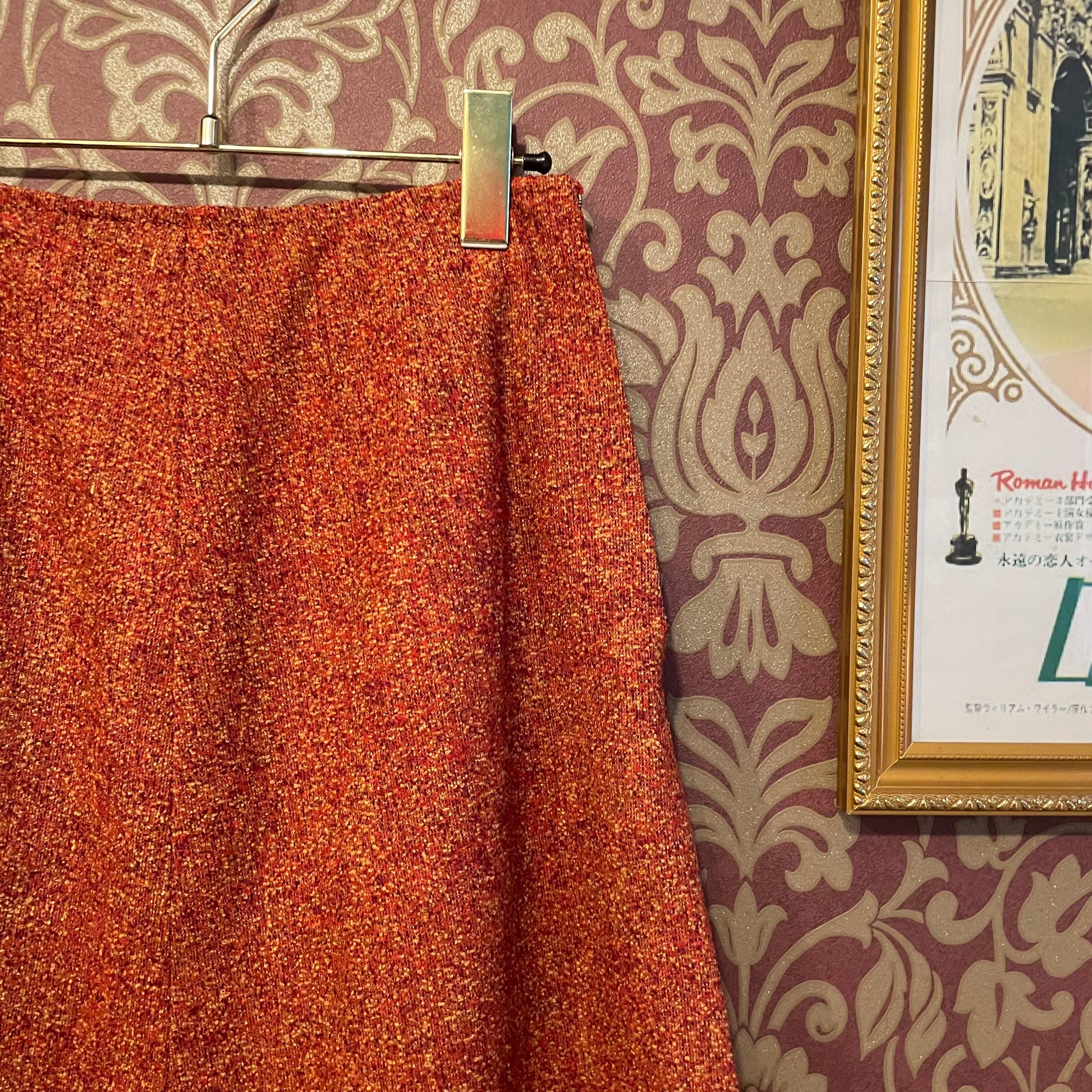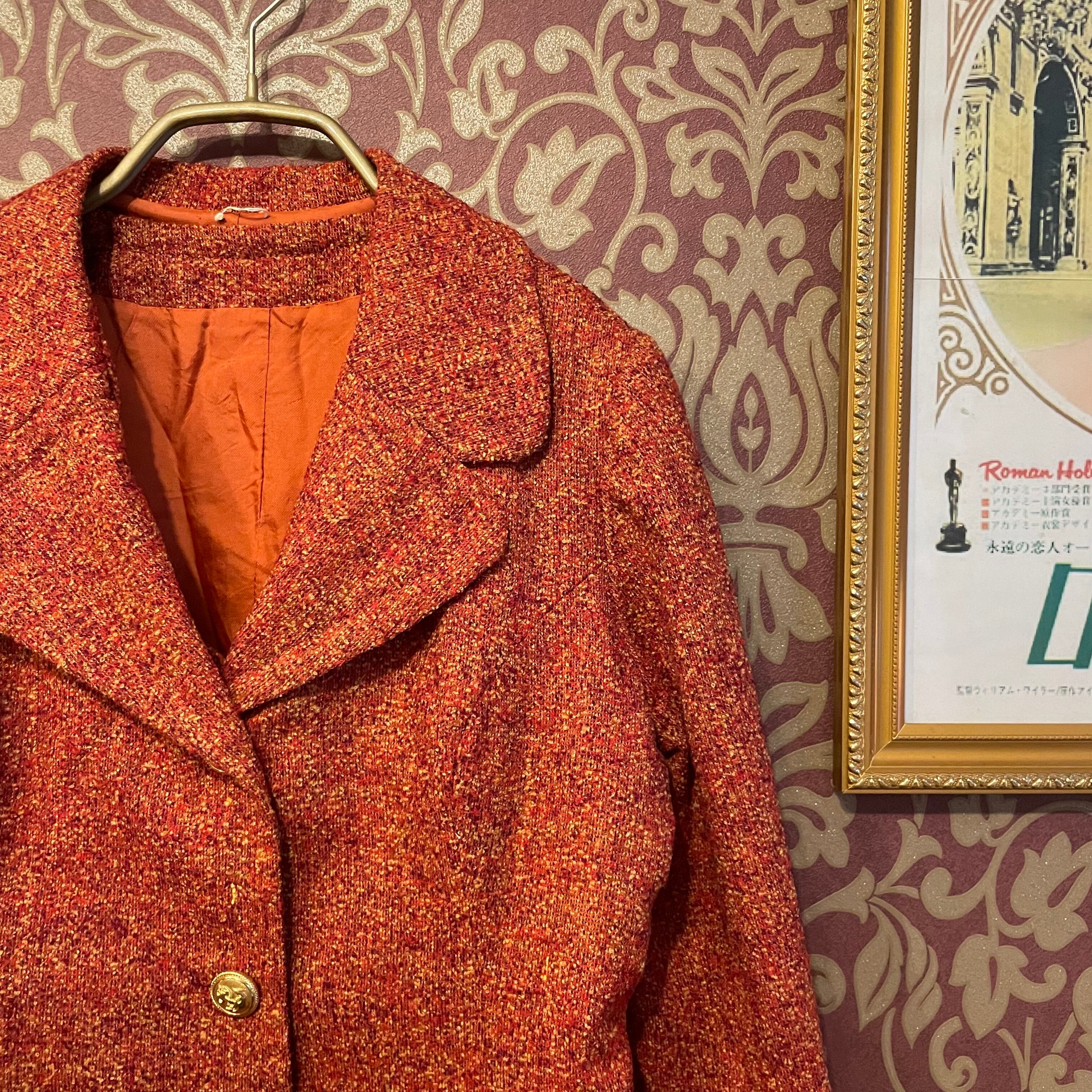 赤と茶色とベージュの糸で編まれたレトロな生地が使われていてヴィンテージならではのディテールをお楽しみ頂けます。