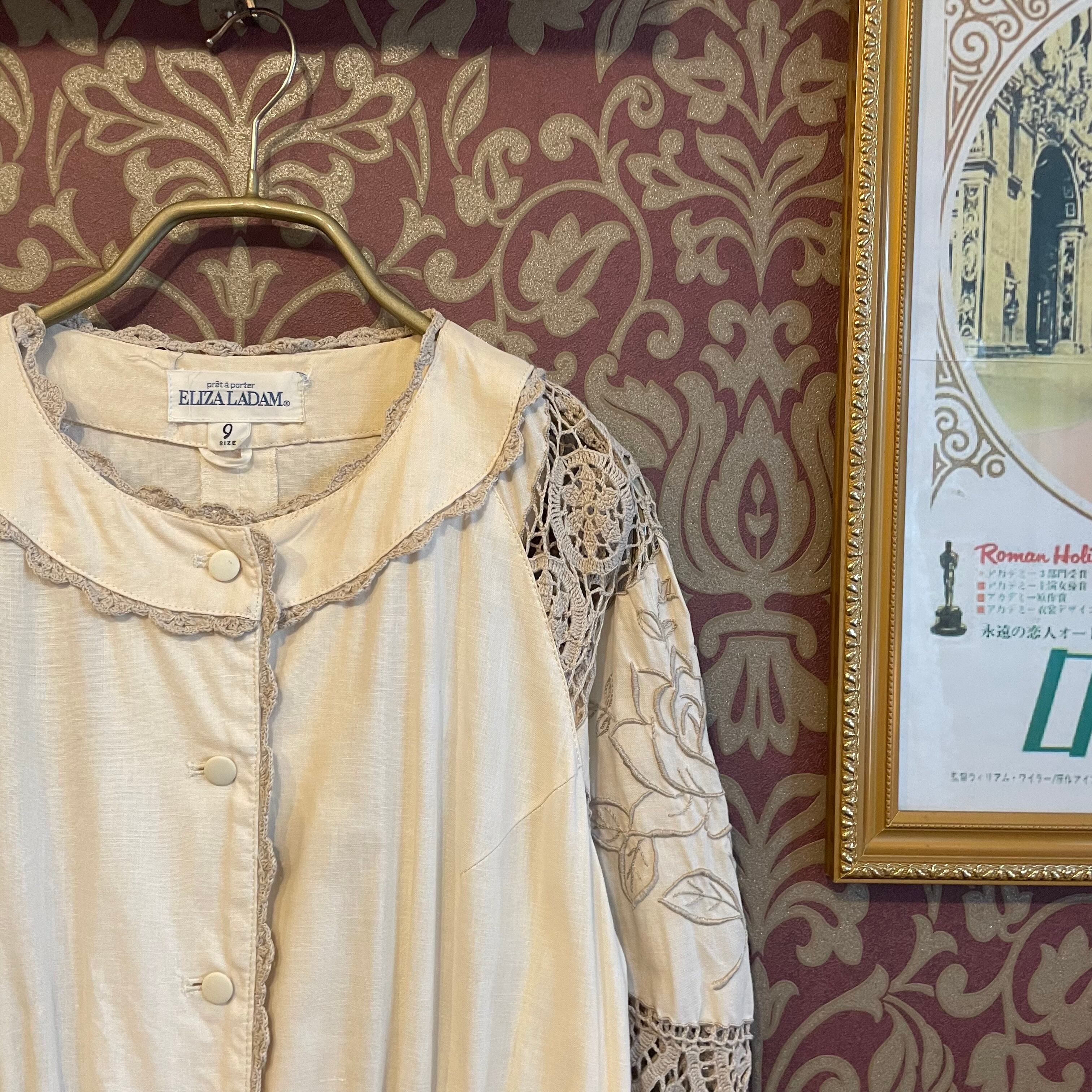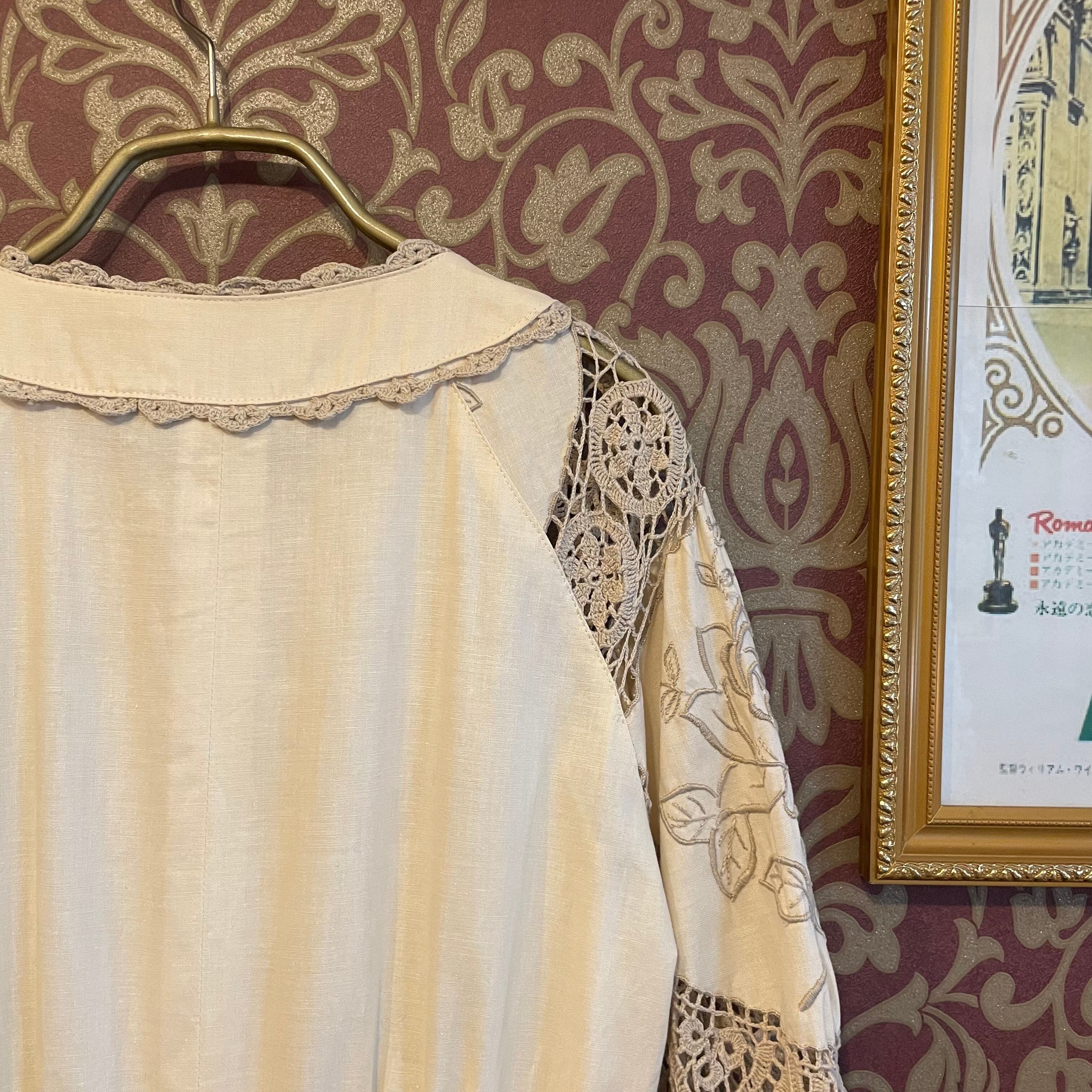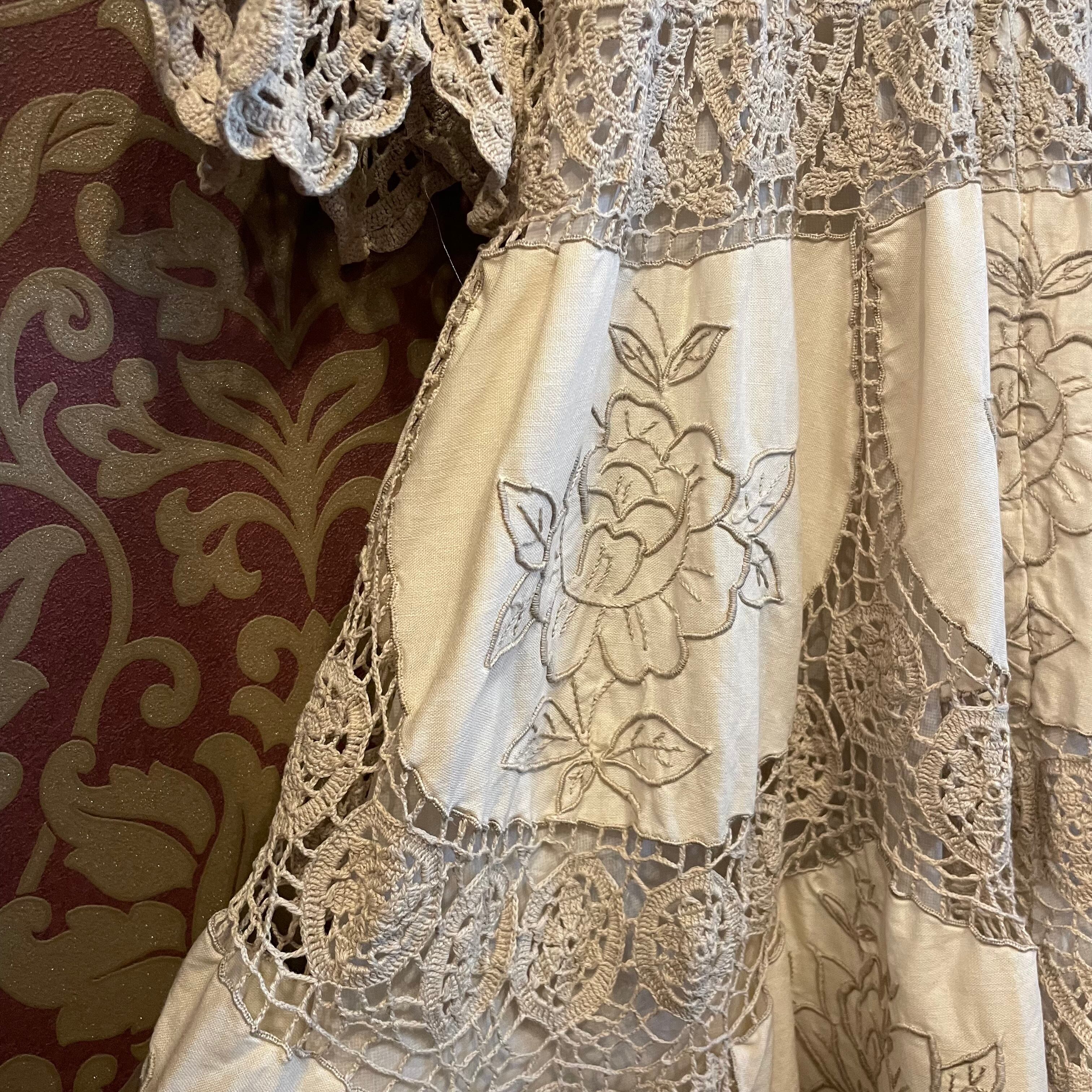 アンティーク風の繊細でゴージャスな刺繍とかぎ針編みのドレスです。