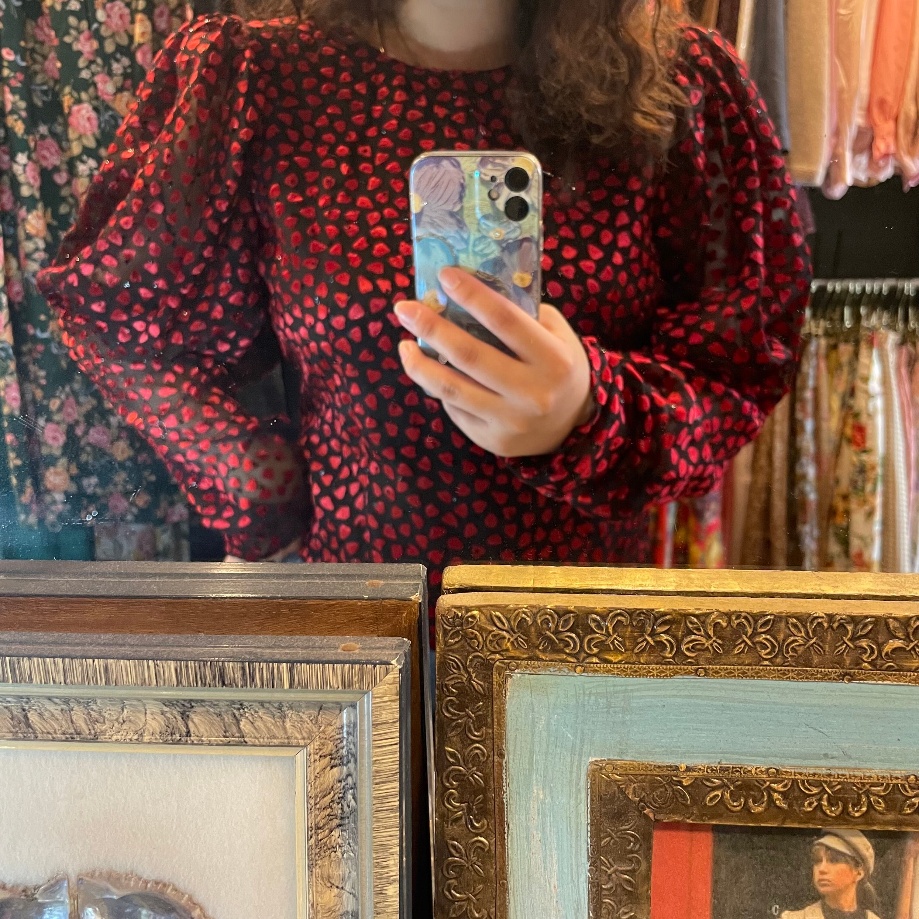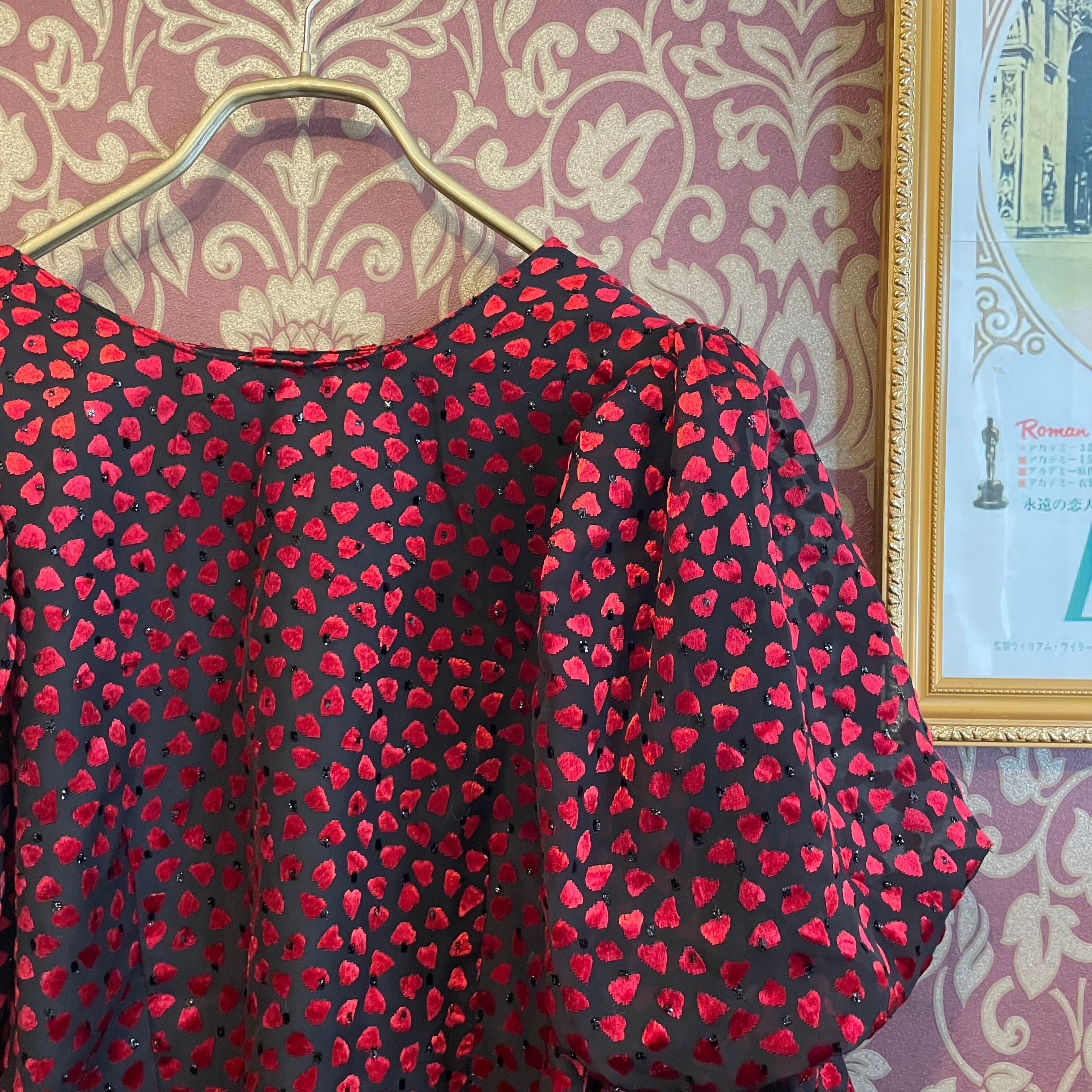 ハートのような形のモコモコしたベロアのジャガードのブラウスです。