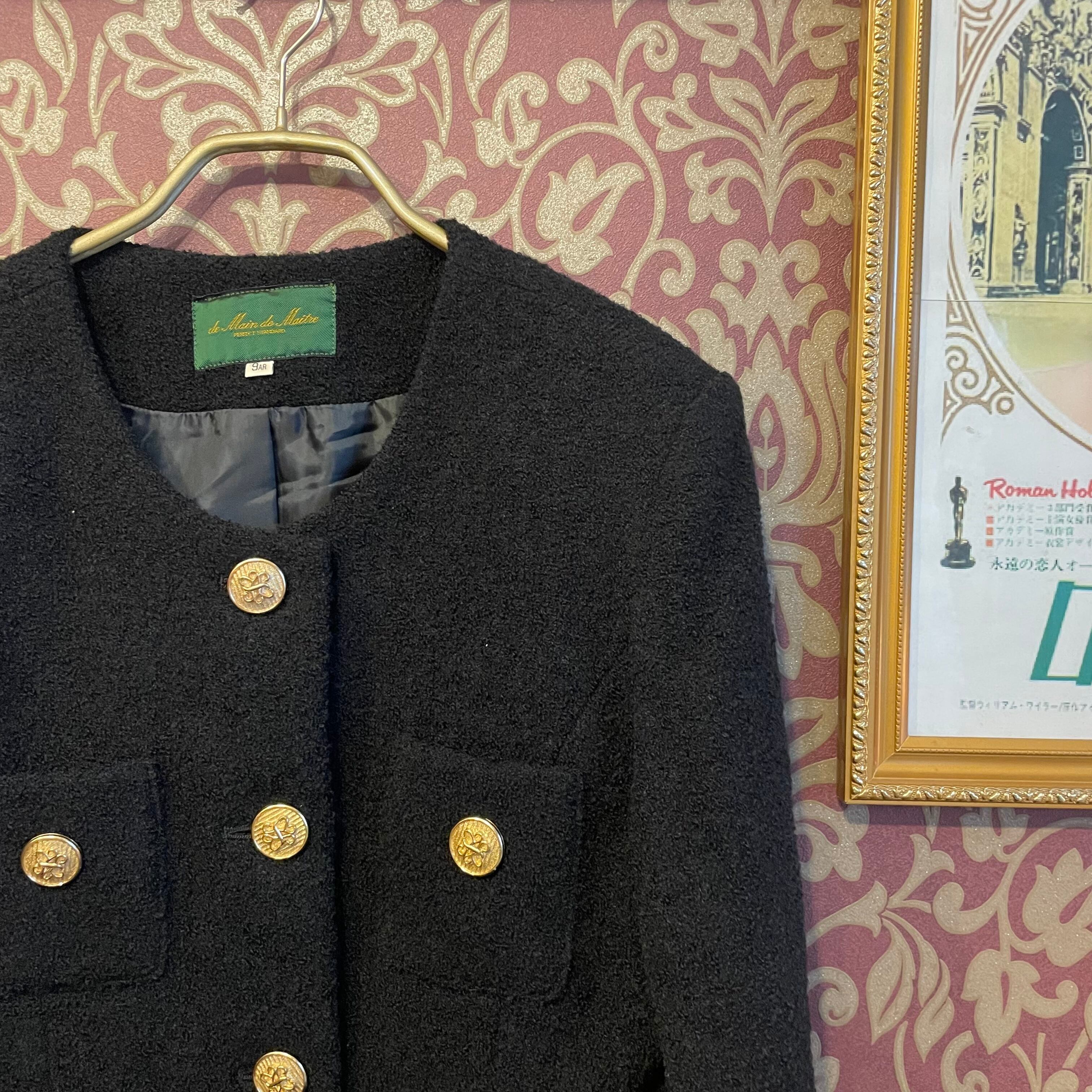 ジャケットは黒地にゴールドのボタンが映え、エレガントで高級感のあるデザインです。
