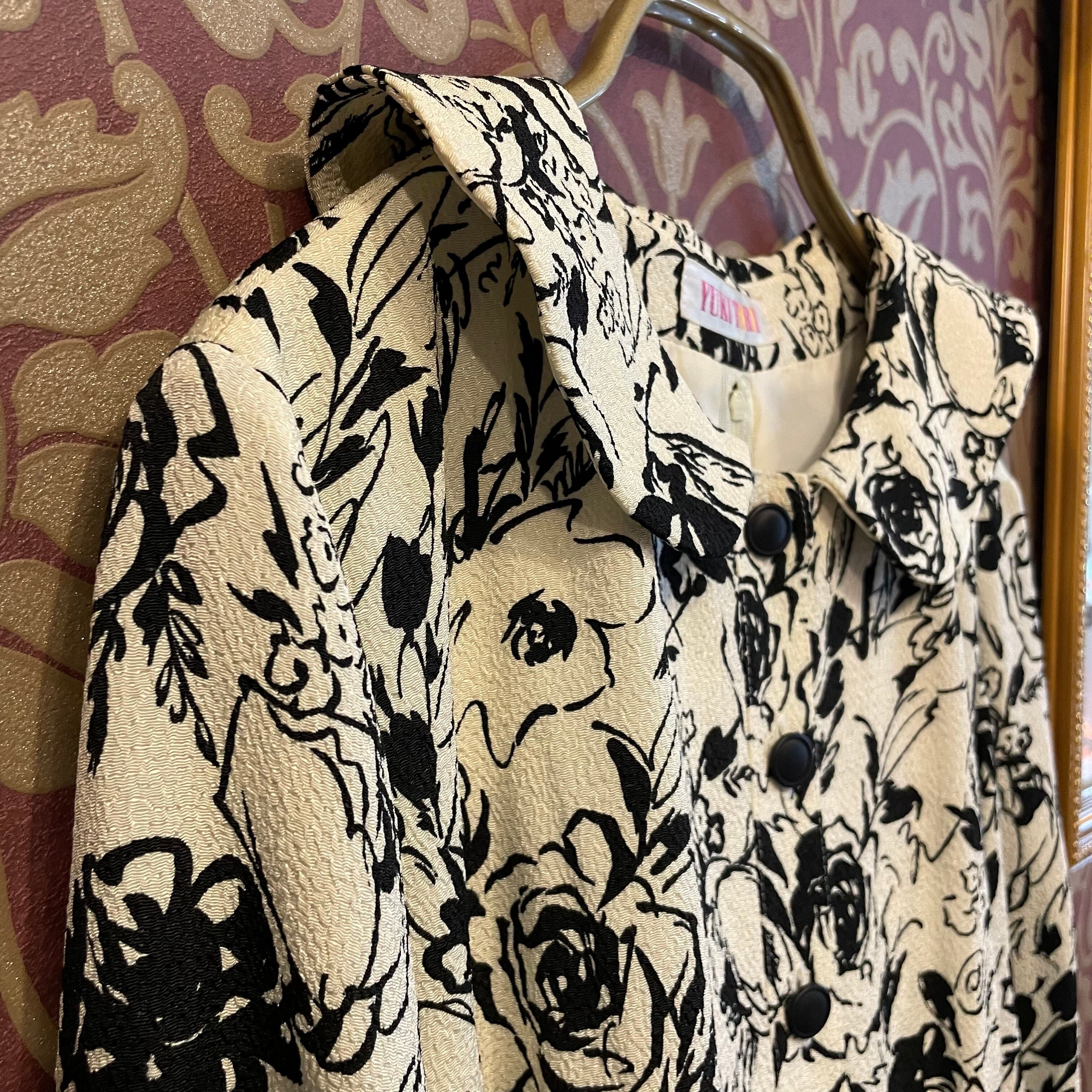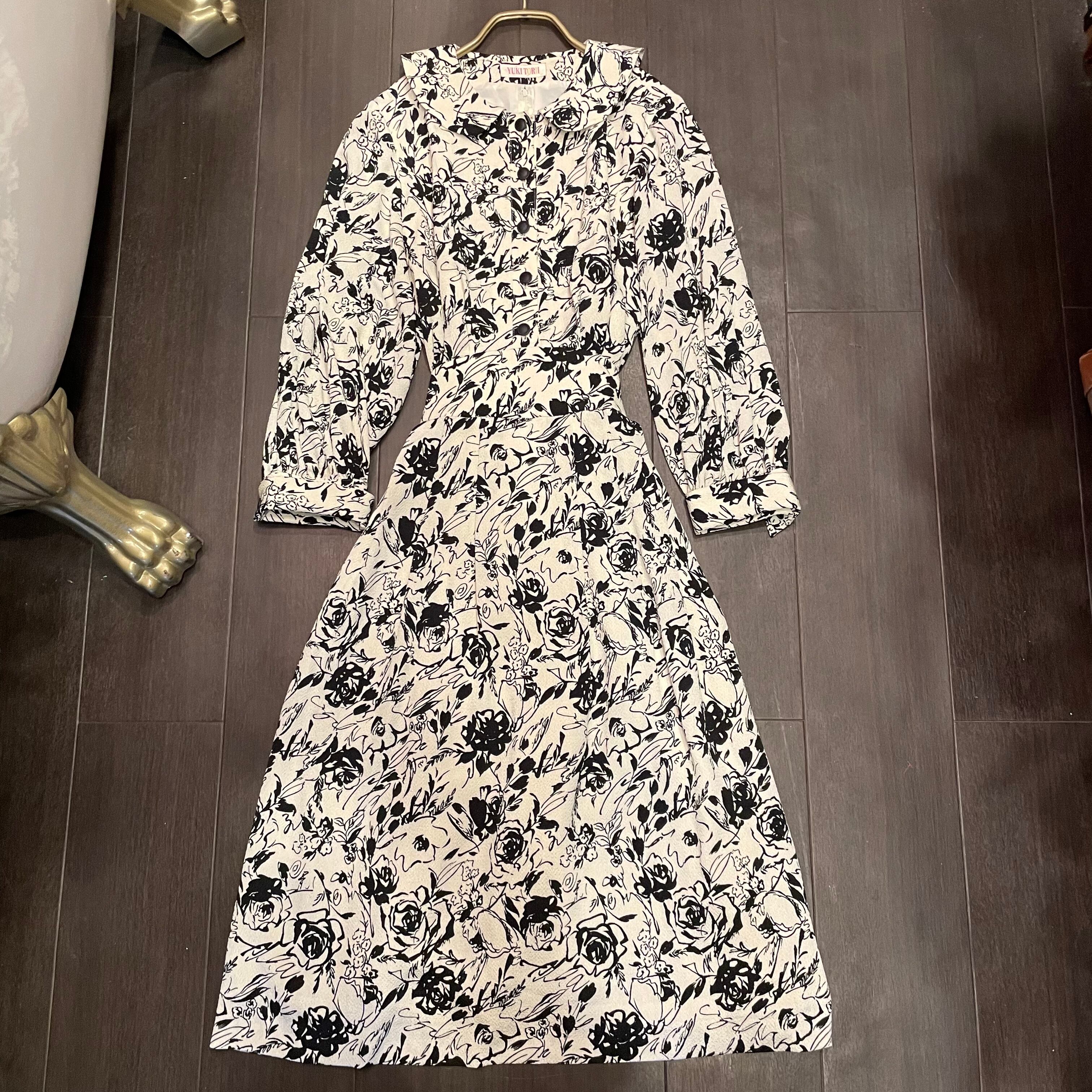 ユキトリイのモノトーンのバラ柄ワンピースです。