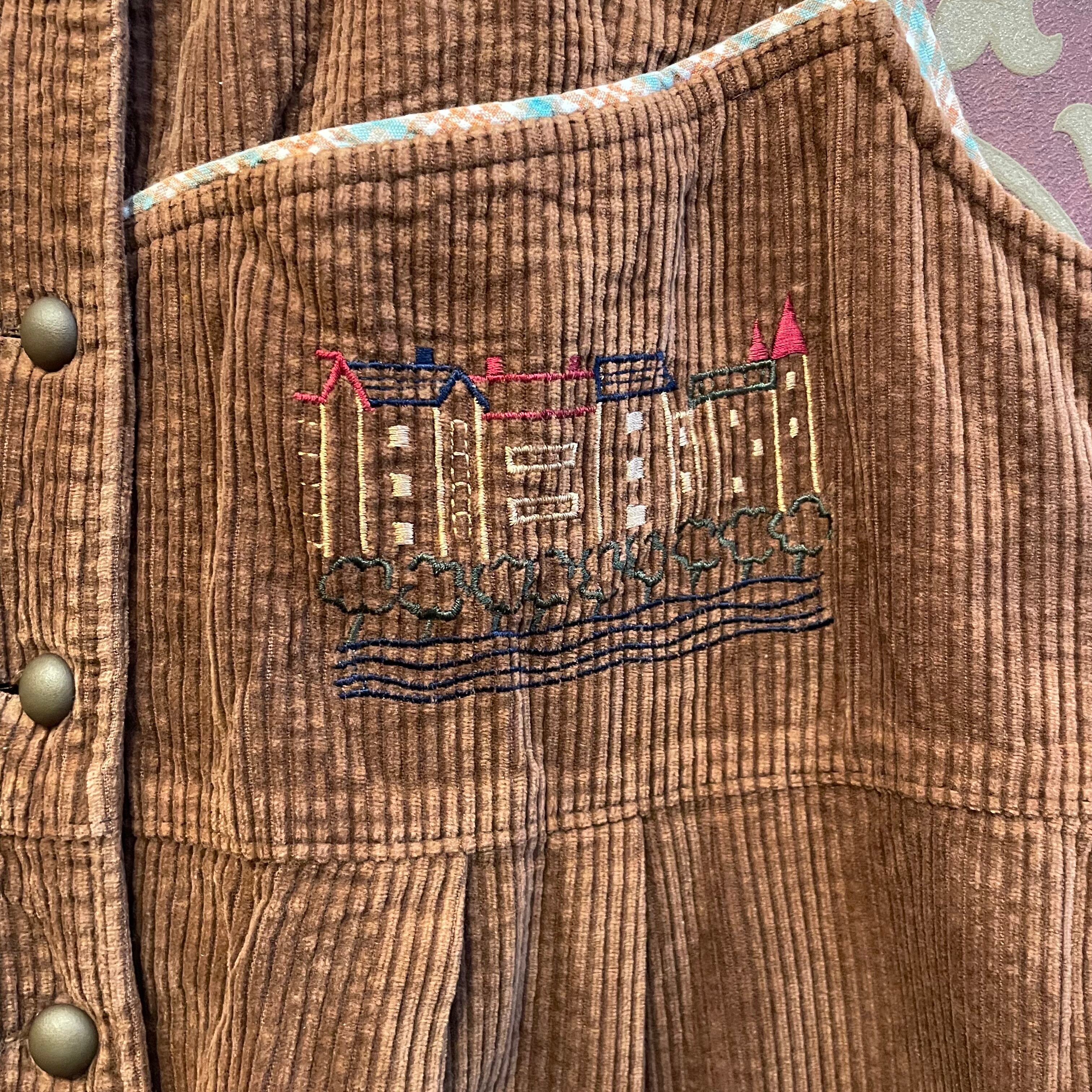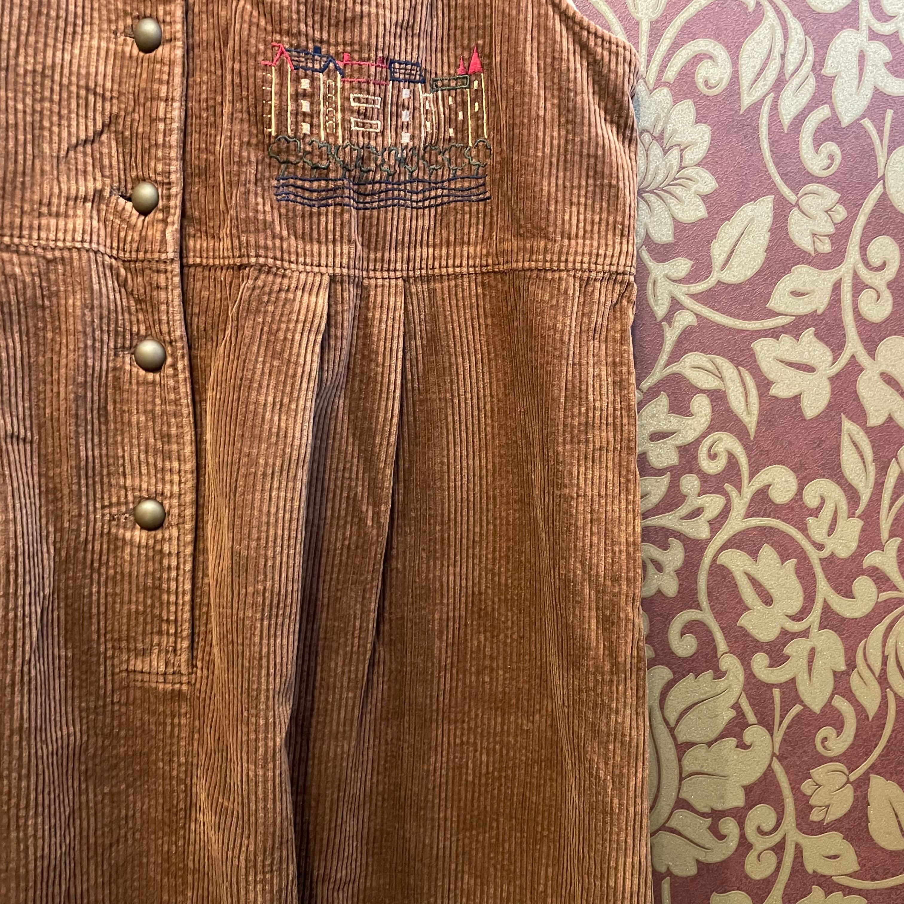 胸元に大きめのポケットが付いていて、刺繍で装飾されています。