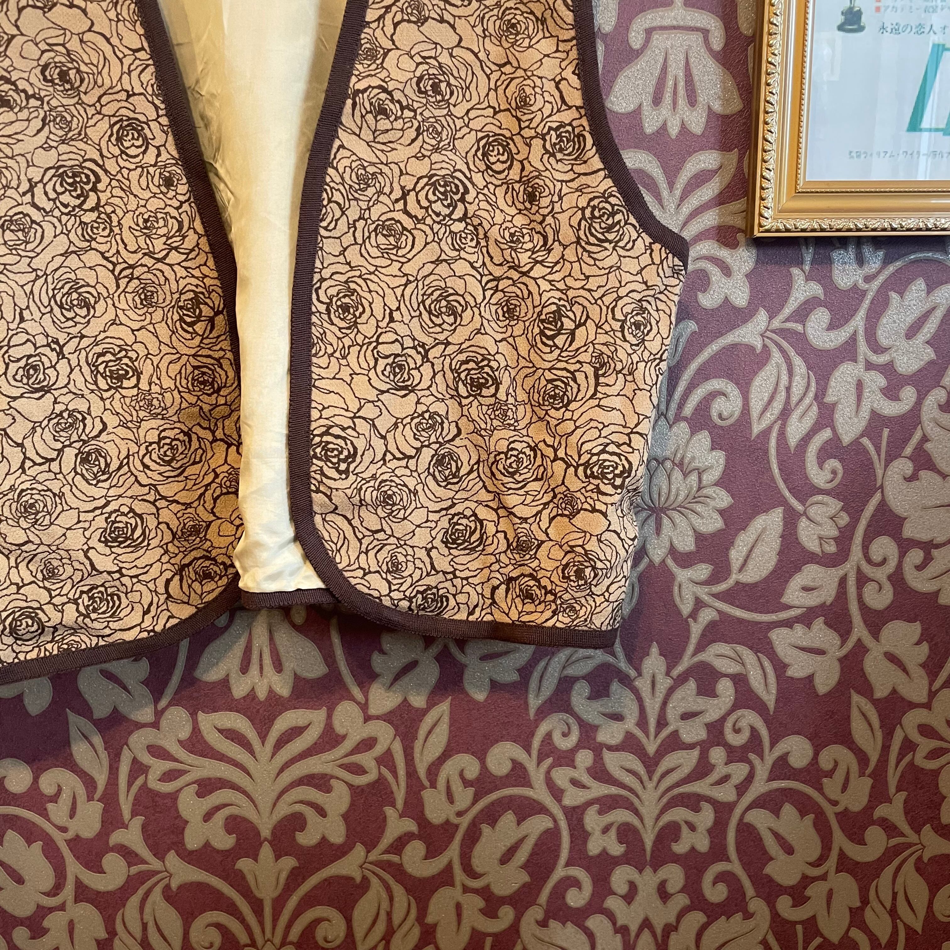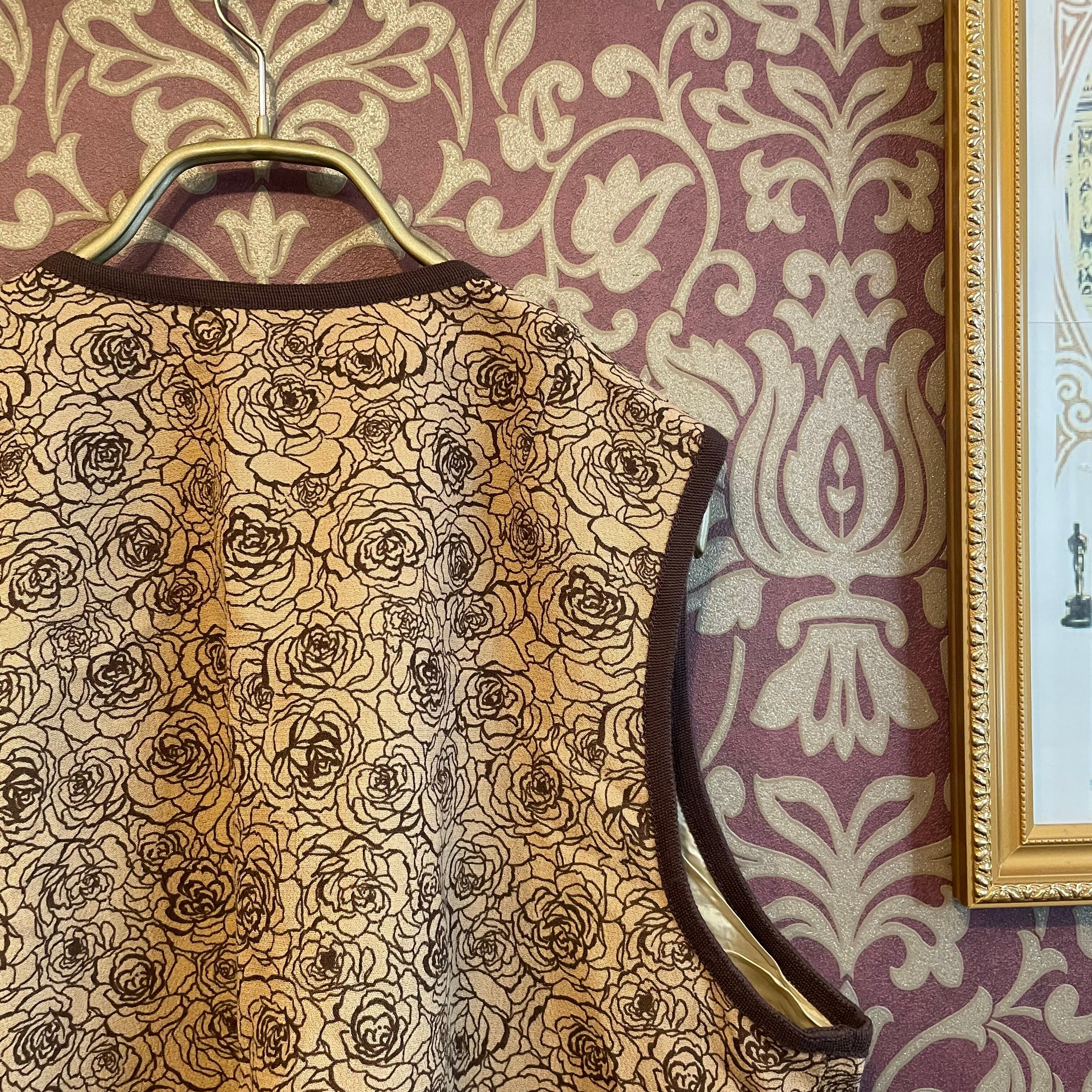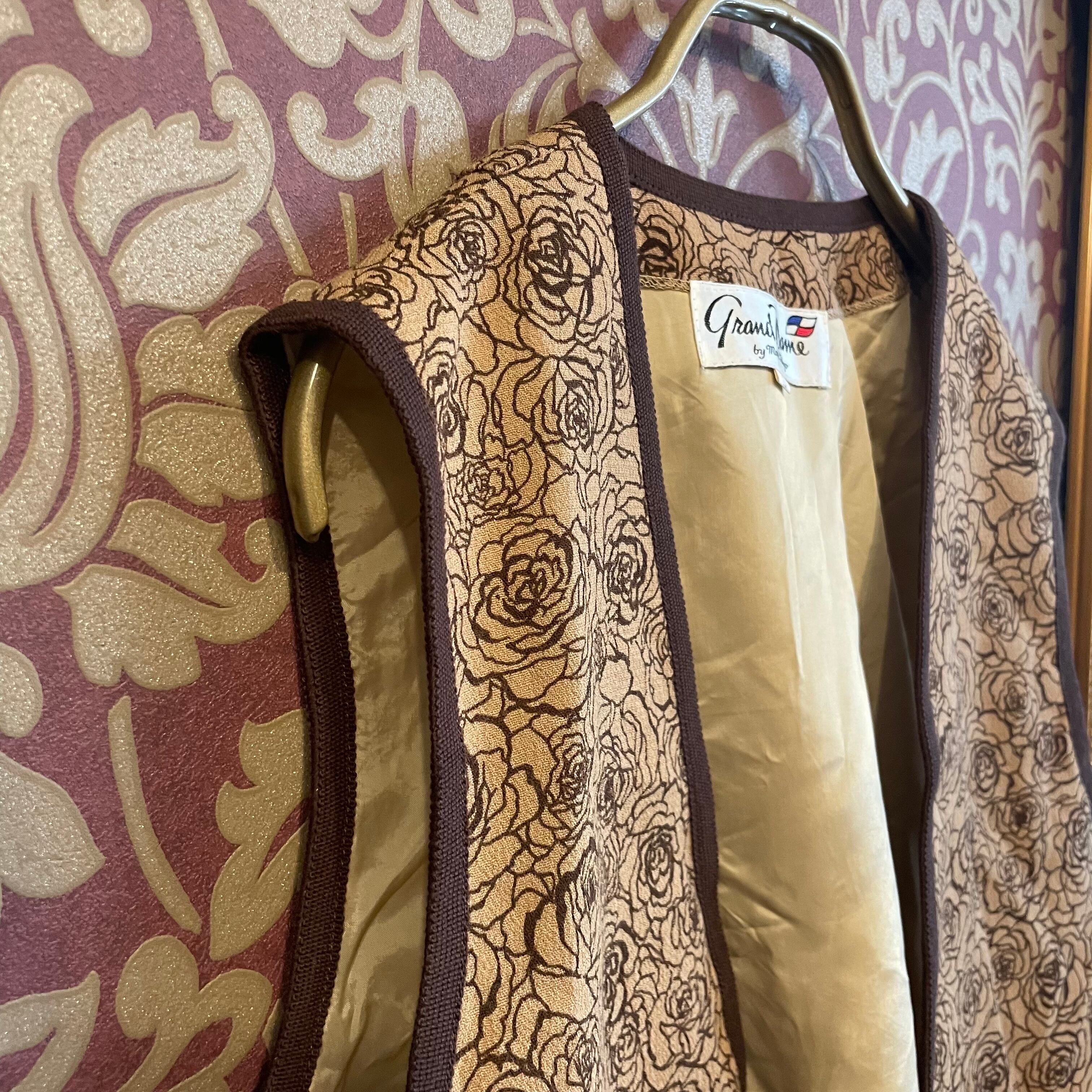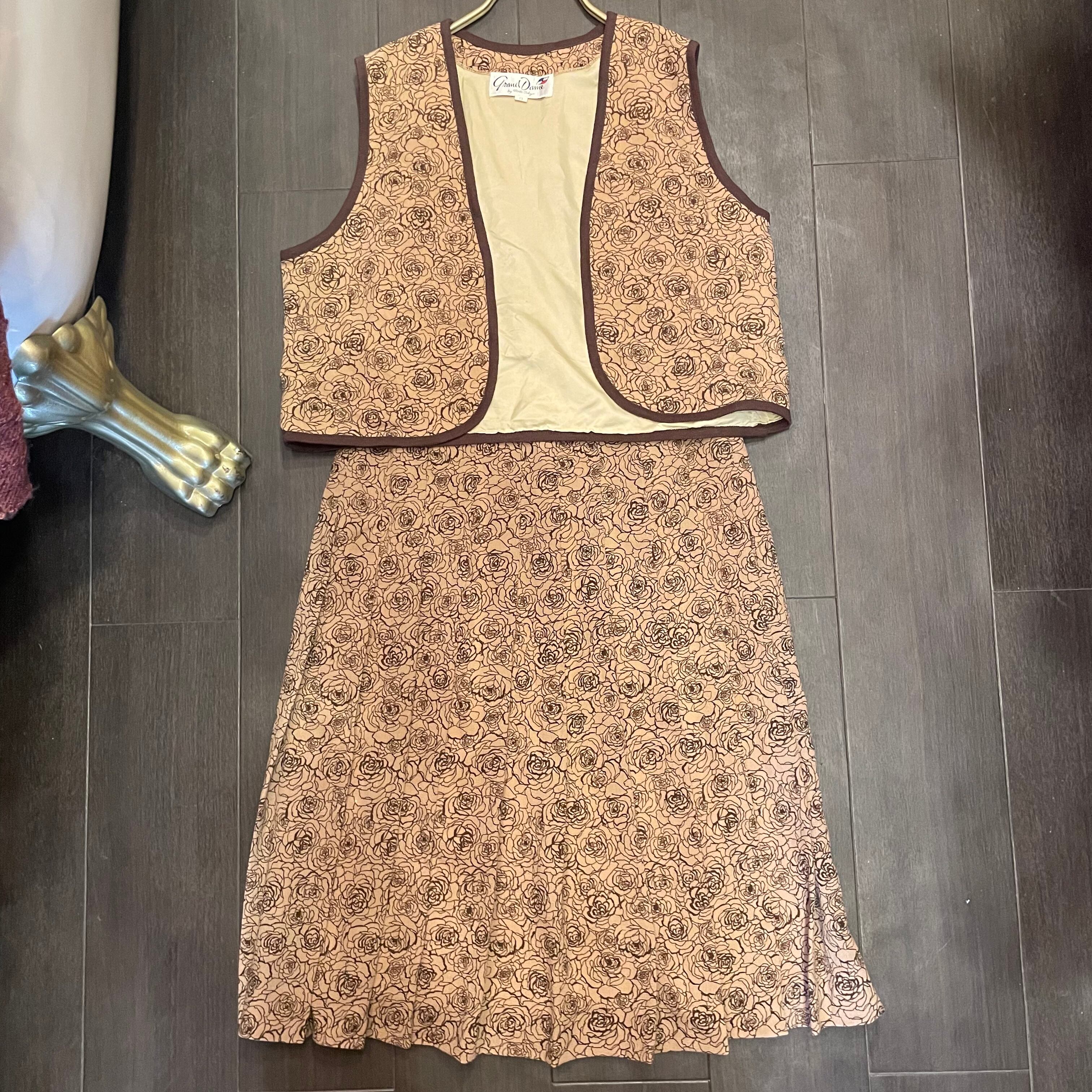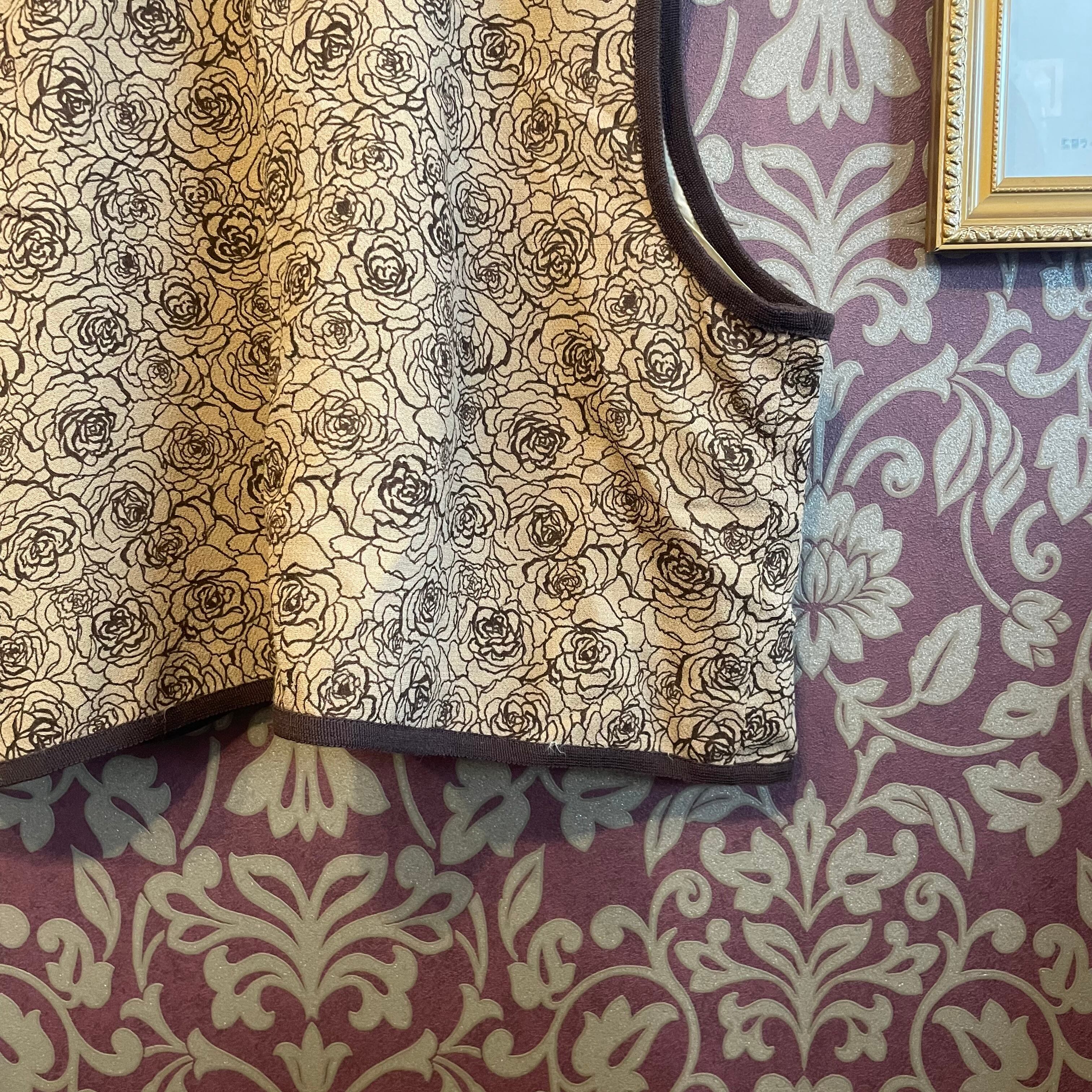 ベージュ×茶色のバラ柄セットアップです。