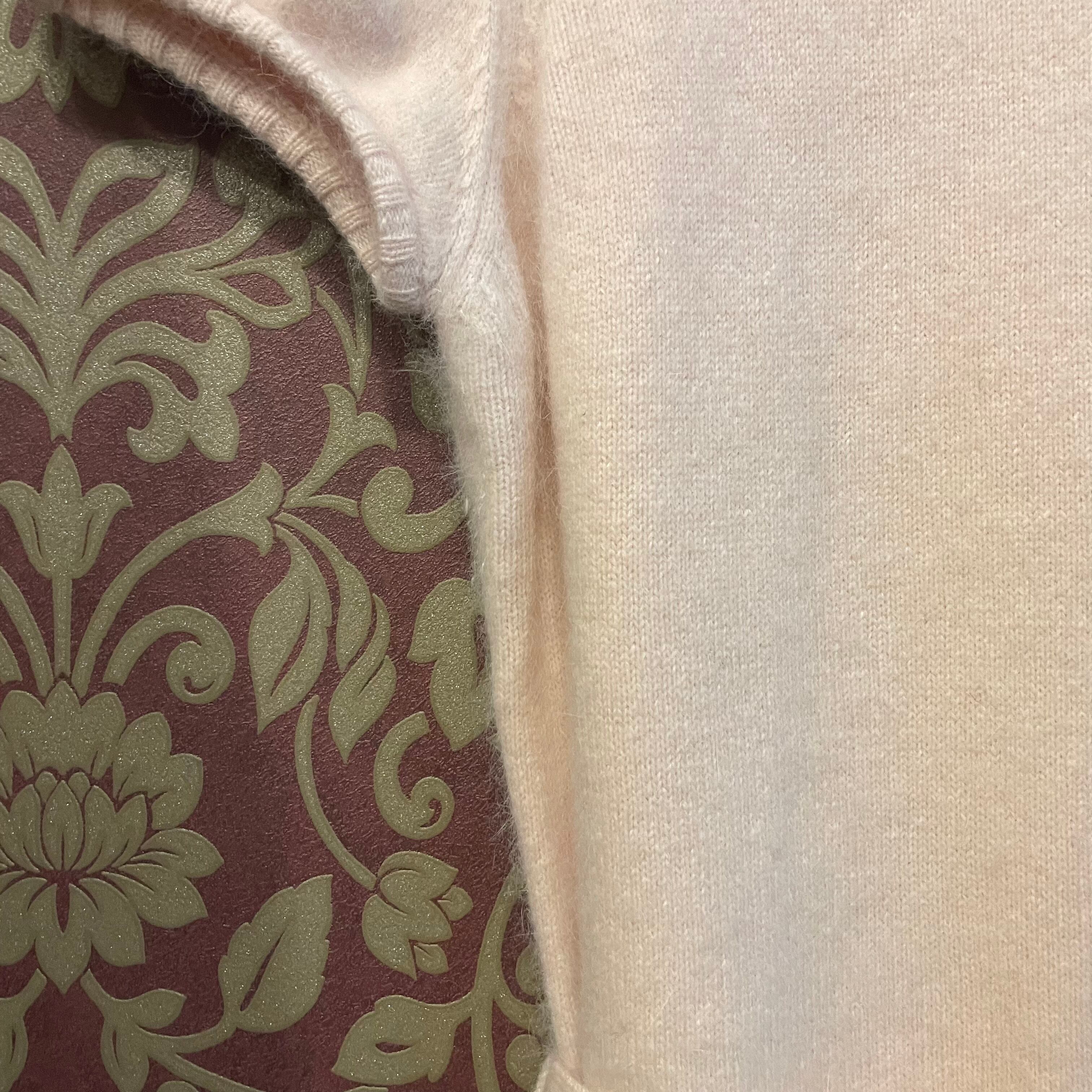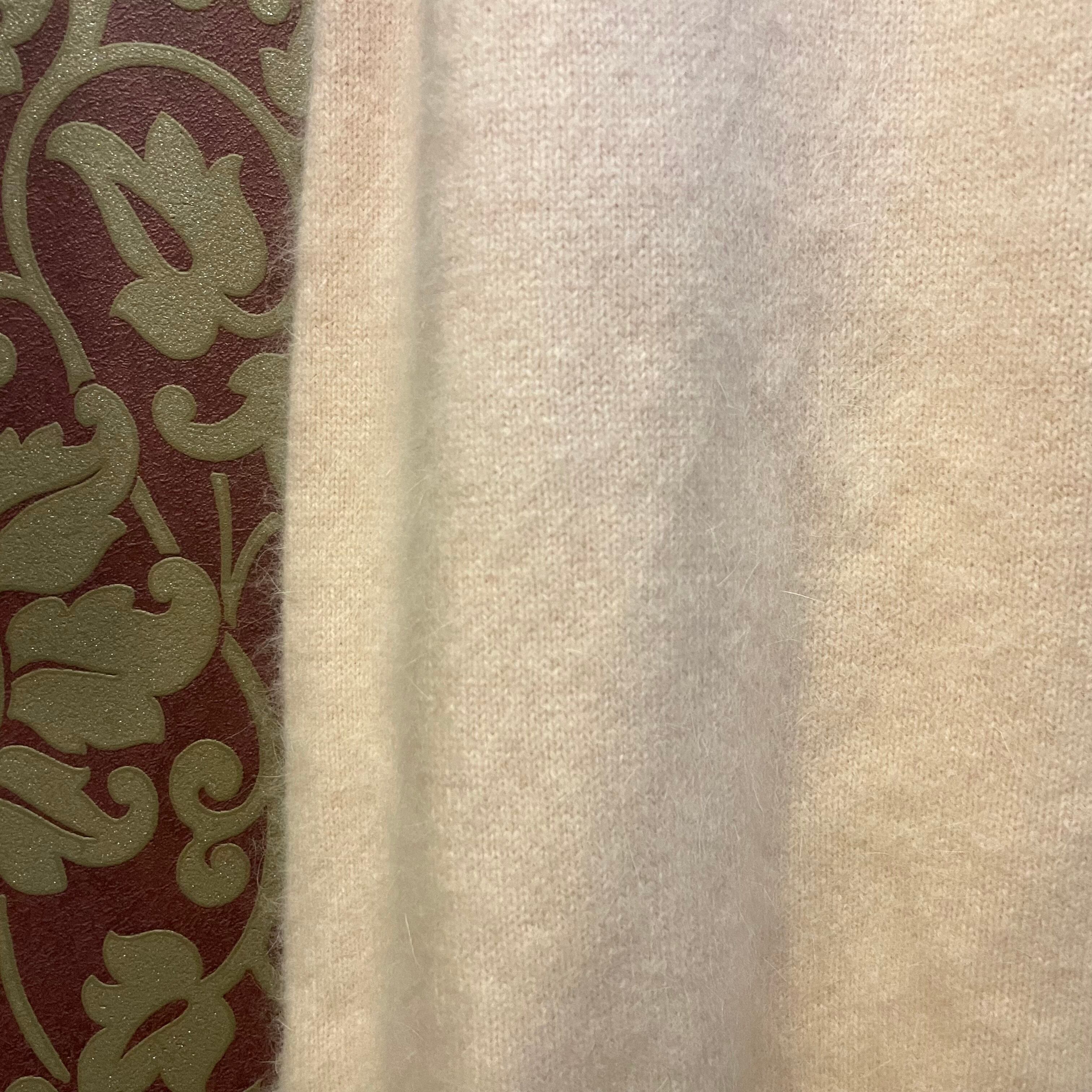 ベビーピンクの可愛らしいカラーとアンゴラならではの軽く柔らかな肌触りが素晴らしい一着です。