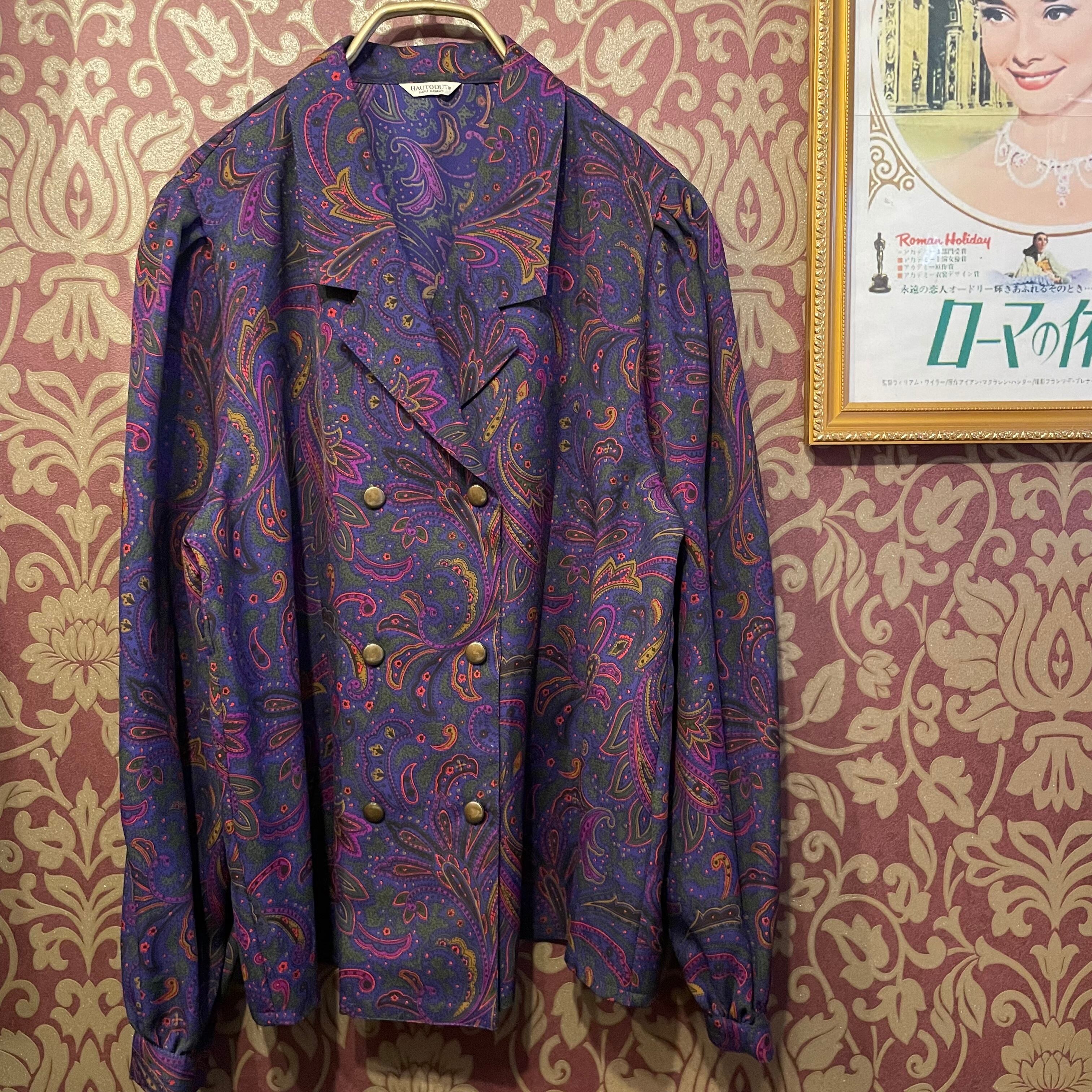 バイオレンスでサイケデリックなカラーのペイズリー柄ブラウスです。