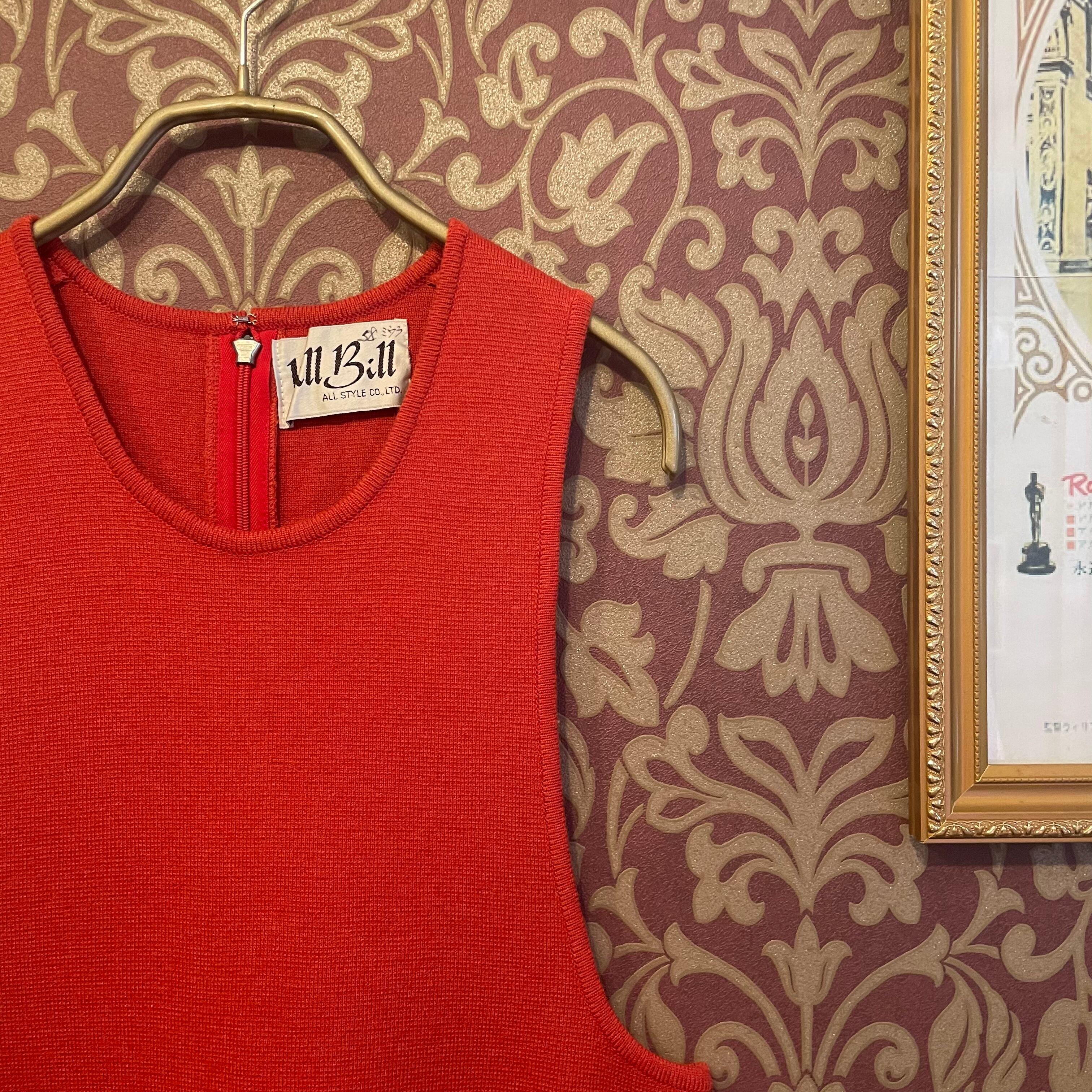 ミニ丈が流行した1960年代の真っ赤なニットのミニワンピースです。