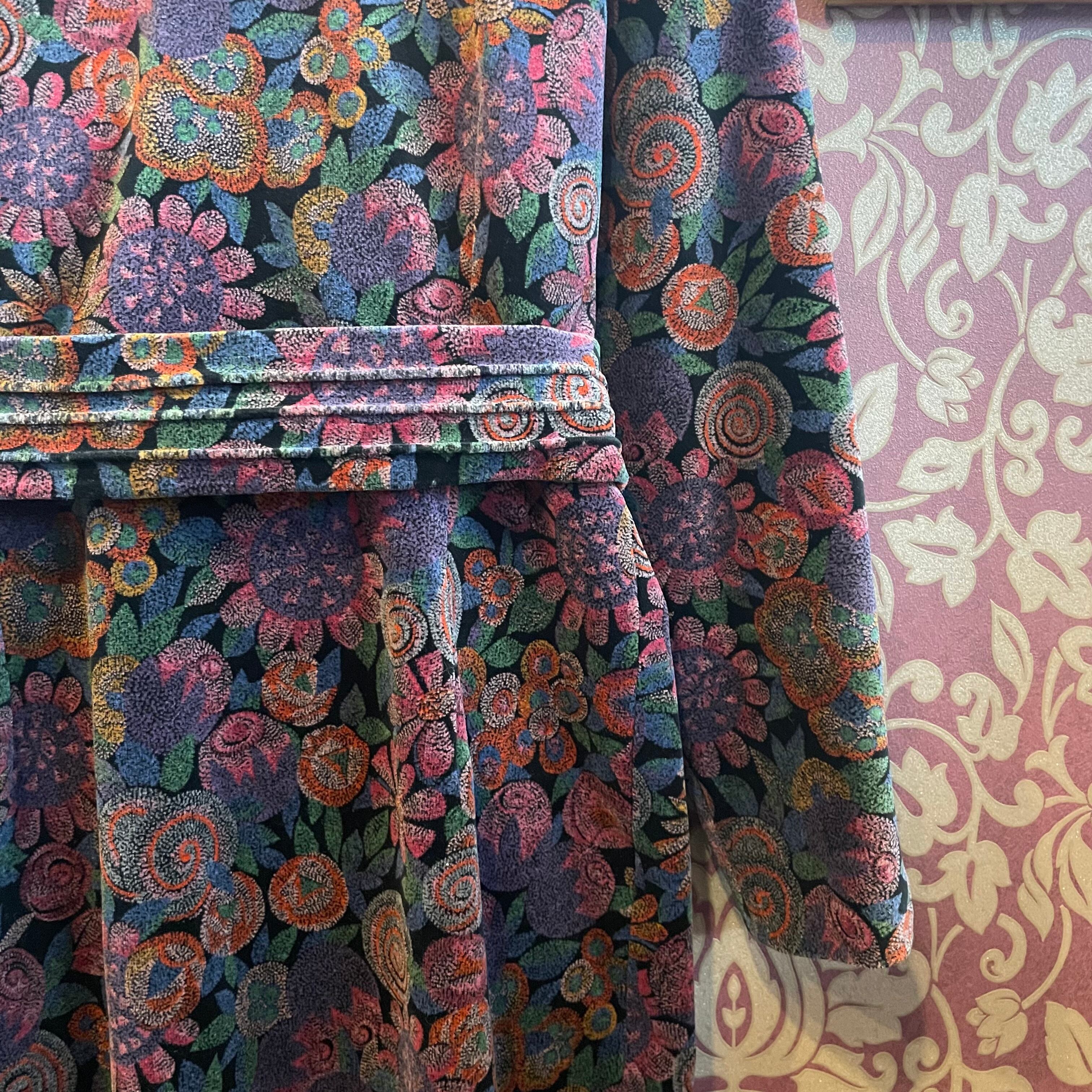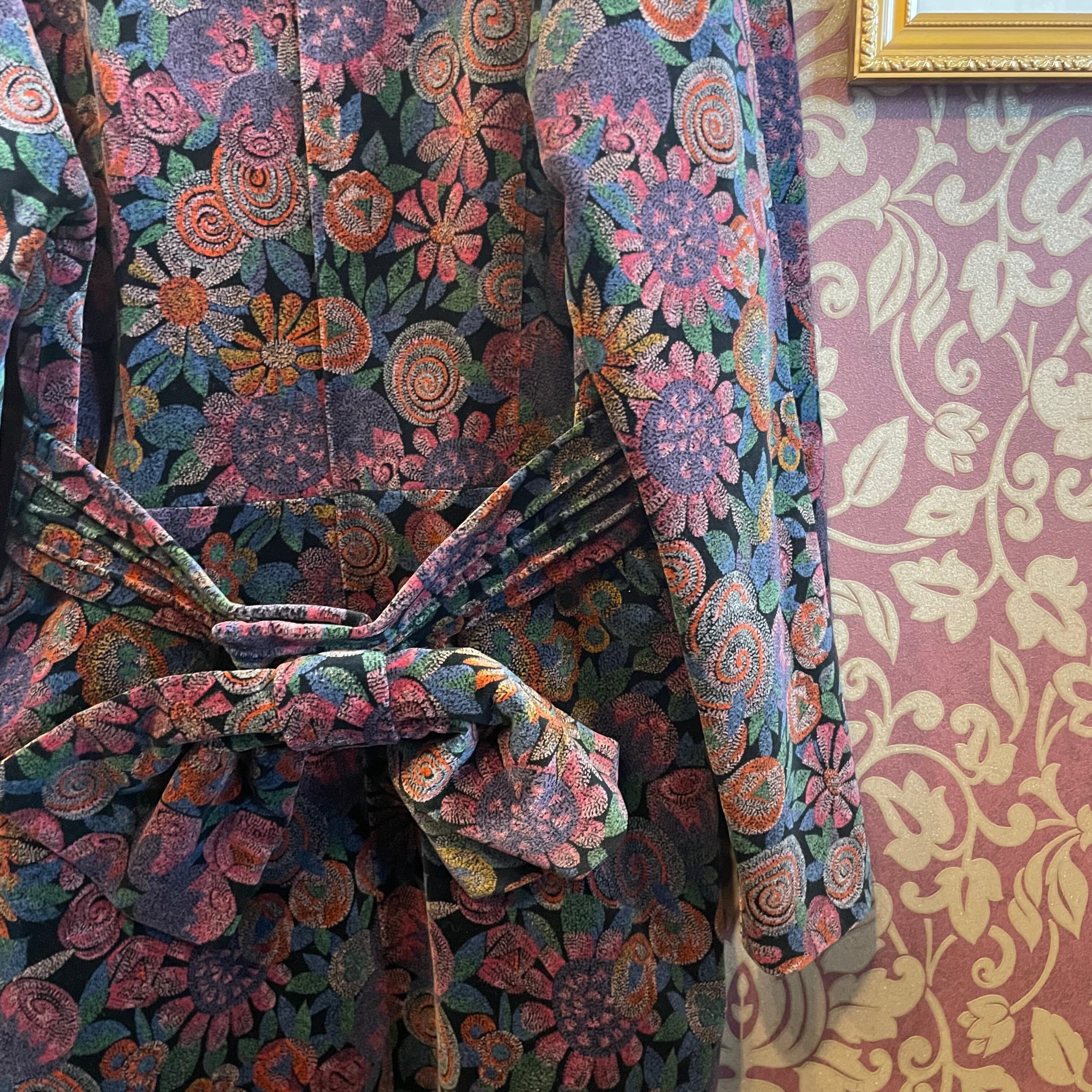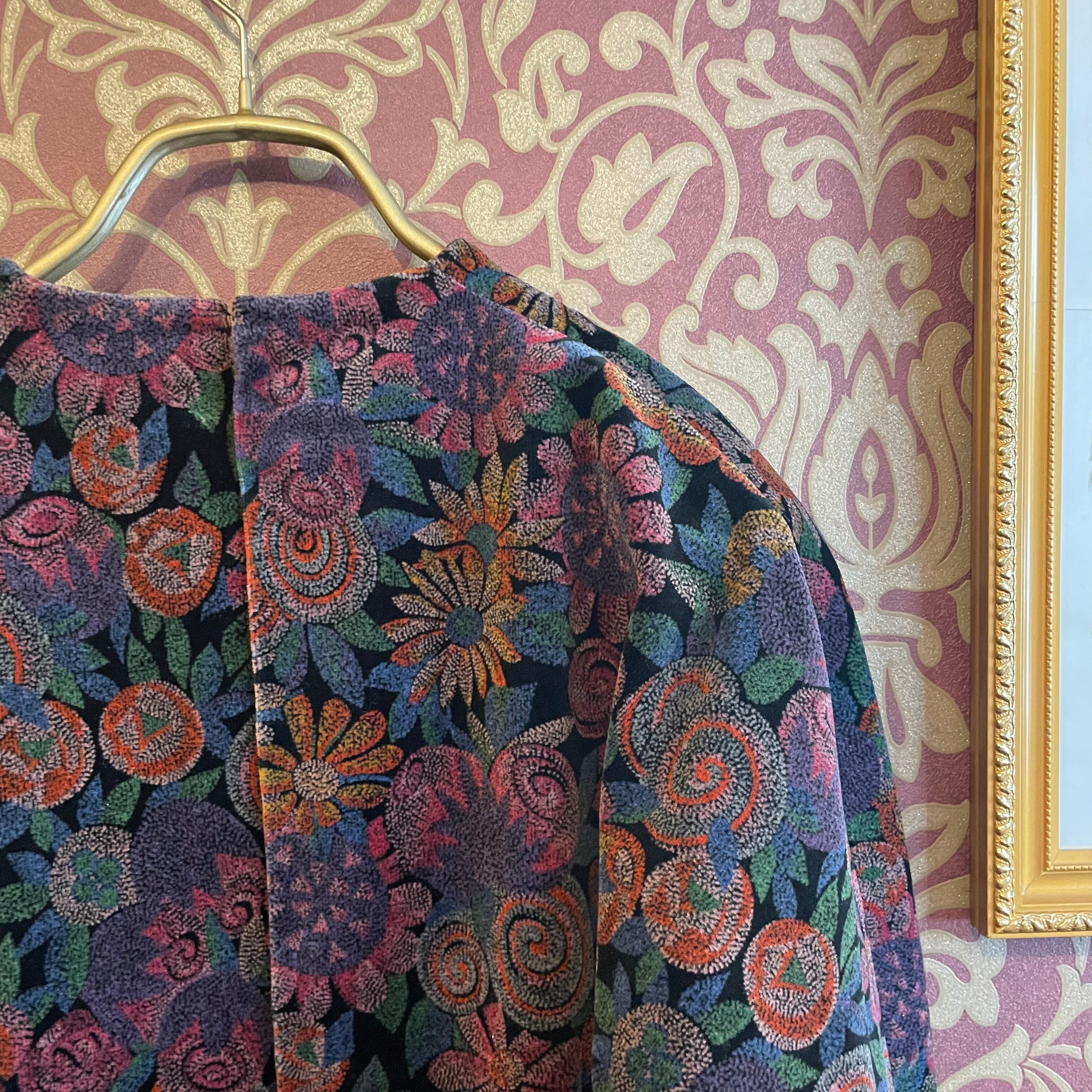 ダークなカラーの花柄が印象的なベルベットのワンピースです。