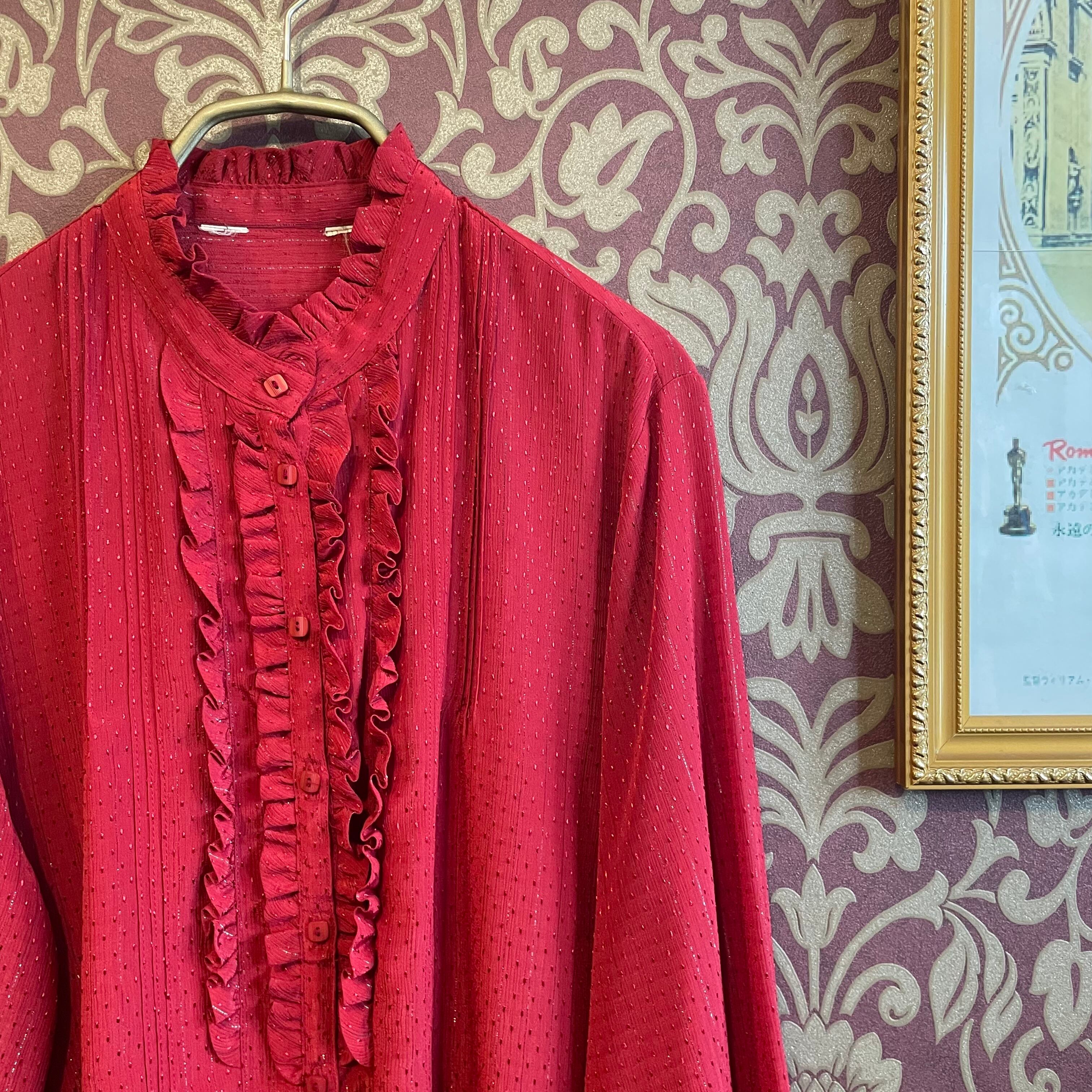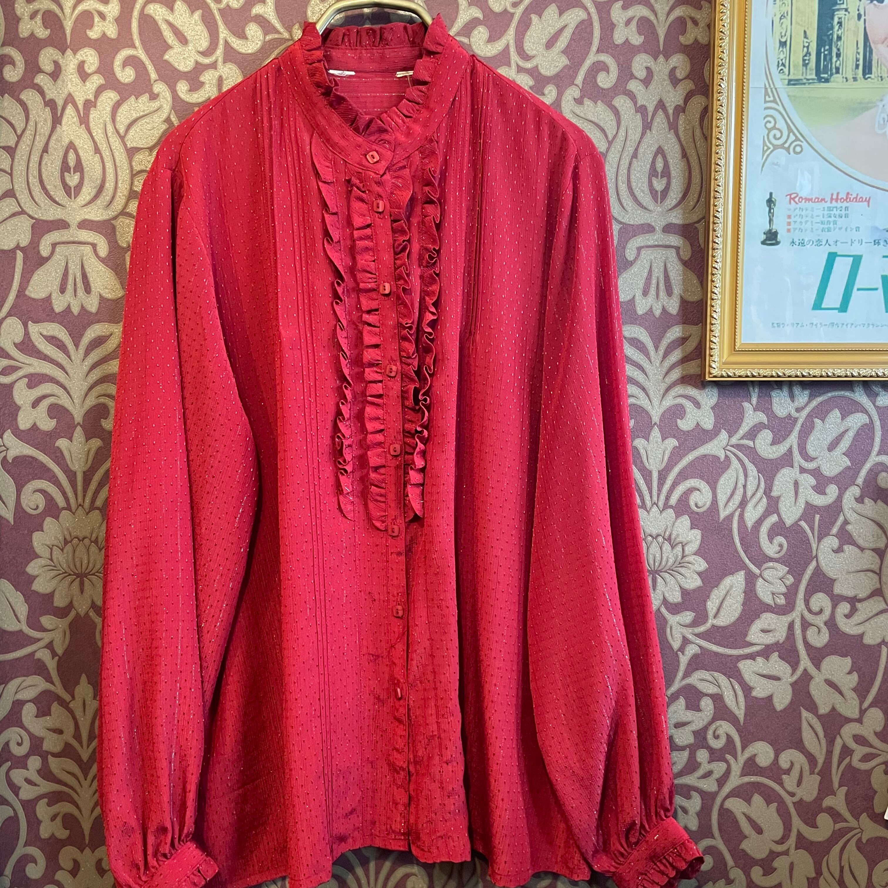 真っ赤に熟したトマトのようなカラーのブラウスです。