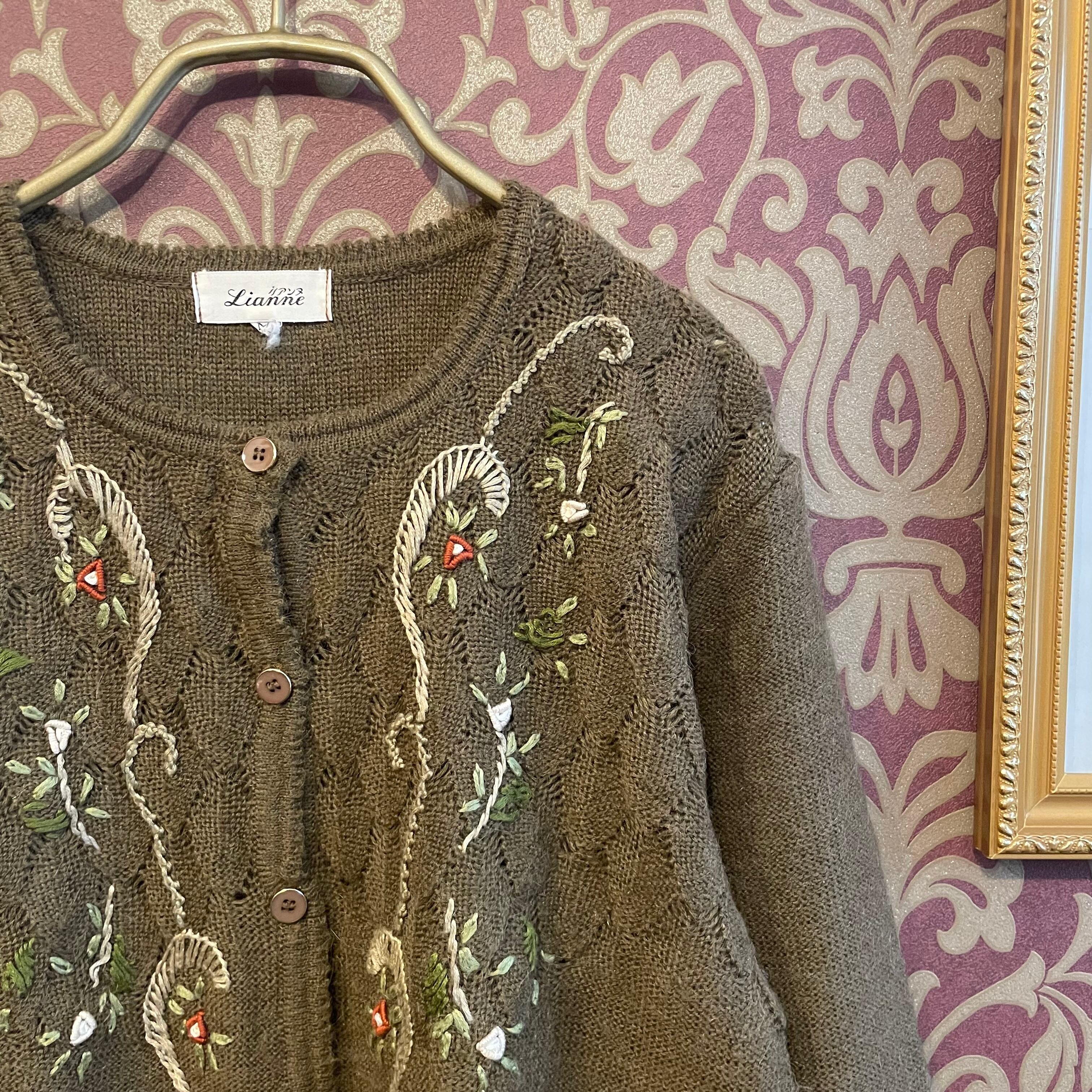 控えめな花の刺繍が可愛らしいニットカーディガンです。
