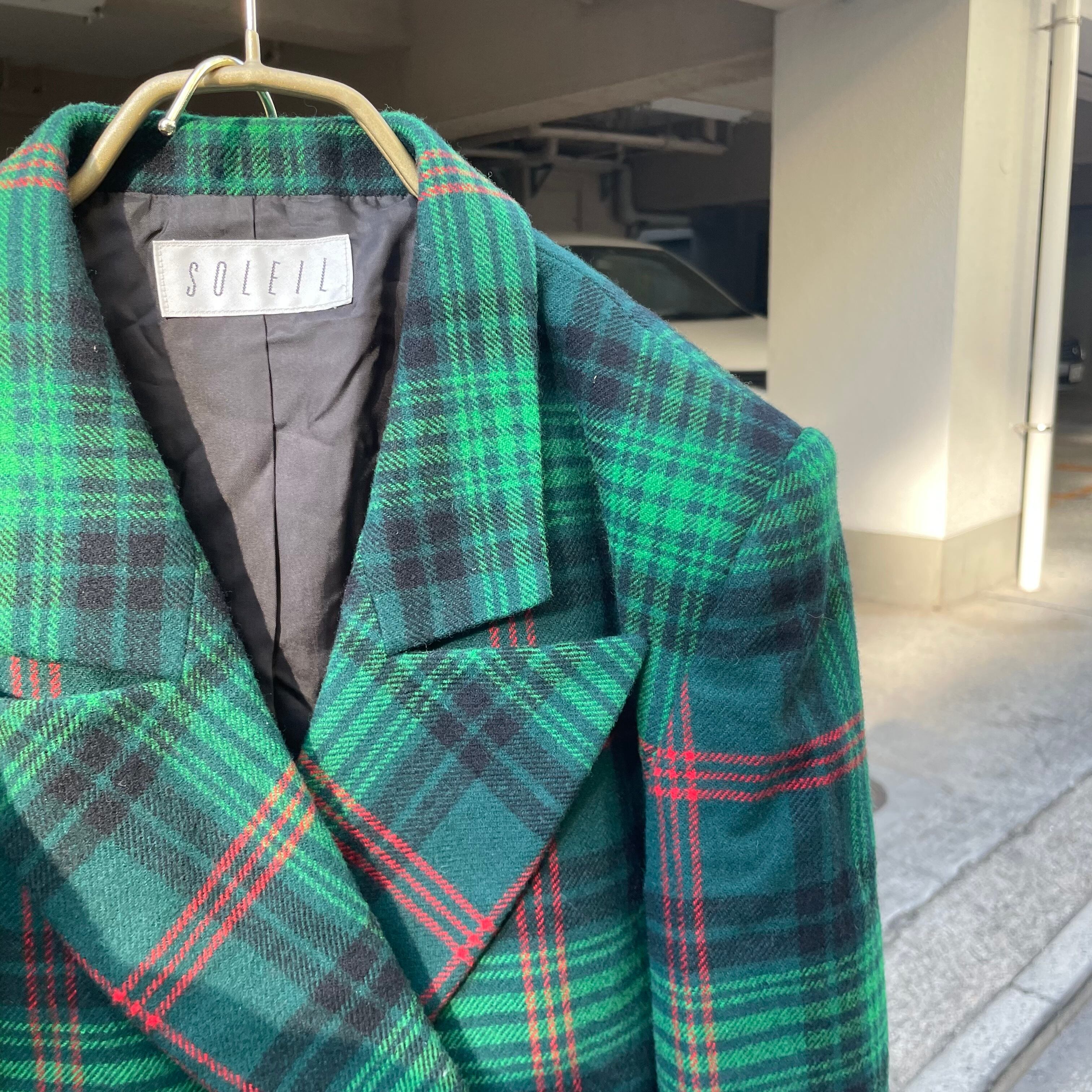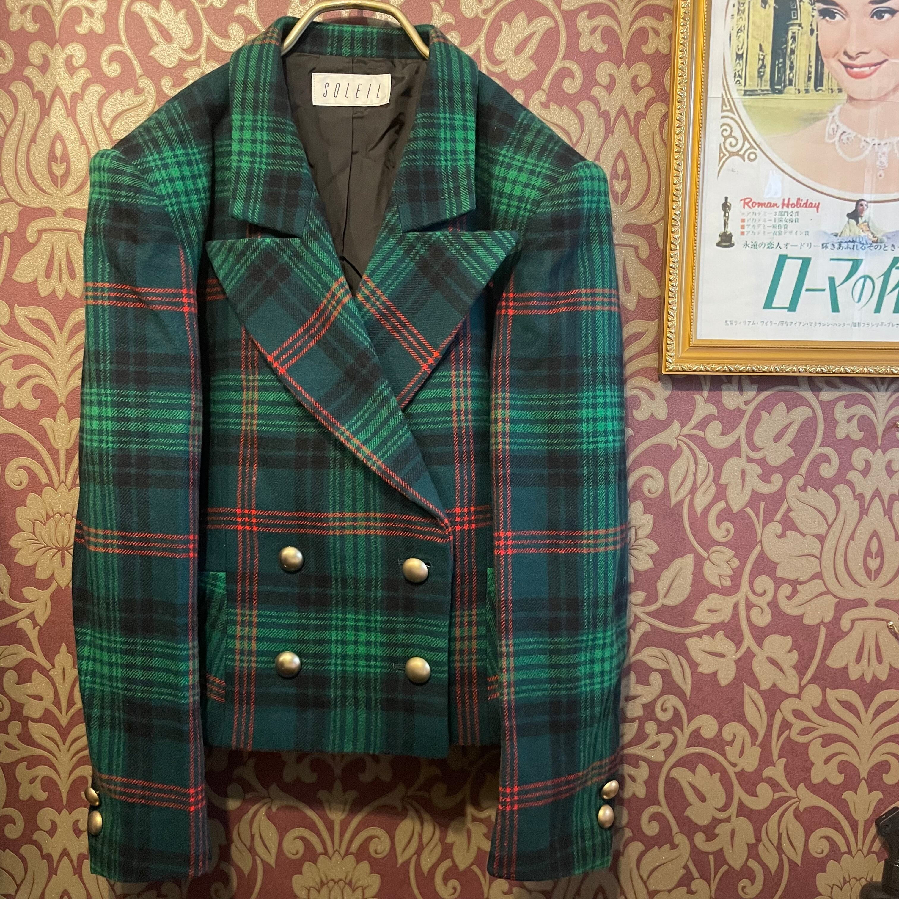 ジャケットはツンとした袖山と下襟が高貴なデザインで、マットゴールドのダブルボタンがクラシカルでクリスマスのような雰囲気に◎