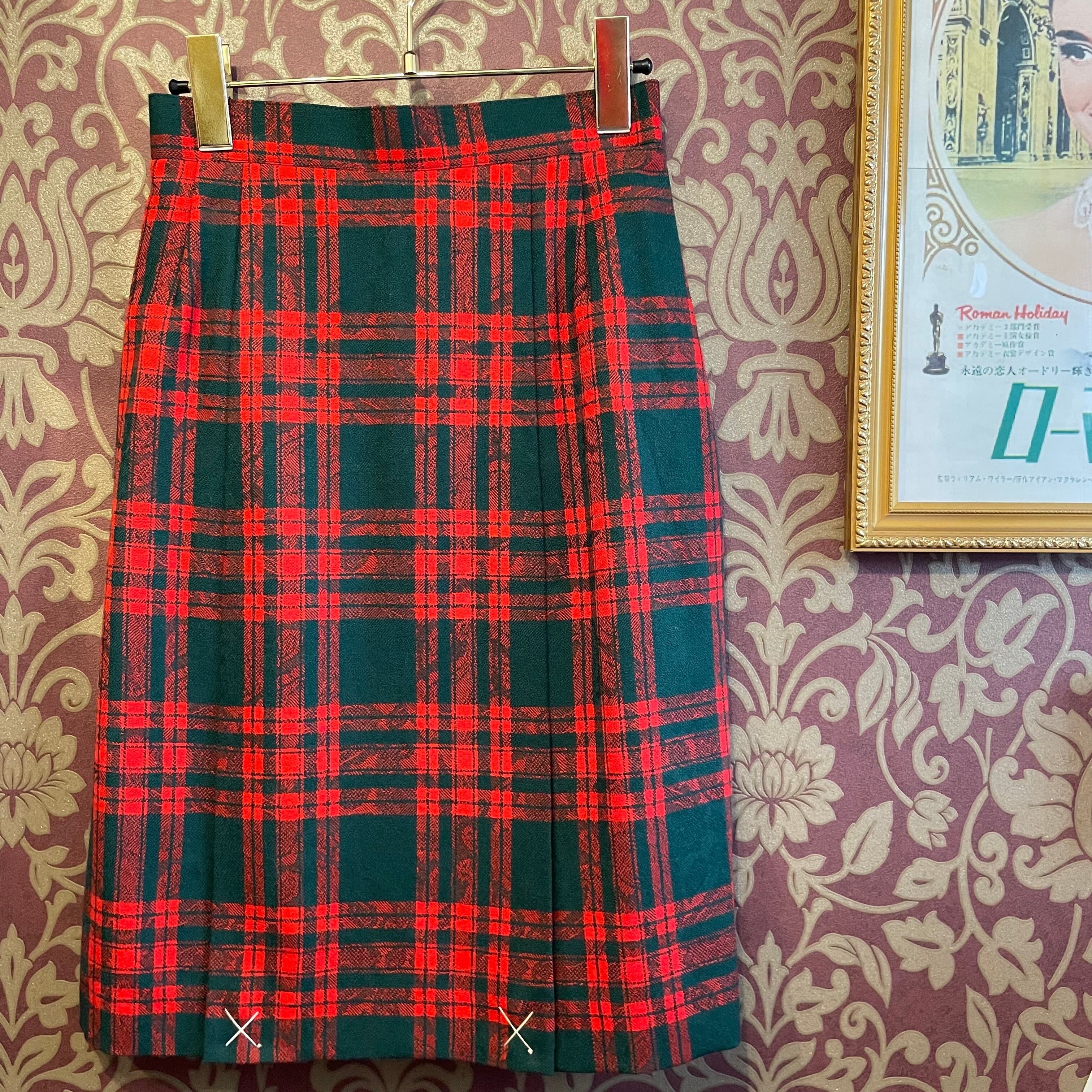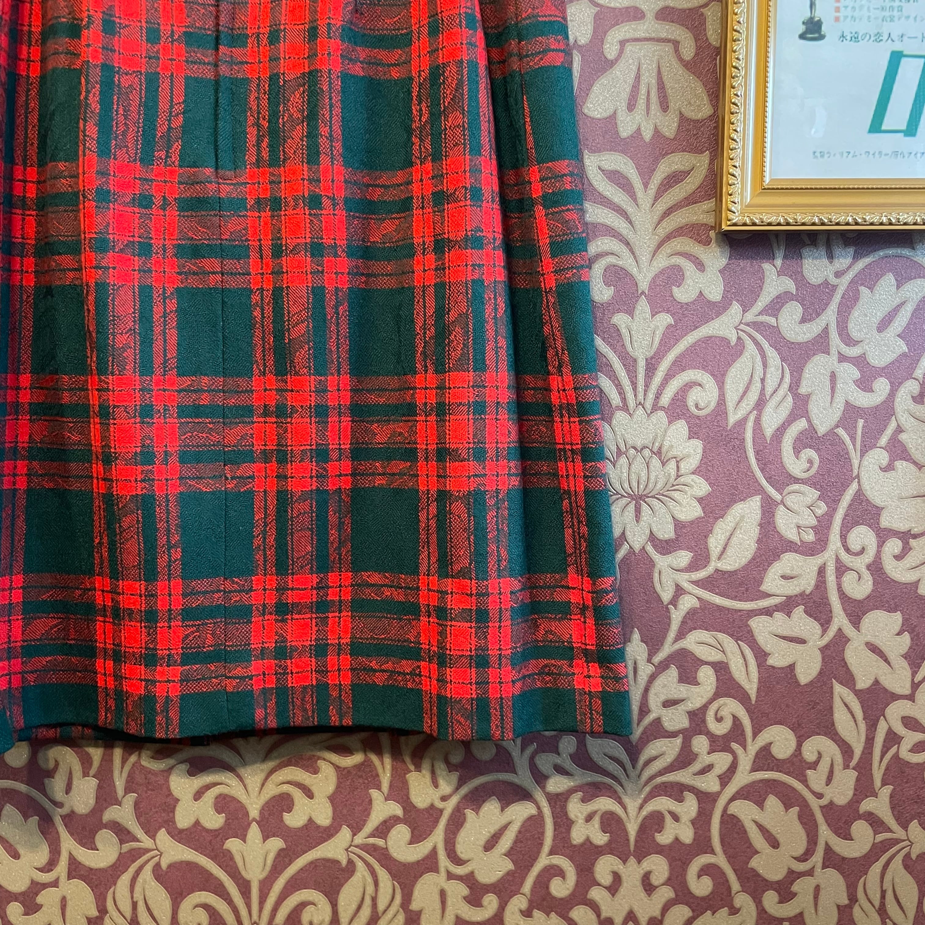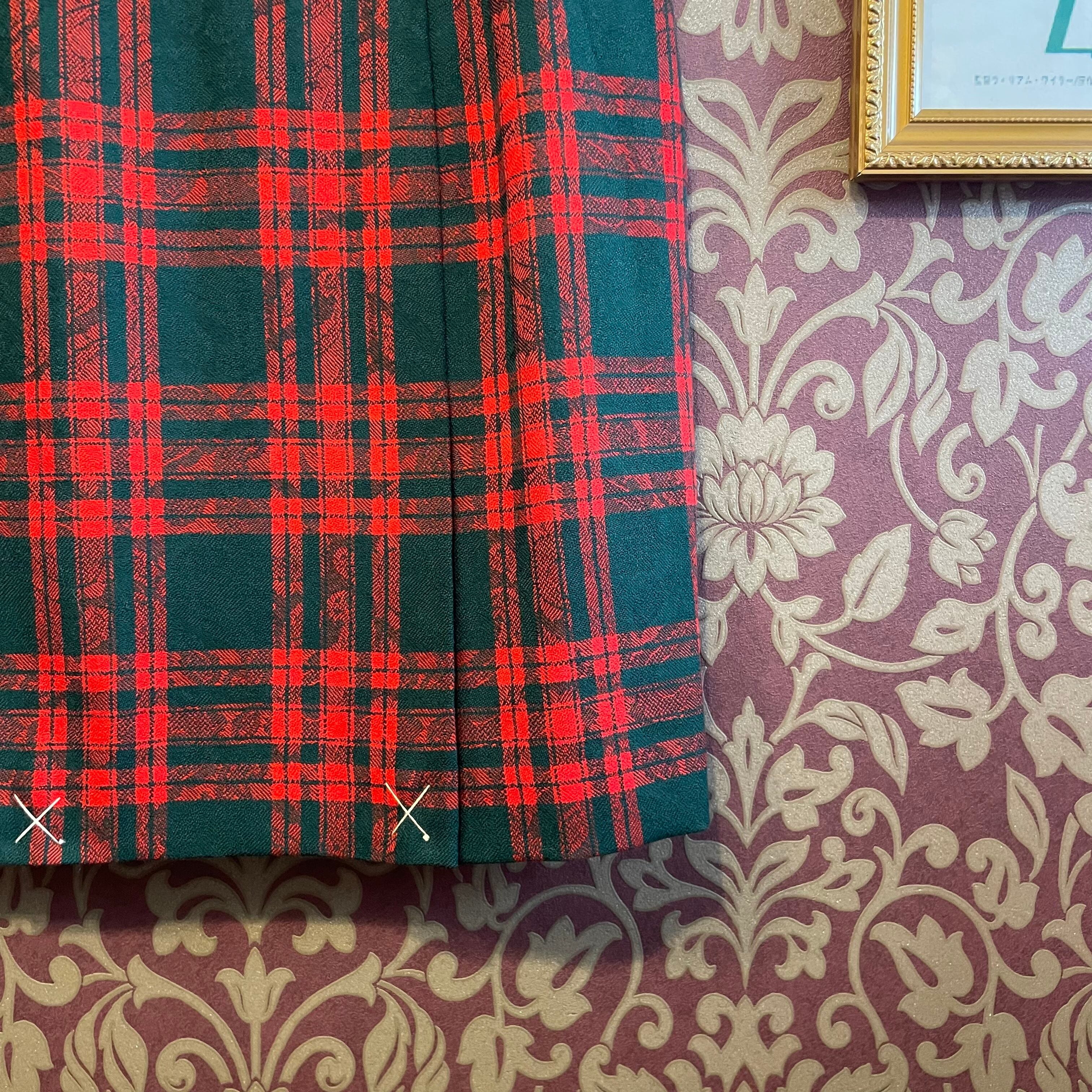 モスグリーン×赤の鮮やかなチェック柄のウールスカートです。