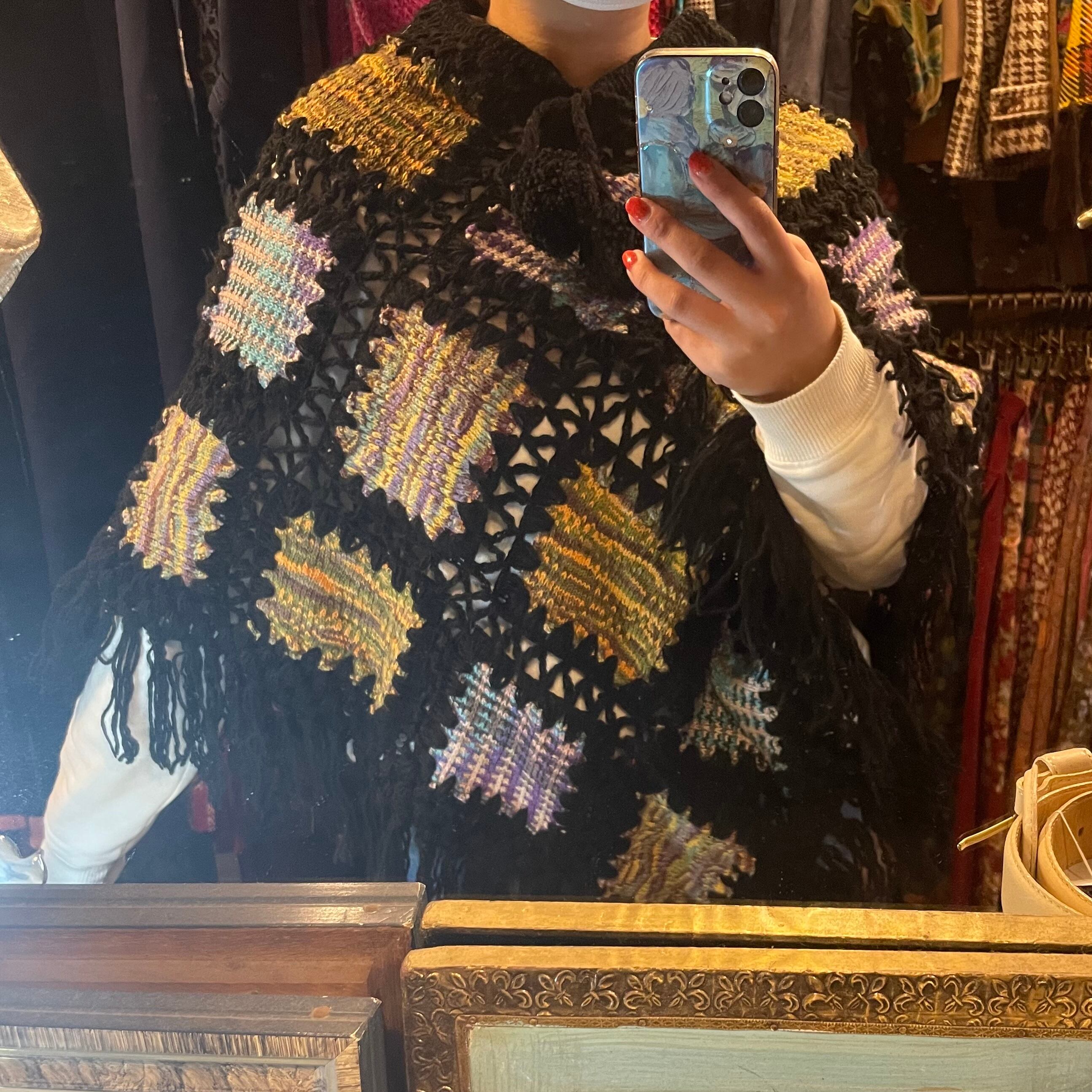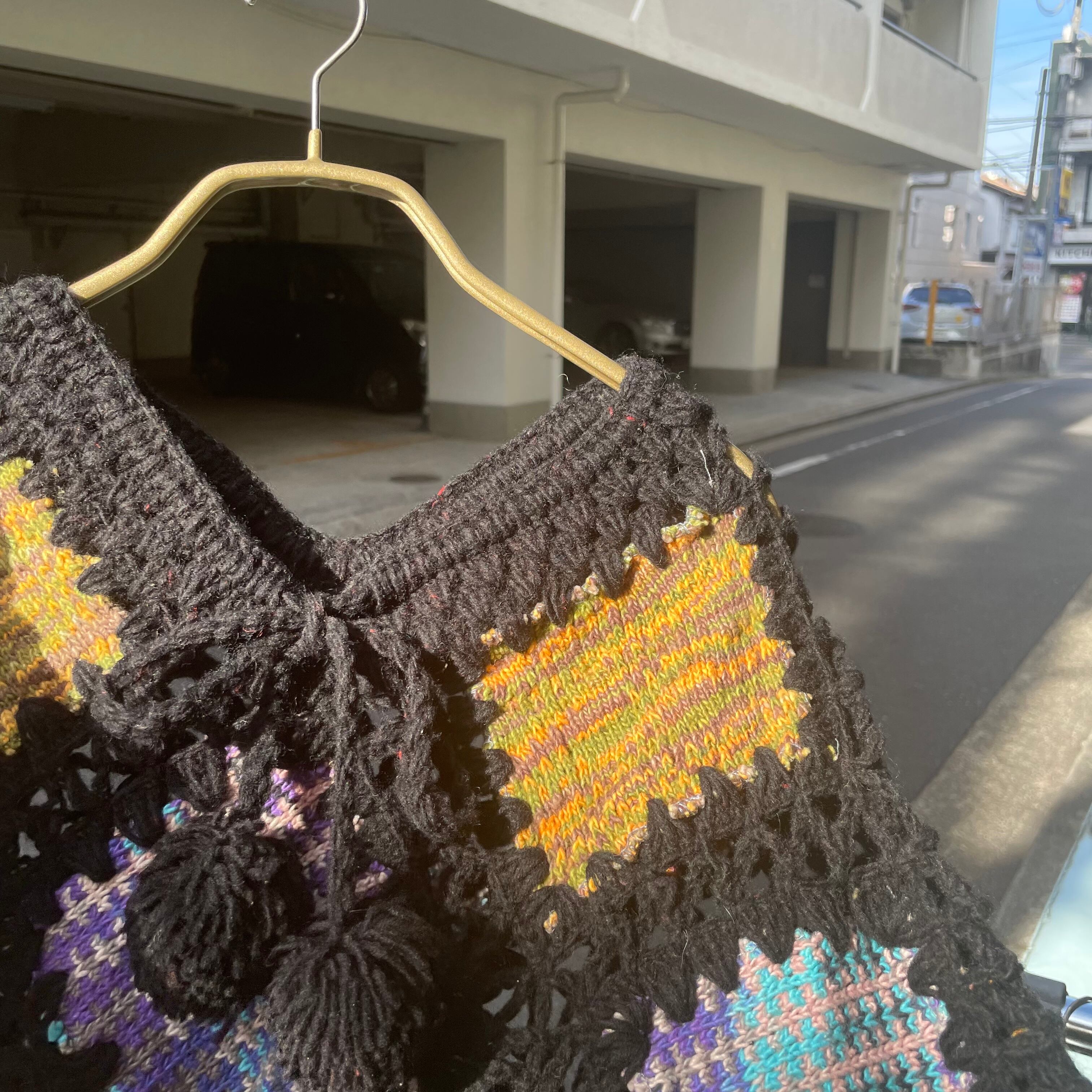 ニットの四角いモチーフをかぎ針で繋いだグラニースクエアのポンチョです。