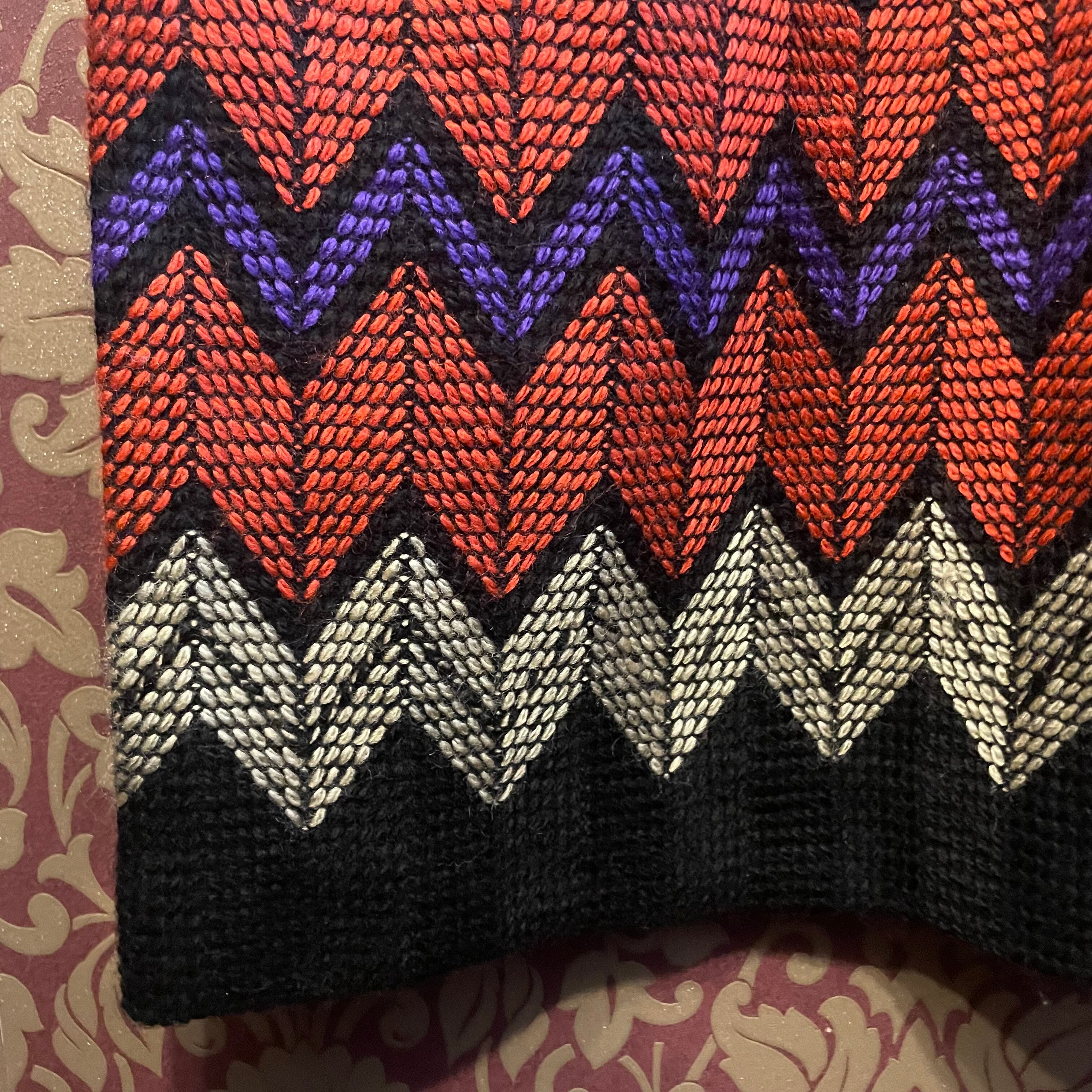 黒に紫や白、オレンジのジグザク模様のエキゾチックなニットスカートです。