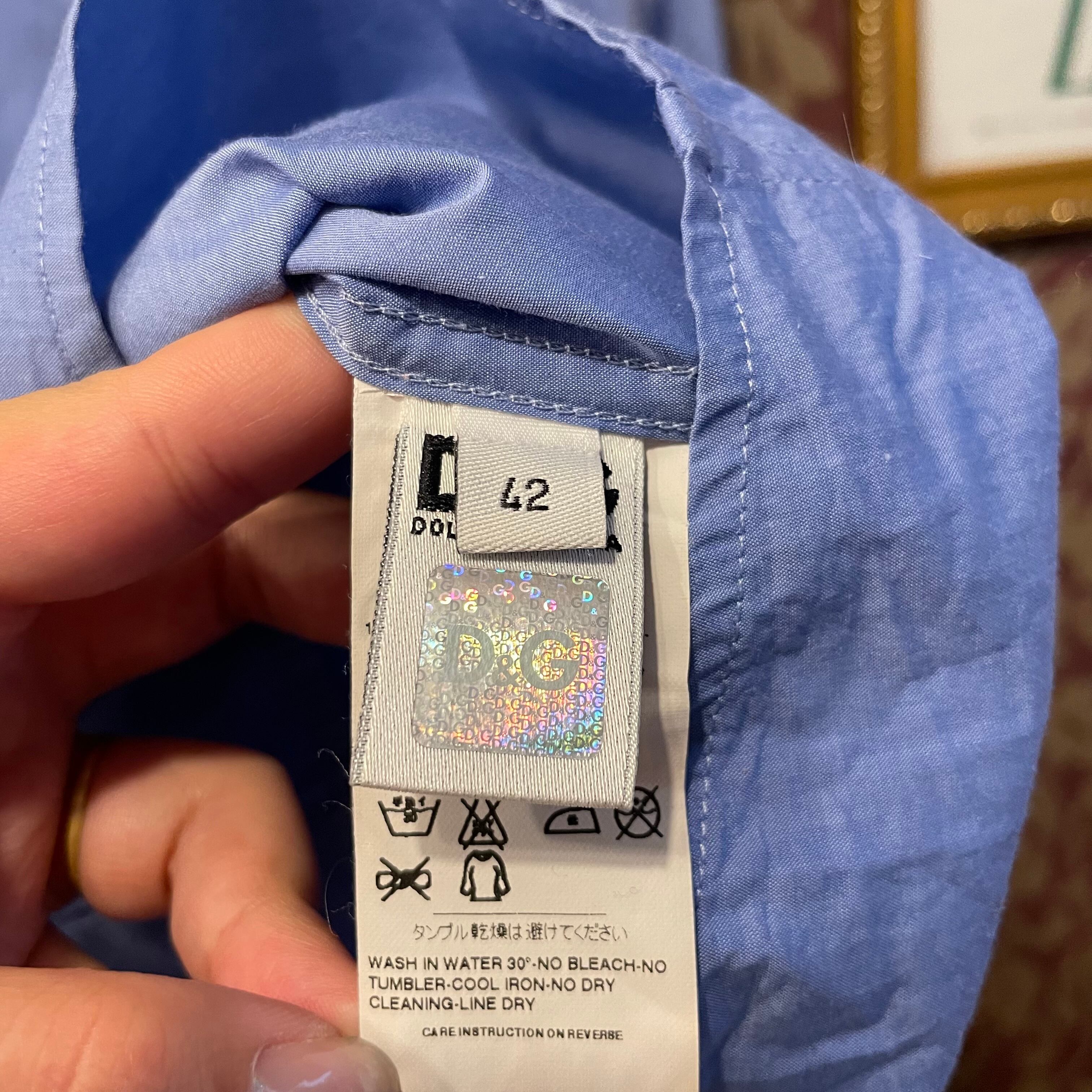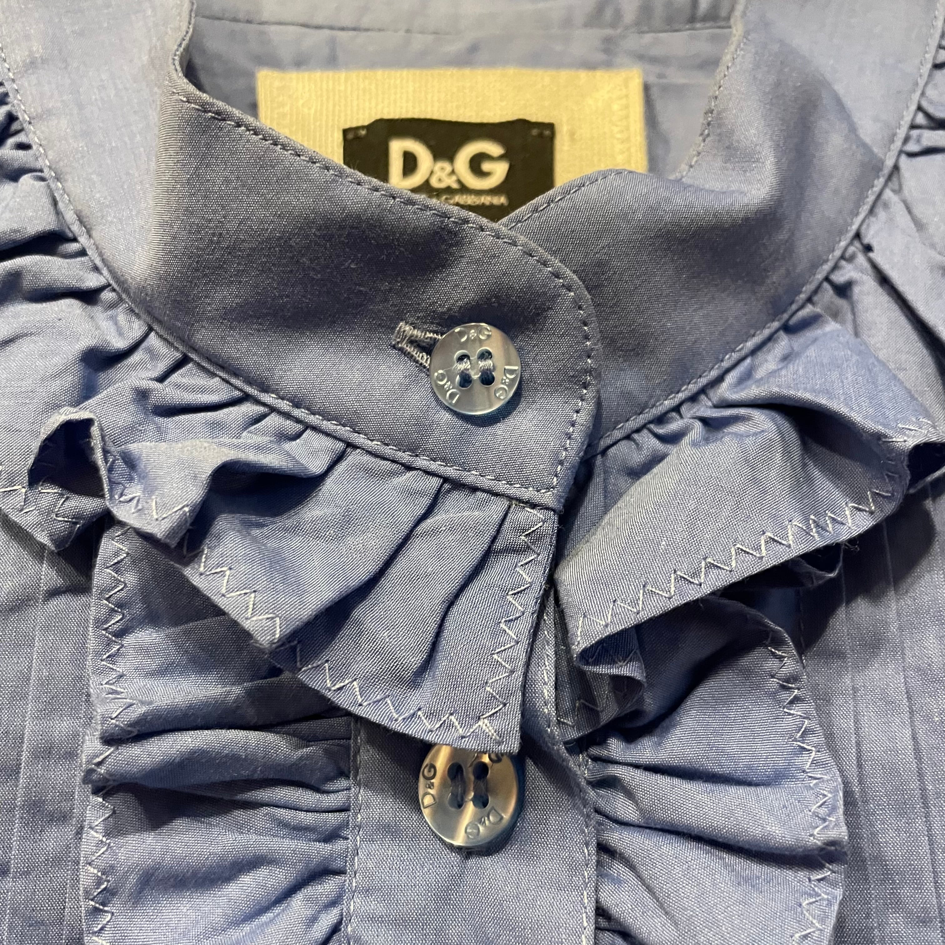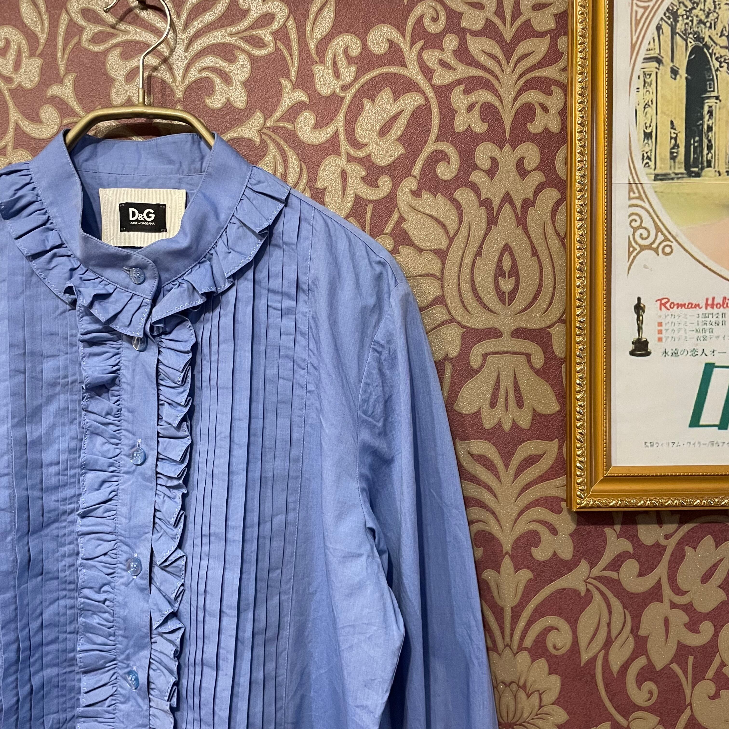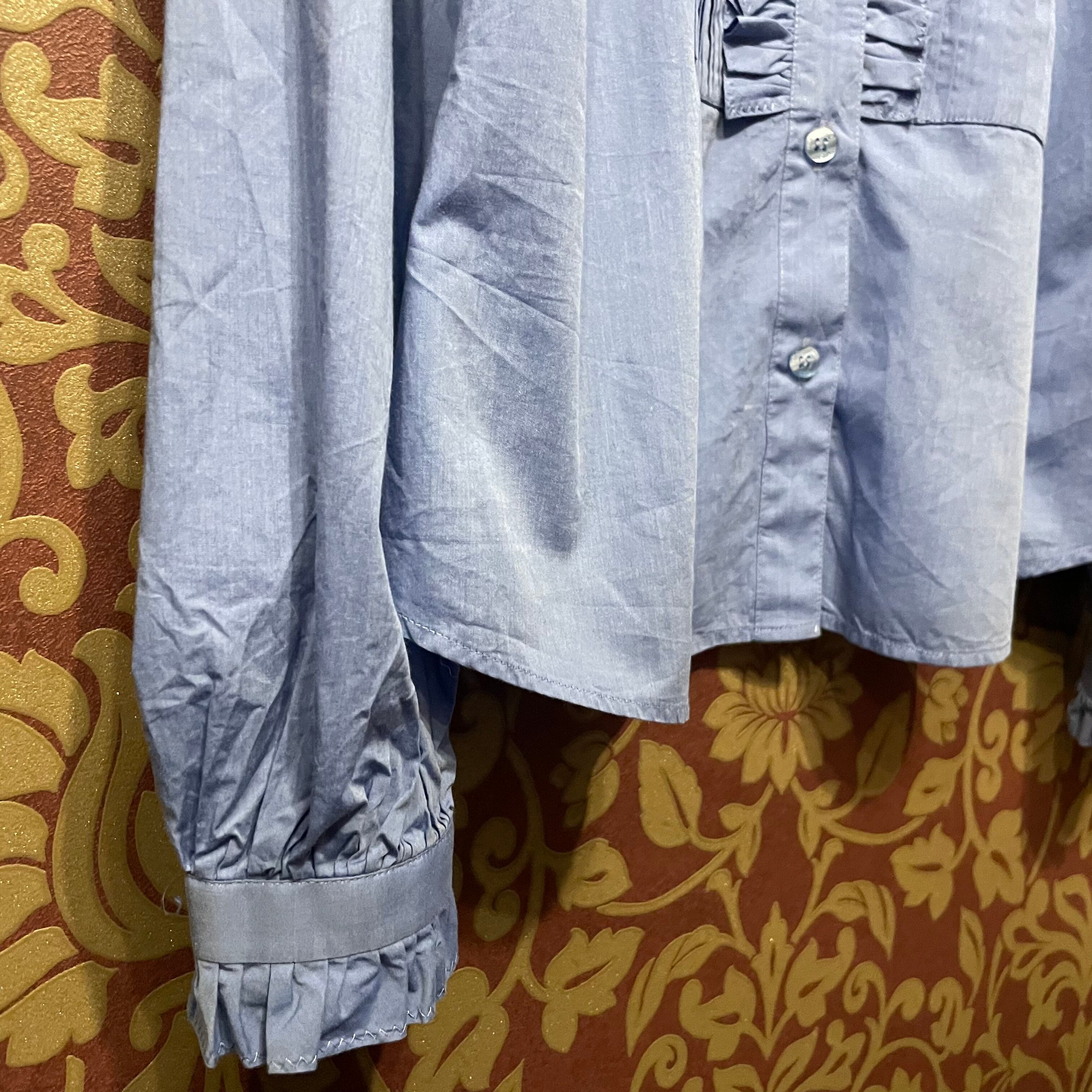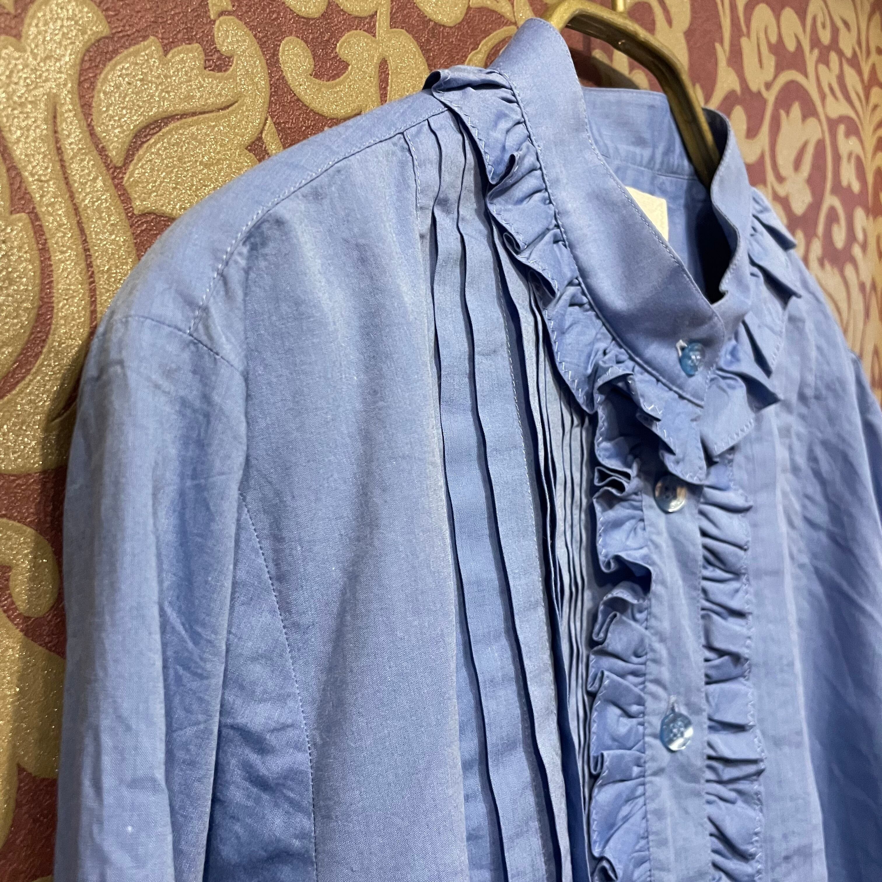 デニムのような青にピンタックとたくさんのフリルで装飾が施されています。